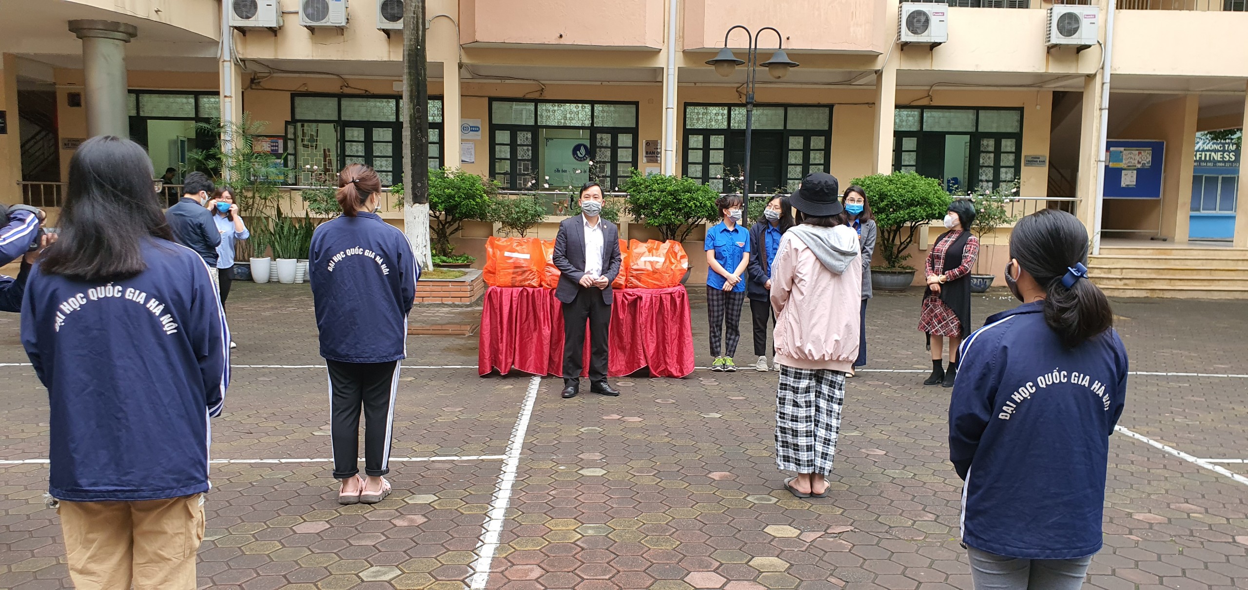Tiếp nối các hoạt động của Khoa trong công tác phòng, chống Virus Covid 19 và được sự ủng hộ, hỗ trợ của Đảng ủy, Ban Chủ nhiệm Khoa Luật, Đại học Quốc gia Hà Nội (ĐHQGHN), ngày 23/04/2020, BCH Đoàn thanh niên – Hội sinh viên Khoa Luật đã tổ chức buổi thăm và tặng quà cho các bạn đoàn viên, sinh viên của Khoa hiện đang lưu trú tại Ký túc xã ĐHQGHN. Đây là những bạn đoàn viên, sinh viên đã lựa chọn ở lại Ký túc xá để thực hiện đúng chỉ thị, quyết định của Đảng, Nhà nước, của ĐHQGHN và của Khoa nhằm phòng, tránh lây lan dịch bệnh.