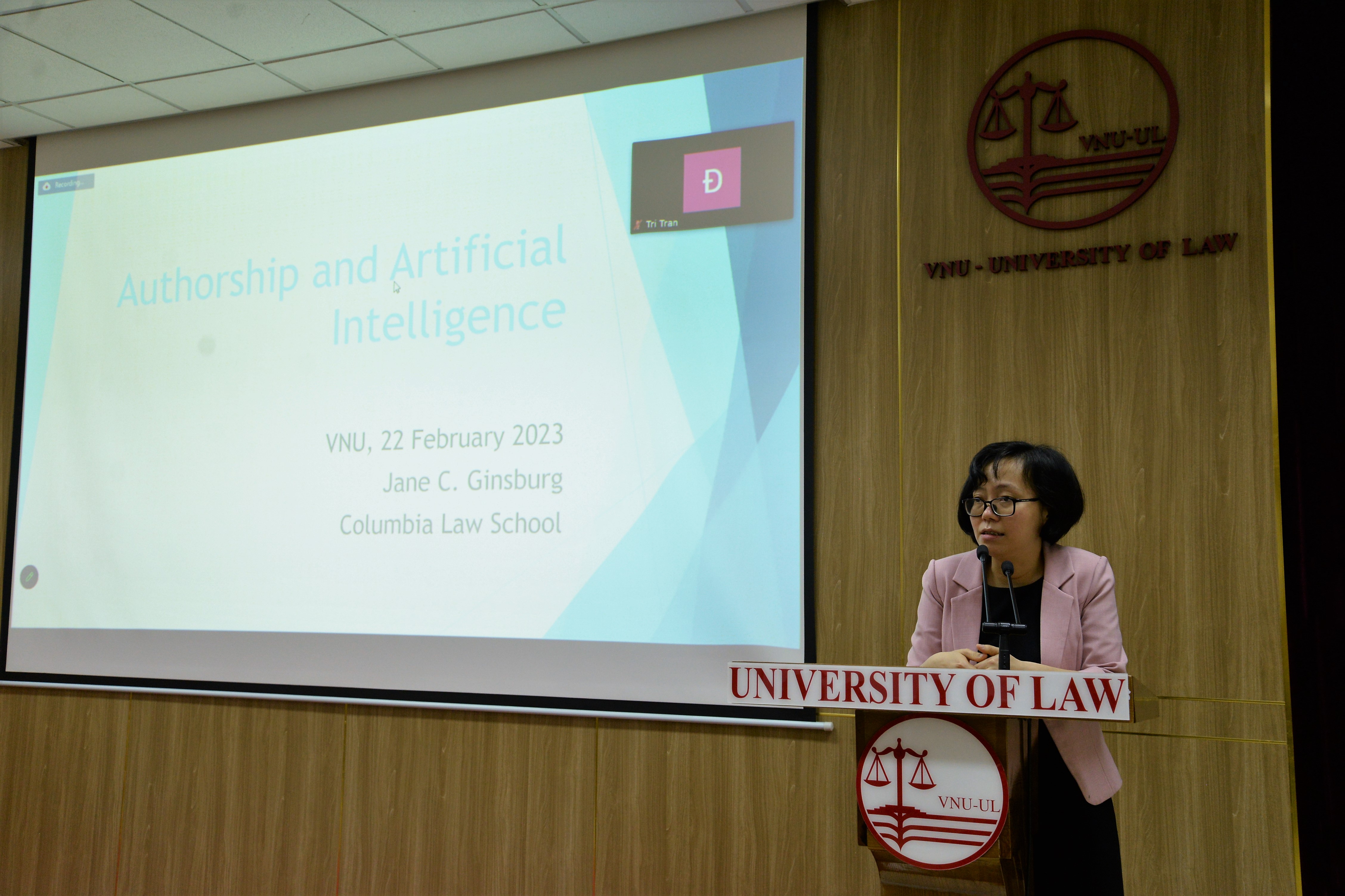 Sáng ngày 22/02/2023, Trường Đại học Luật, Đại học Quốc gia Hà Nội (ĐHQGHN) đã tổ chức buổi giảng về “Quyền tác giả và trí tuệ nhân tạo” do GS Jane C. Ginsburg, Trường Luật, Đại học Columbia chia sẻ.