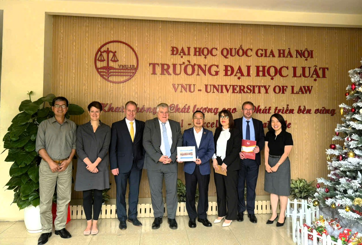 Ngày 5/12/2024, PGS, TS. Trịnh Tiến Việt, Phó Hiệu trưởng phụ trách Trường Đại học Luật, ĐHQGHN đã có buổi tiếp và làm việc với đoàn cán bộ Trường Đại học Galway, Ailen, dẫn đầu là Giáo sư Geraint Howells, Trưởng Khoa Kinh tế, Chính sách công và Luật.