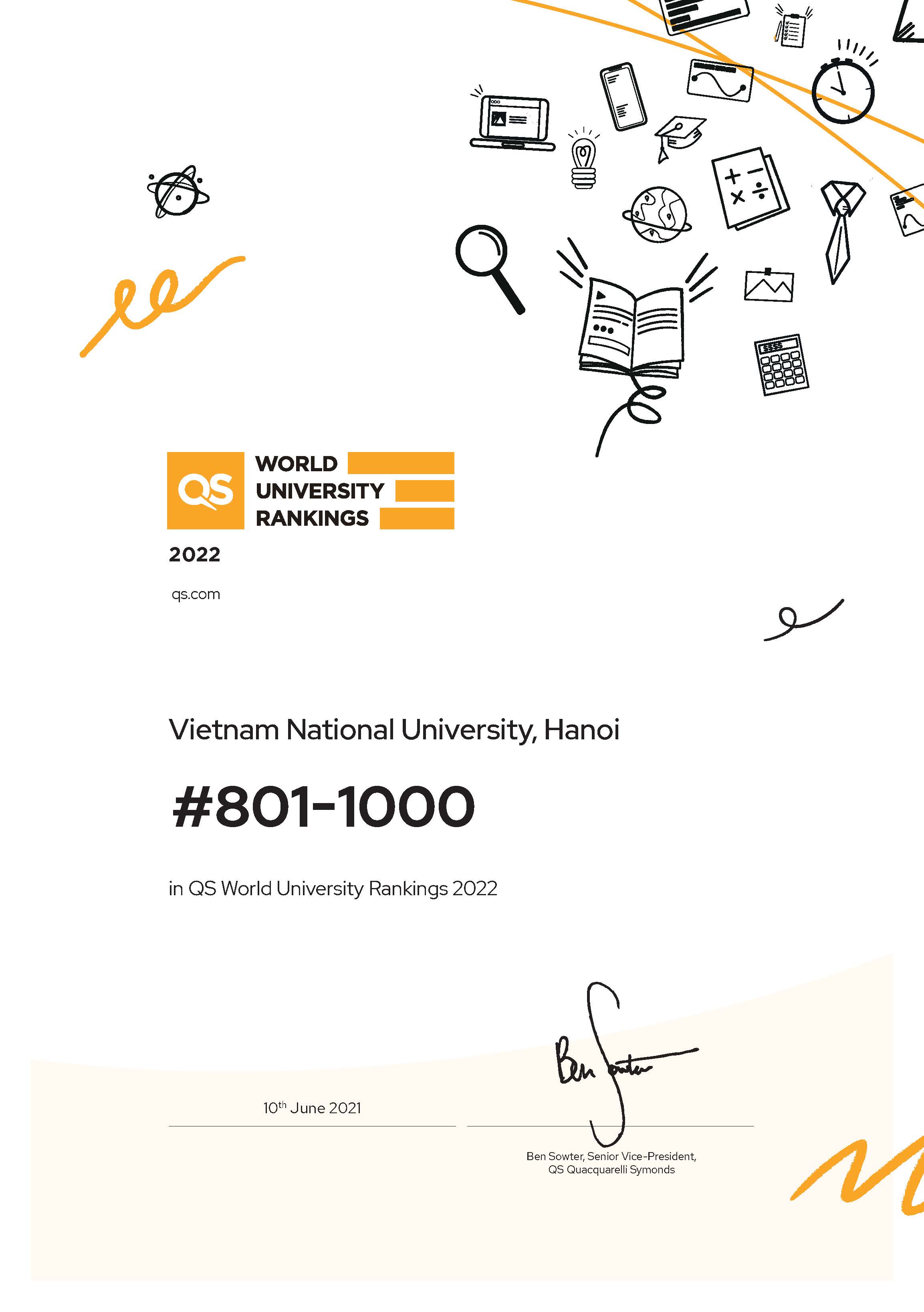 Hoạt động khảo thí 09/06/2021 QS World University Rankings 2022: ĐHQGHN lần thứ 4 liên tiếp đứng trong nhóm 1000 thế giới Xem chi tiết