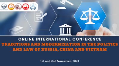 Thông báo về Hội thảo/Hội nghị 03/11/2021 Hội thảo quốc tế “Truyền thống và hiện đại hóa pháp luật và chính trị ở Nga, Trung Quốc và Việt Nam” Xem chi tiết Đăng ký tham gia