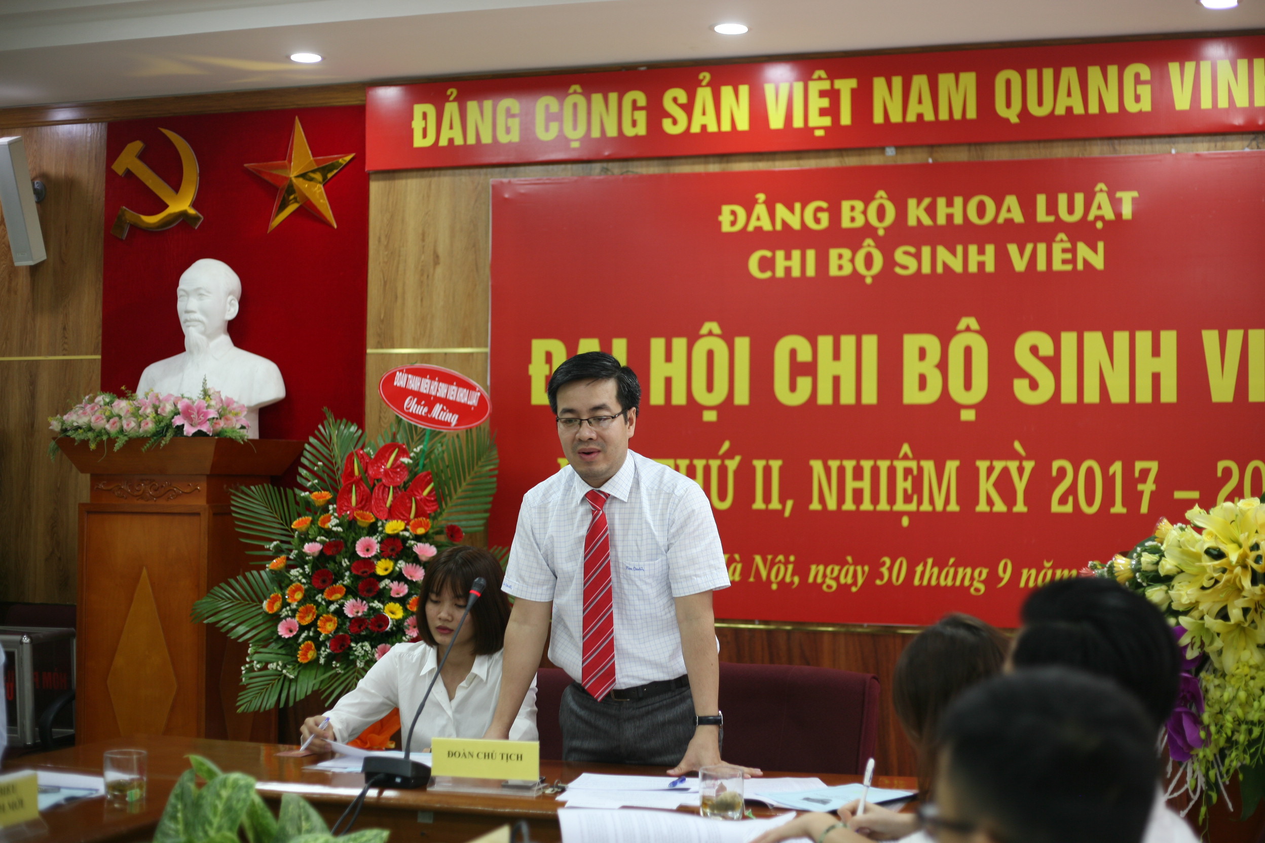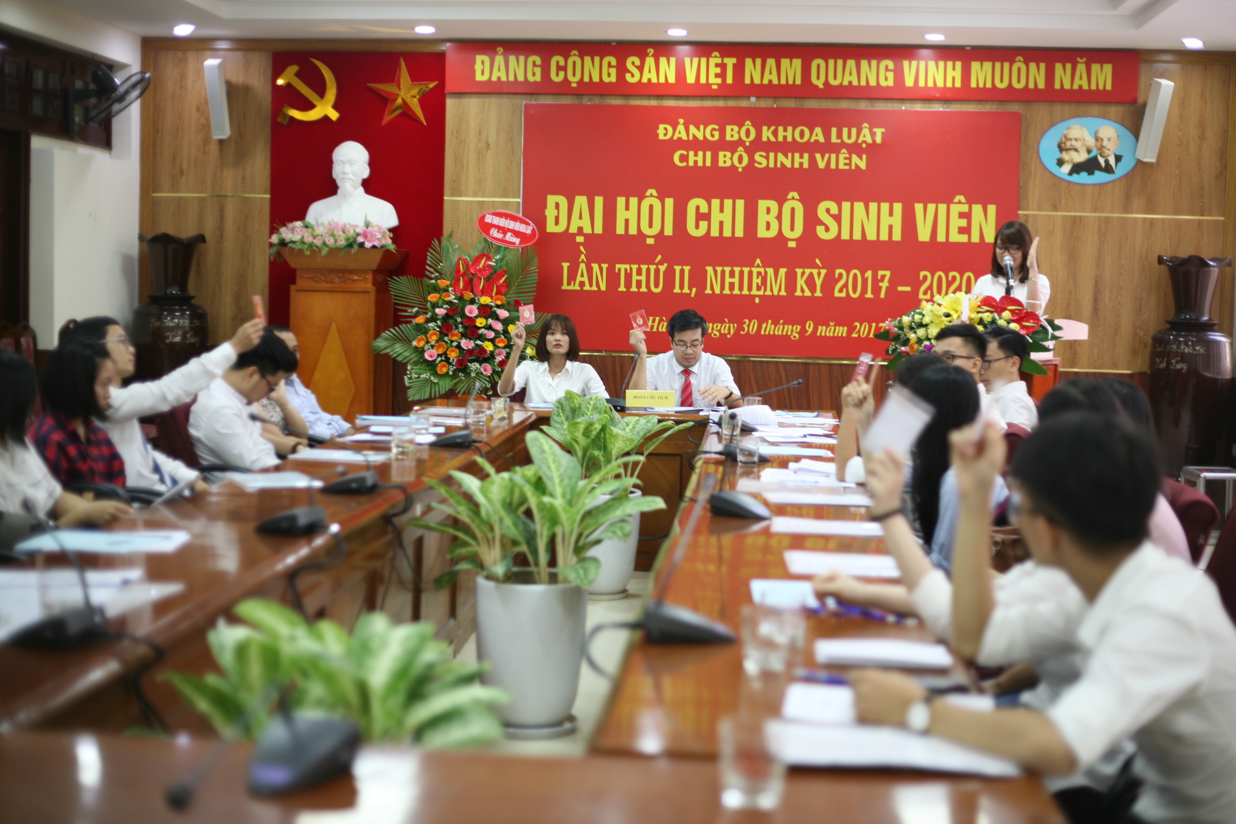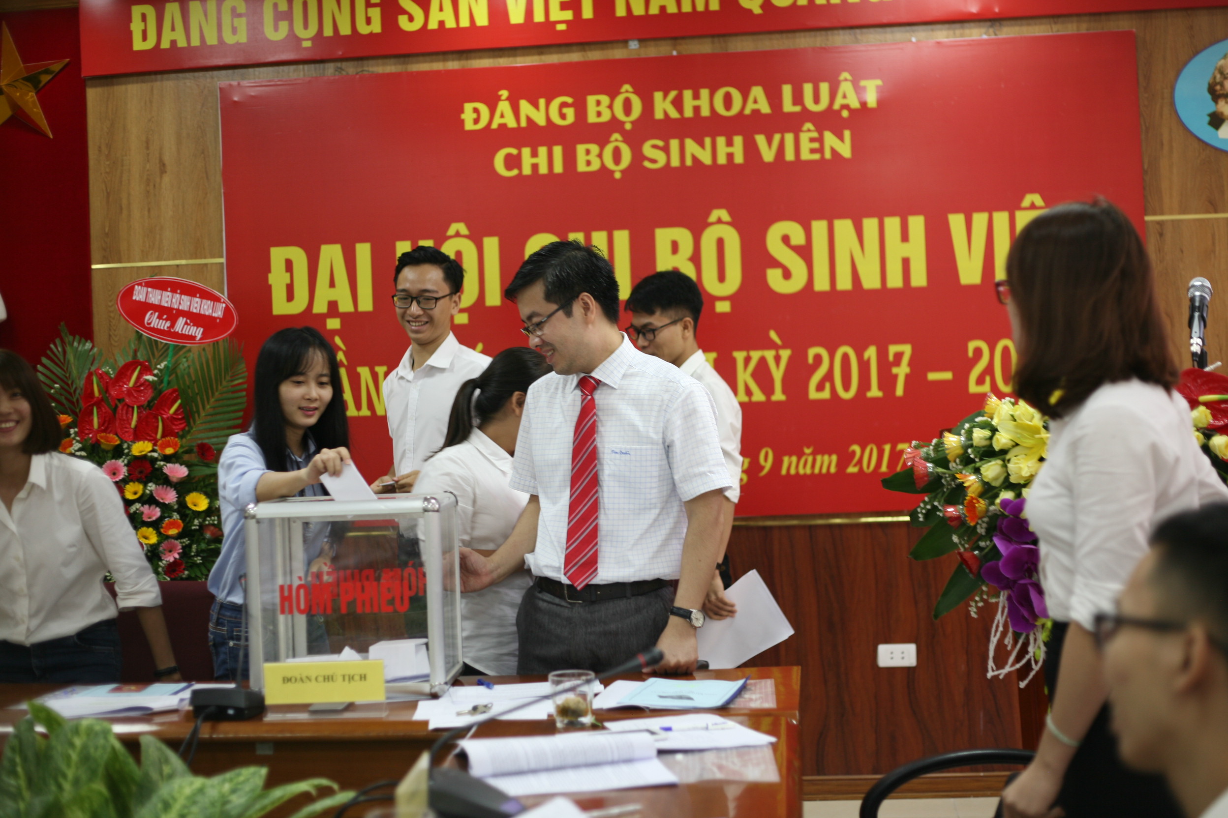 Đại hội cũng đã bầu Bí thư, Phó Bí thư Chi bộ nhiệm kỳ 2017-2020 gồm hai đồng chí. Trong đó, đồng chí Bùi Tiến Đạt – giảng viên Bộ môn Luật Hiến pháp – Luật Hành chính được bầu là Bí thư; đồng chí Nguyễn Thị Hồng Hạnh –  sinh viên K59CLC – được bầu là Phó Bí thư.