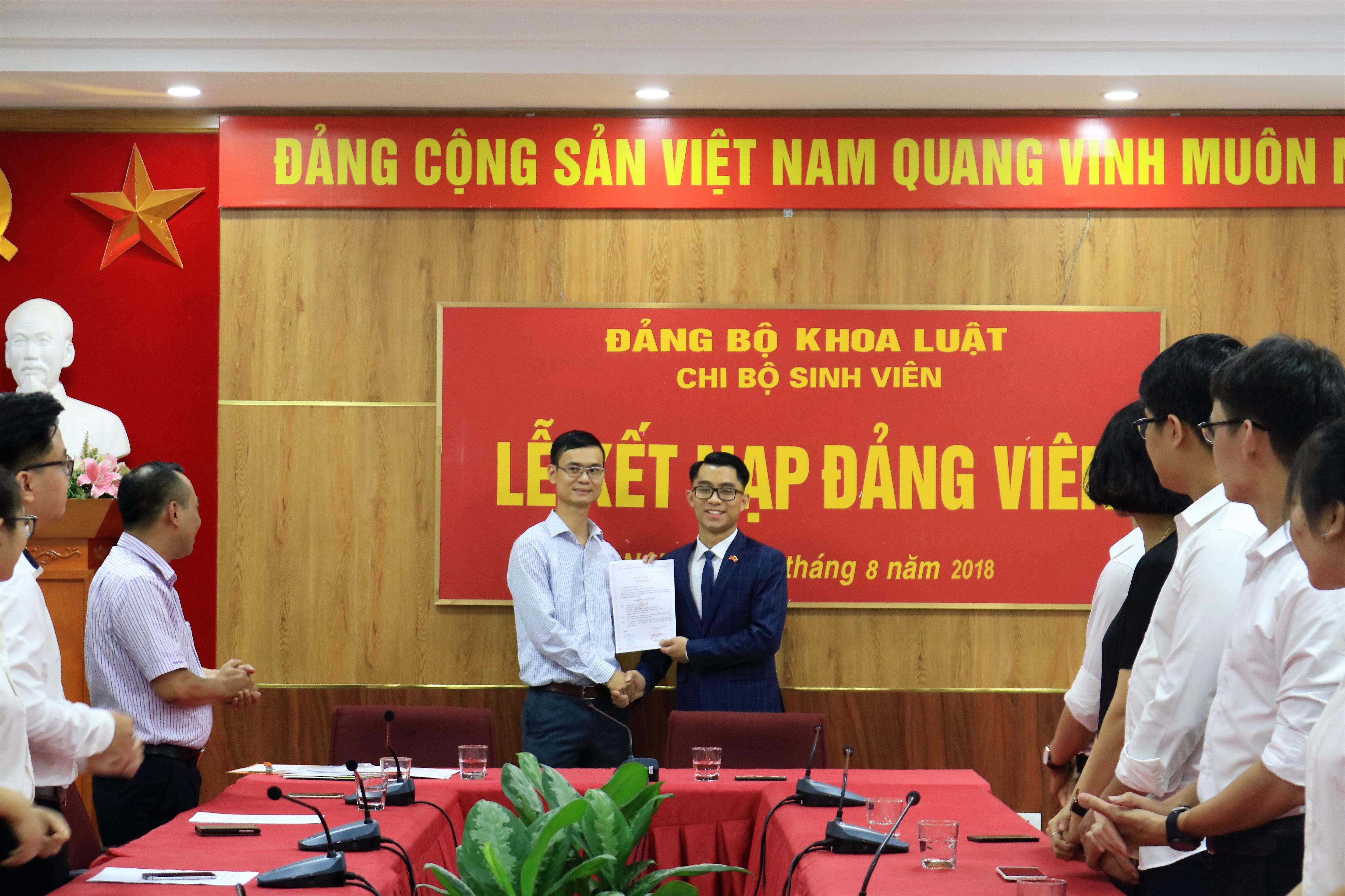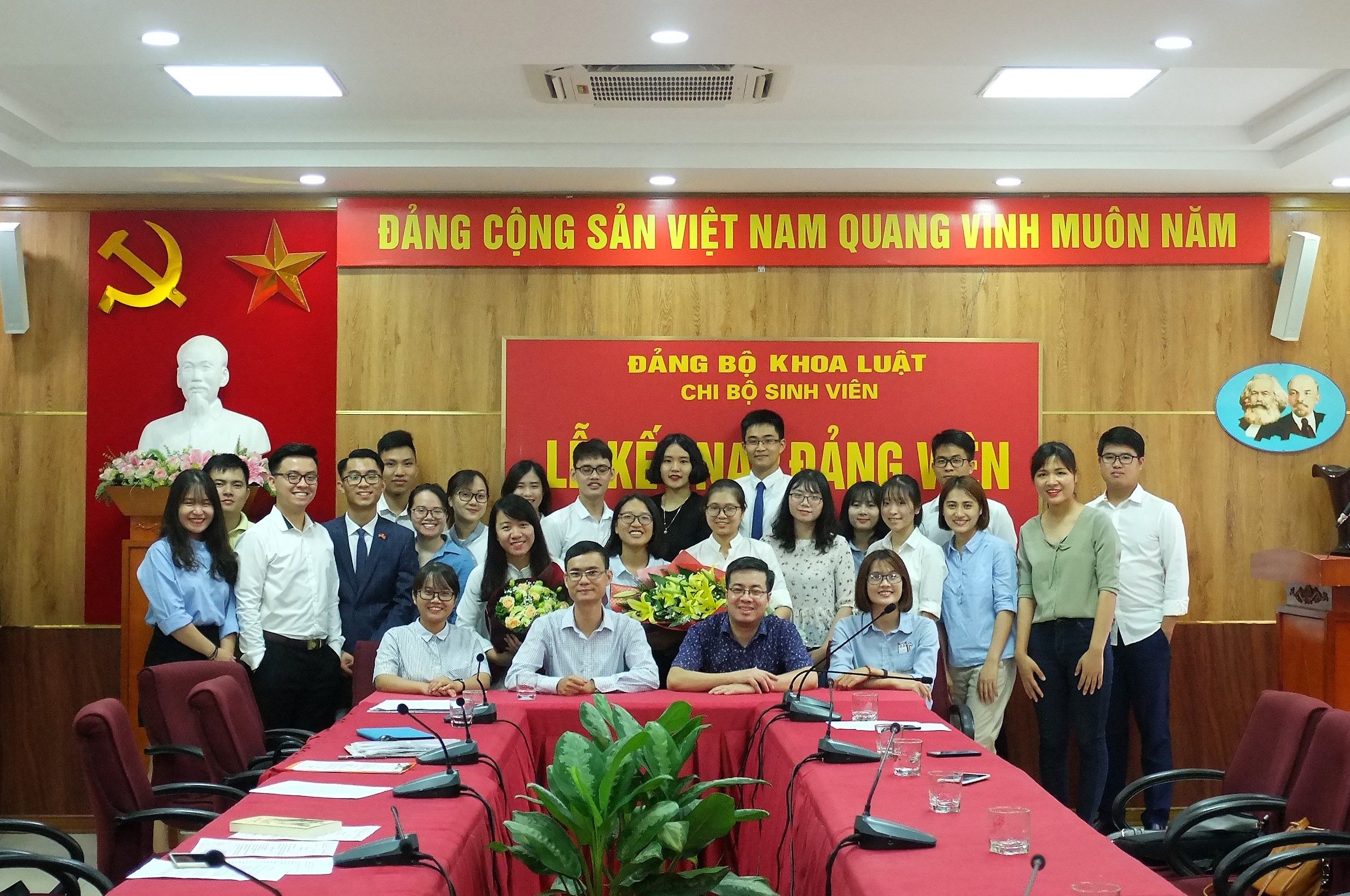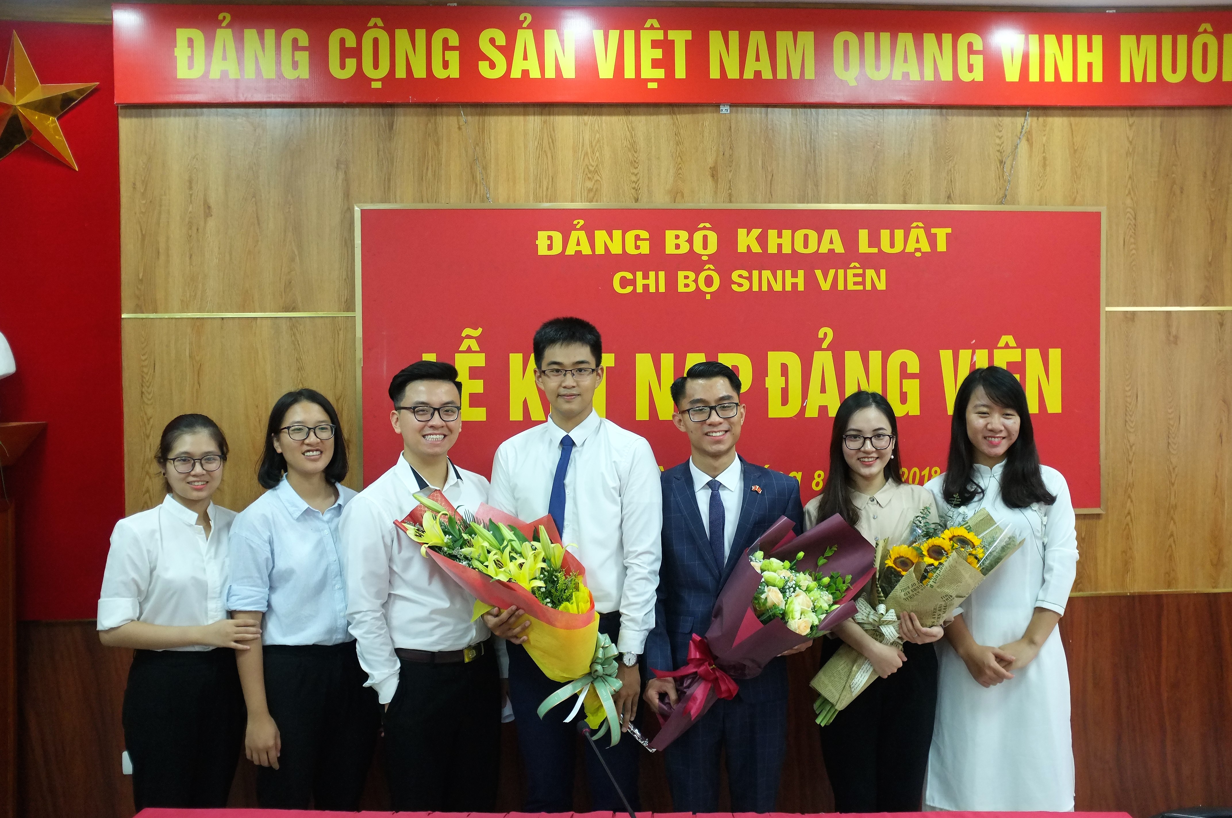 Là nhiệm vụ thường xuyên và có ý nghĩa quan trọng trong công tác xây dựng Đảng, ngày 11/8/2018, được sự đồng ý của Đảng ủy Khoa Luật, Chi bộ Sinh viên đã tổ chức Lễ kết nạp đảng viên cho các đồng chí: Nguyễn Minh Hải, Trần Đăng Ngọc Sơn, Nguyễn Thị Thanh Tú, Nguyễn Thị Phương, Nguyễn Thu Hà, Nguyễn Lan Chi, Vũ Đình Hoàng.