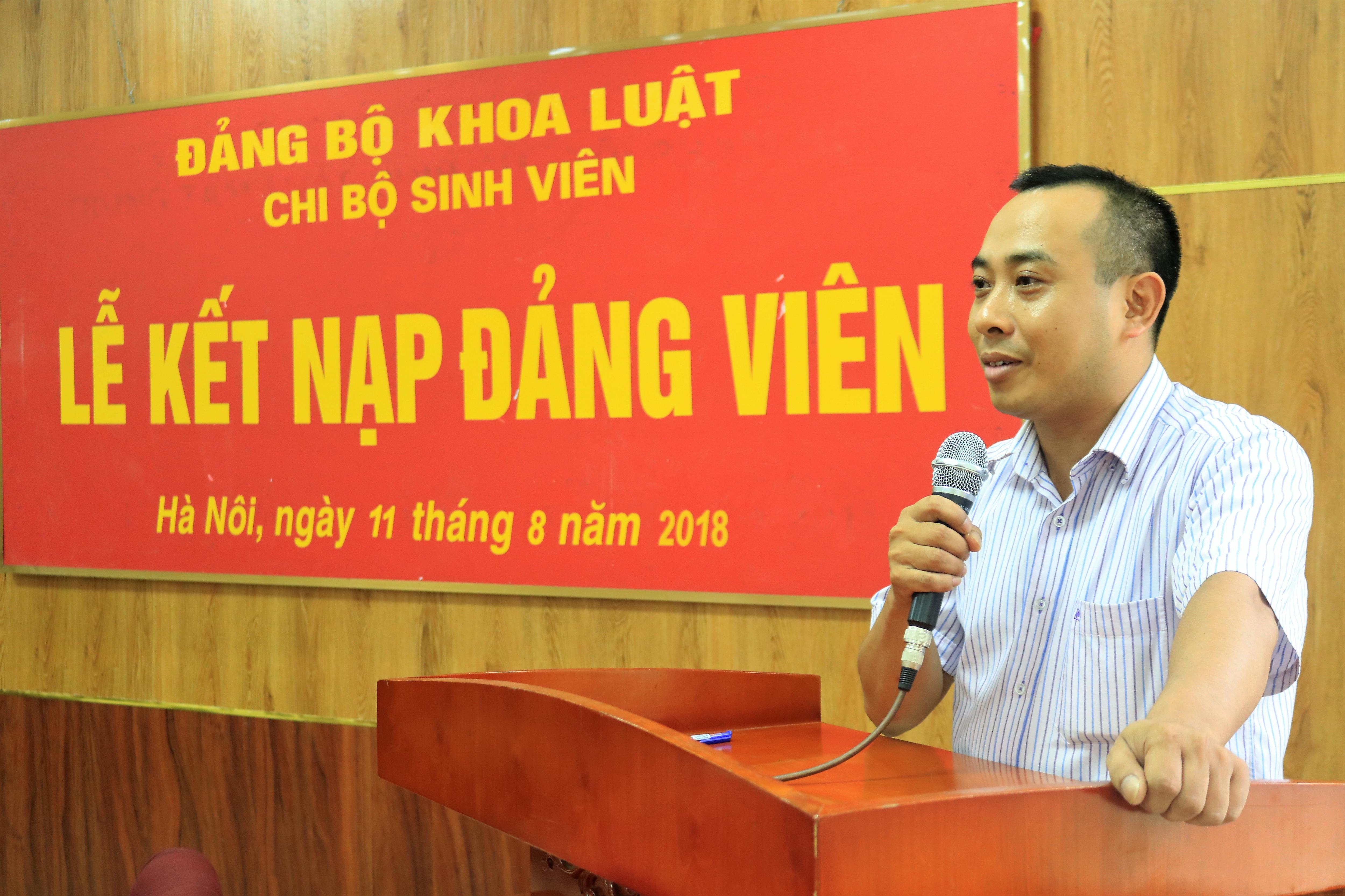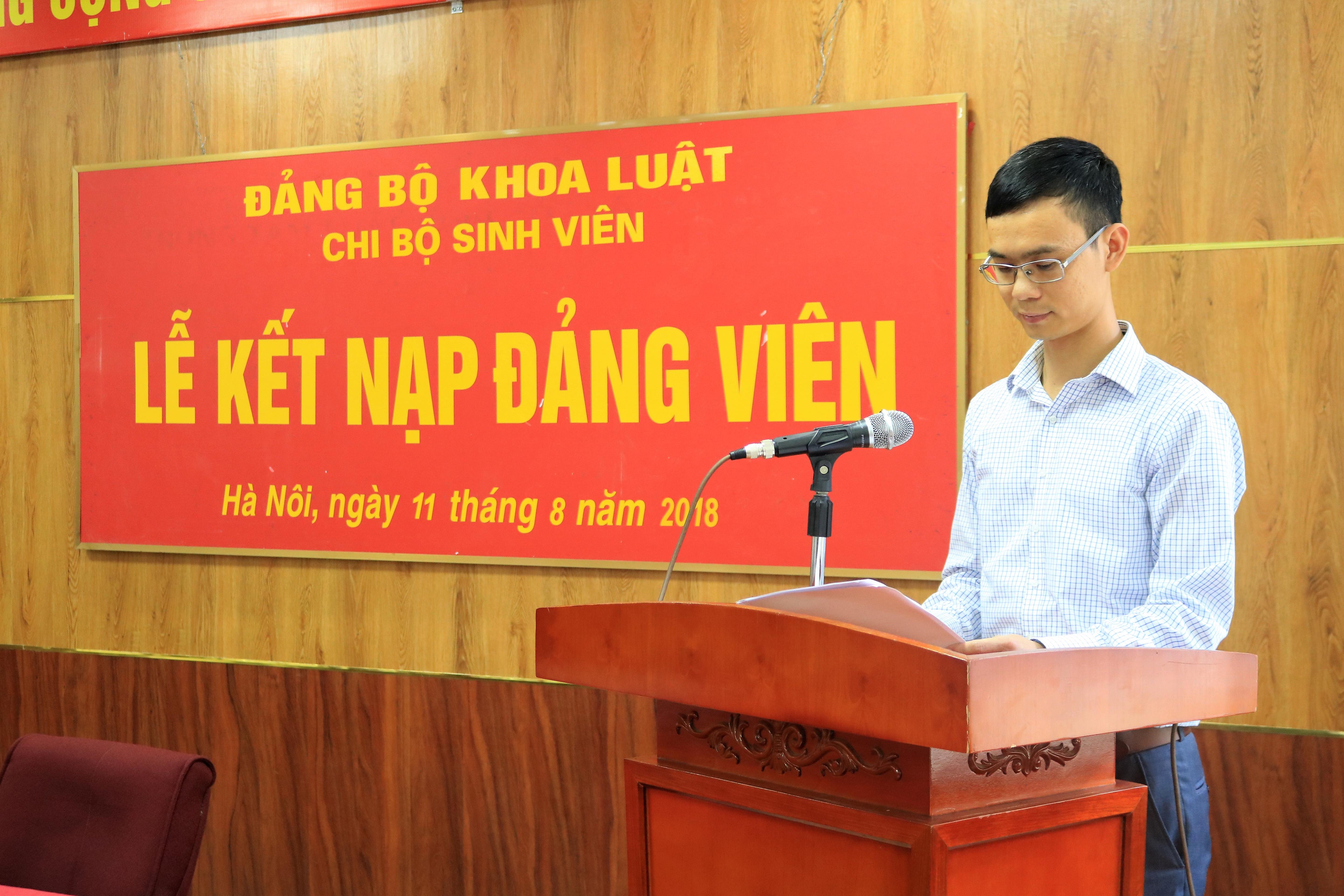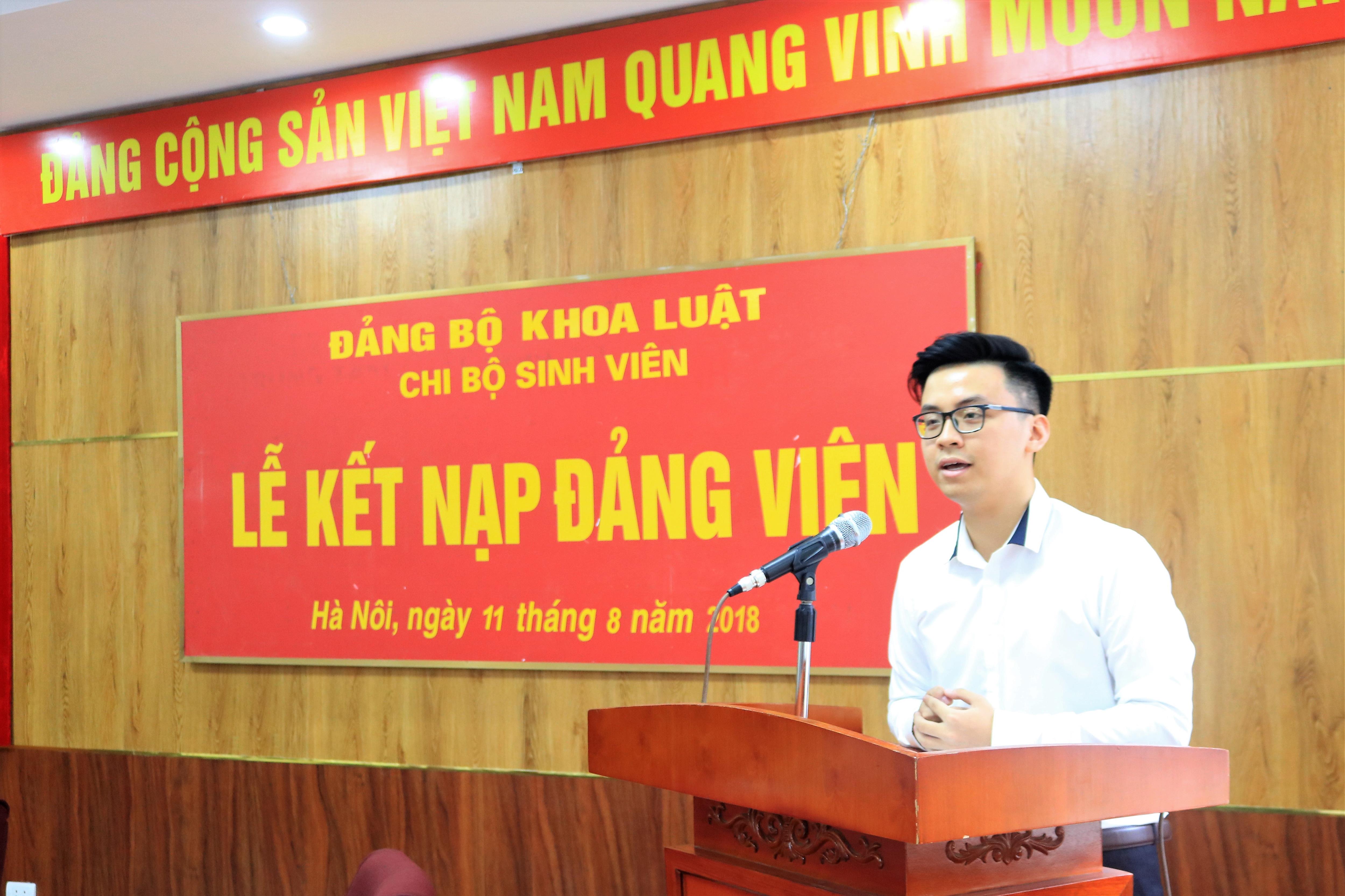 Là nhiệm vụ thường xuyên và có ý nghĩa quan trọng trong công tác xây dựng Đảng, ngày 11/8/2018, được sự đồng ý của Đảng ủy Khoa Luật, Chi bộ Sinh viên đã tổ chức Lễ kết nạp đảng viên cho các đồng chí: Nguyễn Minh Hải, Trần Đăng Ngọc Sơn, Nguyễn Thị Thanh Tú, Nguyễn Thị Phương, Nguyễn Thu Hà, Nguyễn Lan Chi, Vũ Đình Hoàng.