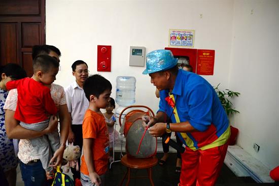 Cũng trong chương trình, các em được các cô, các chú tặng bóng bay nghệ thuật với nhiều hình đáng yêu như: bông hoa, thanh gươm, gấu, mèo, ; được xem múa lân và phá cỗ đêm trăng…