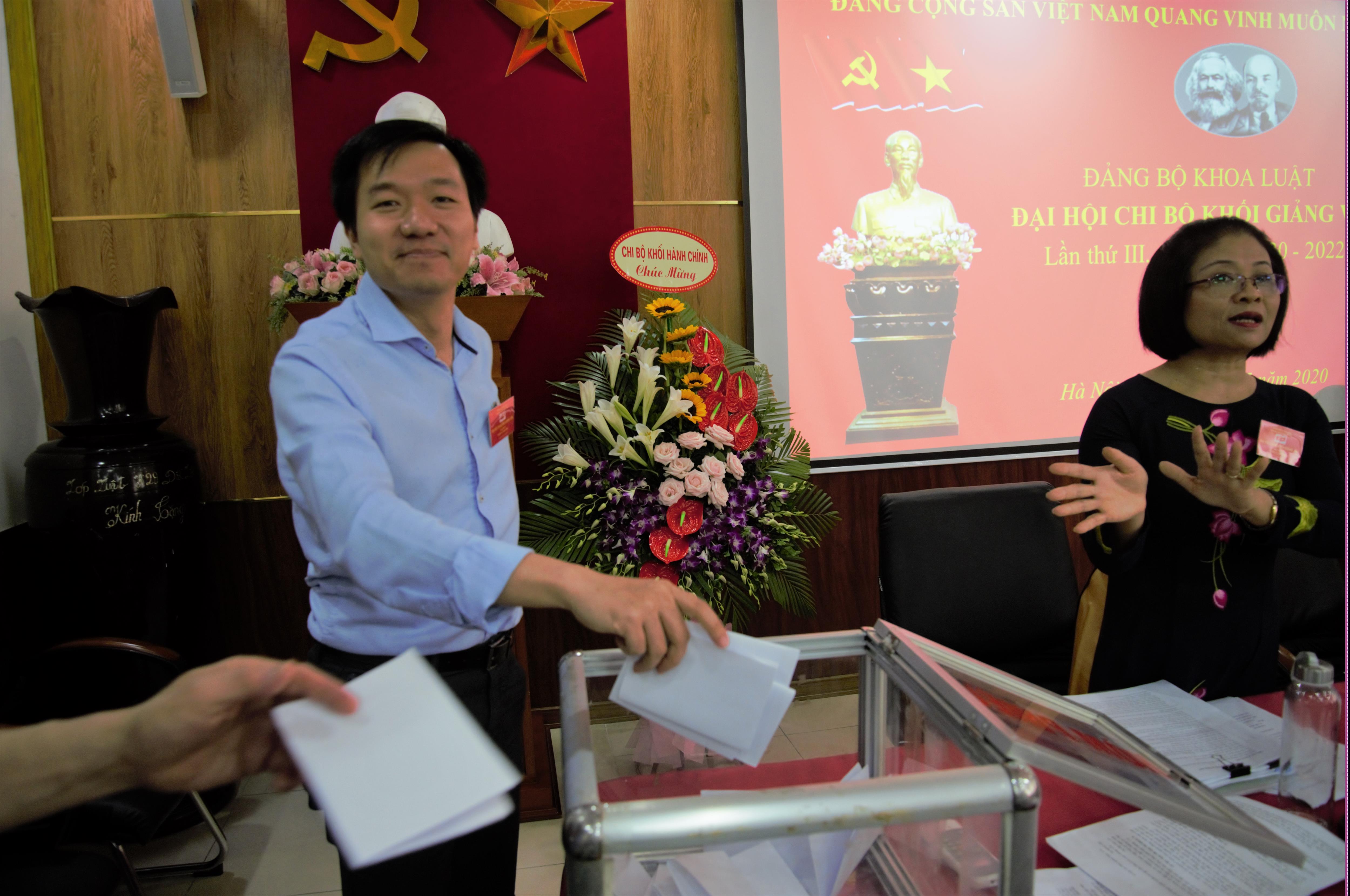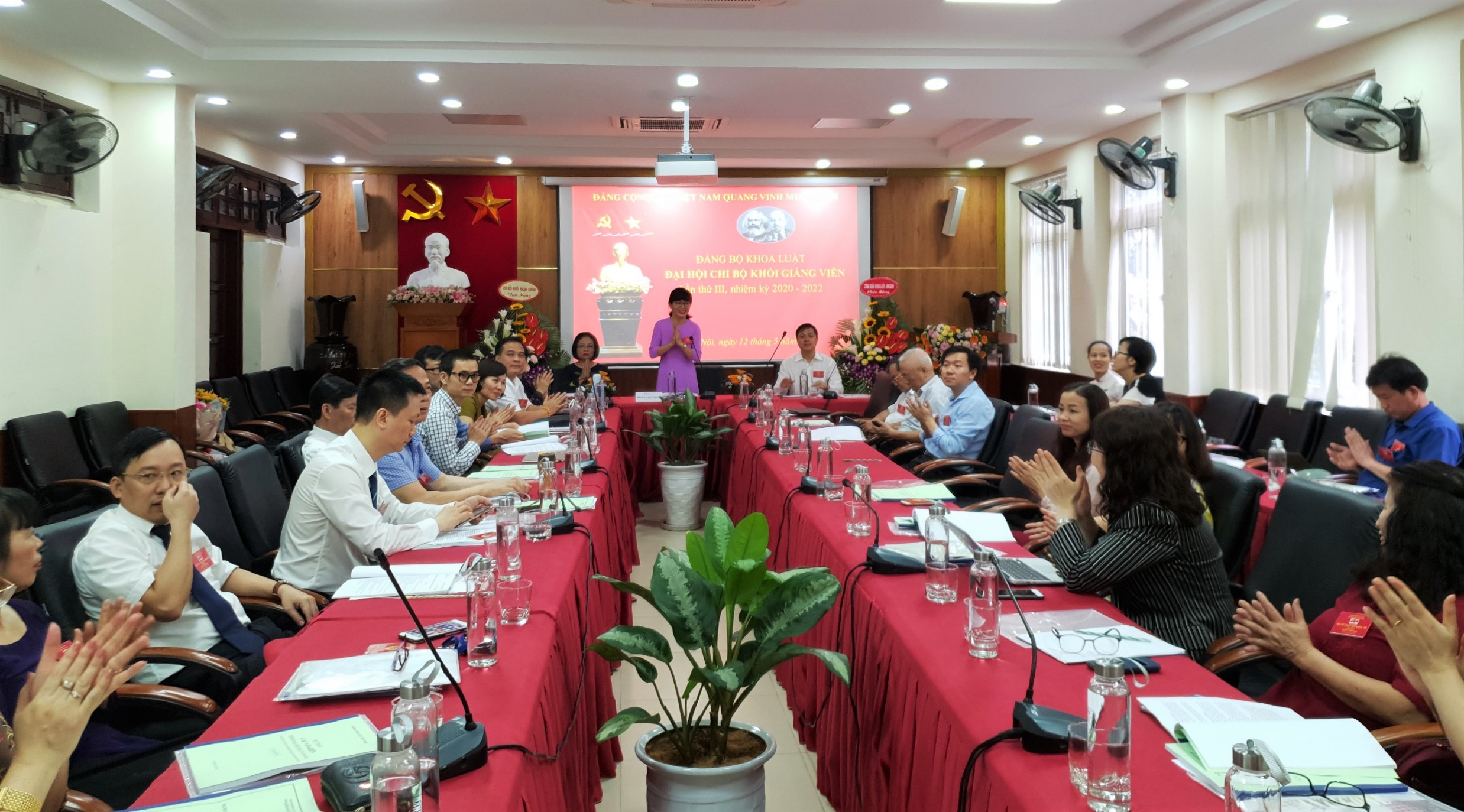 Được sự đồng ý của Đảng ủy Khoa Luật, Đại học Quốc gia Hà Nội, sáng ngày 12/5/2020, Đại hội Chi bộ Khối Giảng viên nhiệm kỳ 2020 – 2022 được tiến hành trọng thể với tinh thần đoàn kết, dân chủ, trí tuệ, trách nhiệm và quyết tâm xây dựng Chi bộ trong sạch, vững mạnh.