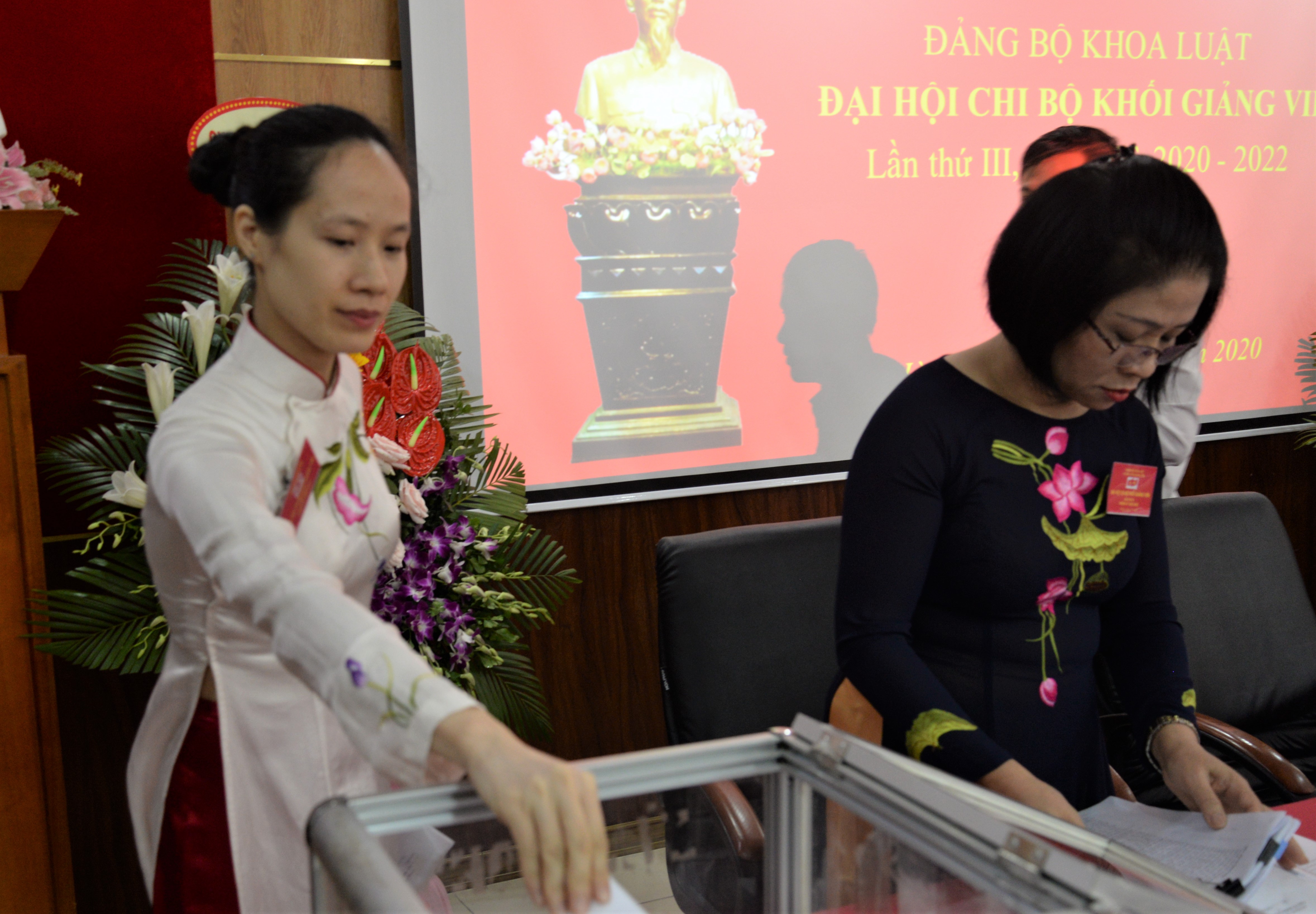 Với tinh thần dân chủ, trách nhiệm, Đại hội đã tiến hành bầu cấp ủy Chi bộ Khối Giảng viên nhiệm kỳ 2020 – 2022 gồm 04 đồng chí: đồng chí Nguyễn Hoàng Anh được bầu làm Bí thư; đồng chí Đặng Minh Tuấn được bầu làm Phó Bí thư, đồng chí Lê Lan Chi và đồng chí Nguyễn Thị Hoài Phương được bầu làm Chi ủy viên.