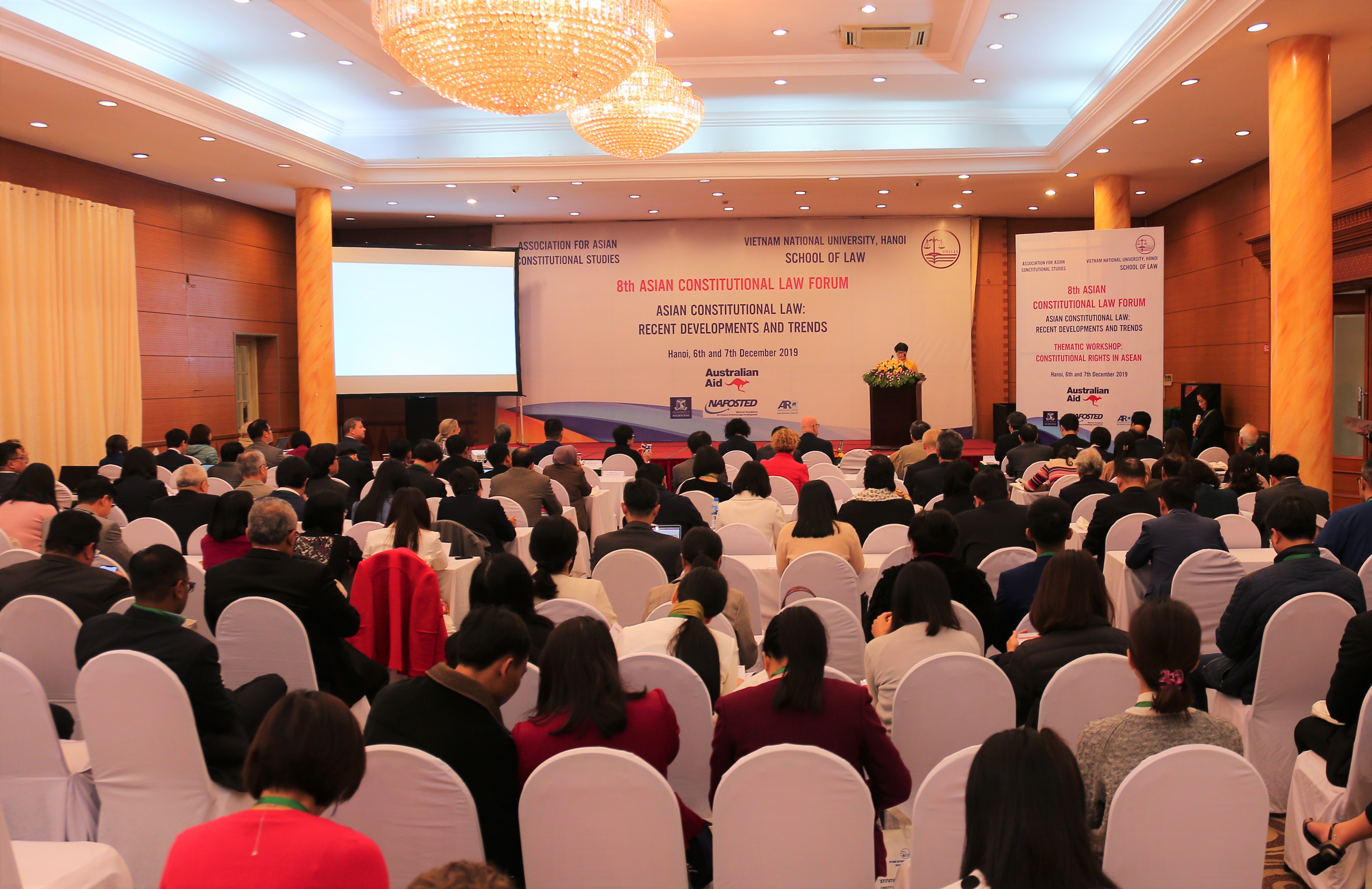 Sáng ngày 06/12/2019, Khoa Luật, Đại học Quốc gia Hà Nội (ĐHQGHN) và Hiệp hội nghiên cứu Hiến pháp Châu Á phối hợp tổ chức Diễn đàn Luật Hiến pháp Châu Á lần thứ 8 với chủ đề “Luật Hiến pháp Châu Á: Những phát triển gần đây và xu hướng tương lai” tại khách san La Thành. Đây là lần đầu tiên một sự kiện lớn về luật học diễn ra tại Việt Nam và Khoa Luật là đơn vị đồng tổ chức.