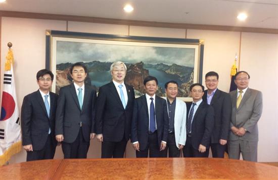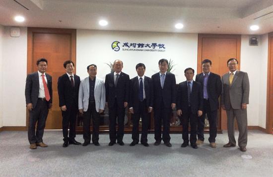 Chủ tịch Chung, KYU SANG và Phó Chủ tịch Lee, Suke KYU của đại học Sung Kyun Kwan (SKKU) tiếp đón và làm việc với đoàn Khoa Luật, ĐHQGHN.