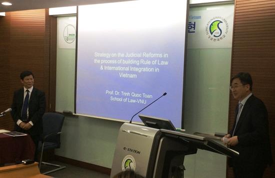 PGS.TS Trịnh Quốc Toản thuyết trình về chiến lược cải cách tư pháp ở Việt Nam trong bối cảnh xây dựng nhà nước pháp quyền và hội nhập quốc tế ở Việt Nam trước các Giáo sư và sinh viên Khoa Luật, ĐH Sung Kyun Kwan.