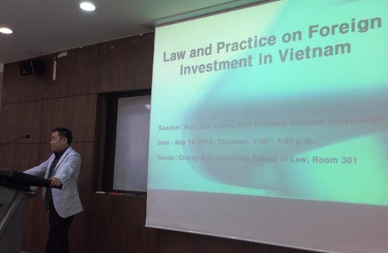 PGS.TS Ngô Huy Cương trình bày về pháp luật và thực tiễn về đầu tư nước ngoài tại Việt Nam tại Khoa Luật, ĐH Tổng hợp Chung-Ang.