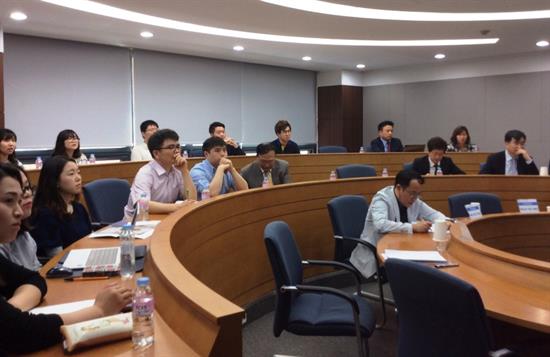 Khung cảnh buổi báo cáo khoa học của PGS.TS Trinh Quốc Toản trước các Giáo sư và sinh viên Khoa Luật, ĐH Sung Kyun Kwan.