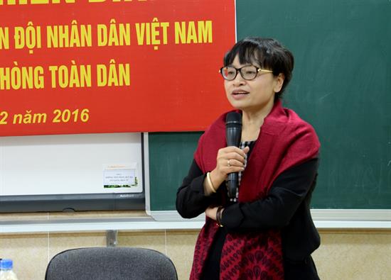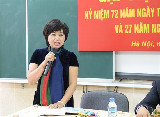 Đến dự buổi gặp mặt, PGS.TS. Nguyễn Thị Quế Anh, Bí thư Đảng ủy phát biểu: “Nhân dịp kỷ niệm 72 năm ngày thành lập Quân đội Nhân dân Việt Nam và 27 năm ngày Hội Quốc phòng toàn dân, thay mặt cho Đảng ủy, tôi xin gửi lời chúc sức khỏe và tri ân đến các thầy cô, các đồng chí cựu chiến binh, những người đã tham gia trong quân đội và có nhiều đóng góp cho sự nghiệp xây dựng và bảo vệ tổ quốc, trong thời bình này, mong các thầy cô và gia đình luôn mạnh khỏe, hạnh phúc và tiếp tục đóng góp nhiều hơn trên phương diện khoa học, đào tạo và ngày càng phát huy hơn nữa những đức tính tốt của bộ đội cụ Hồ”.