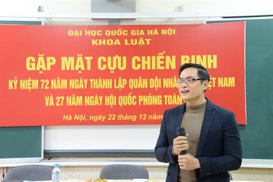 Ngày 22/12/2016 vừa qua, Công Đoàn và Đoàn Thanh niên Khoa Luật, ĐHQGHN đã tổ chức buổi gặp mặt các cựu chiến binh nhân dịp kỷ niệm 72 năm ngày thành lập Quân đội Nhân dân Việt Nam và 27 năm ngày Hội quốc phòng toàn dân.