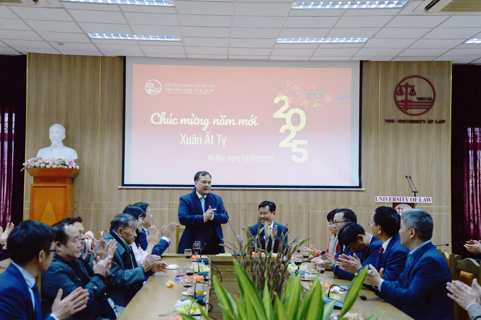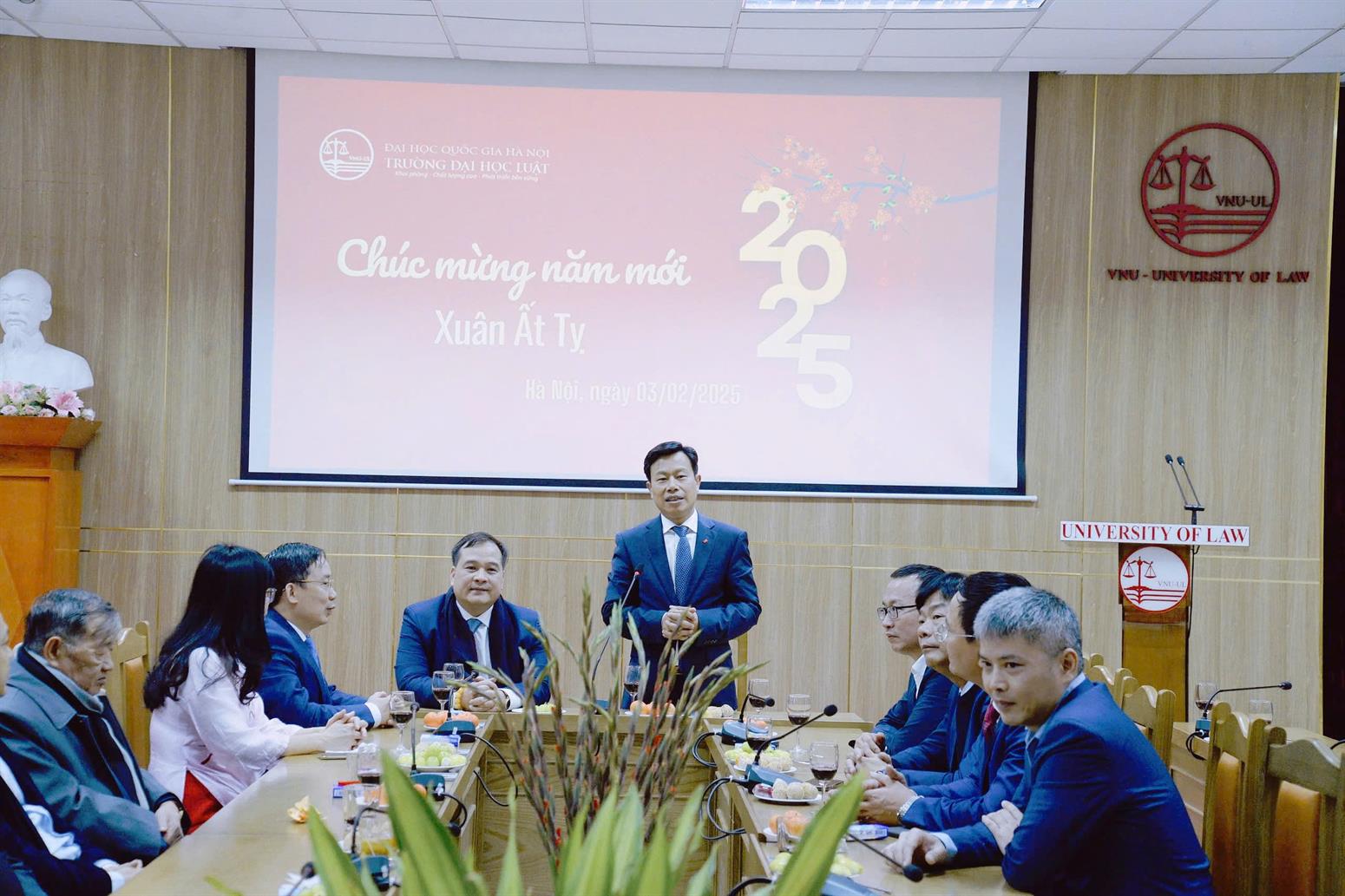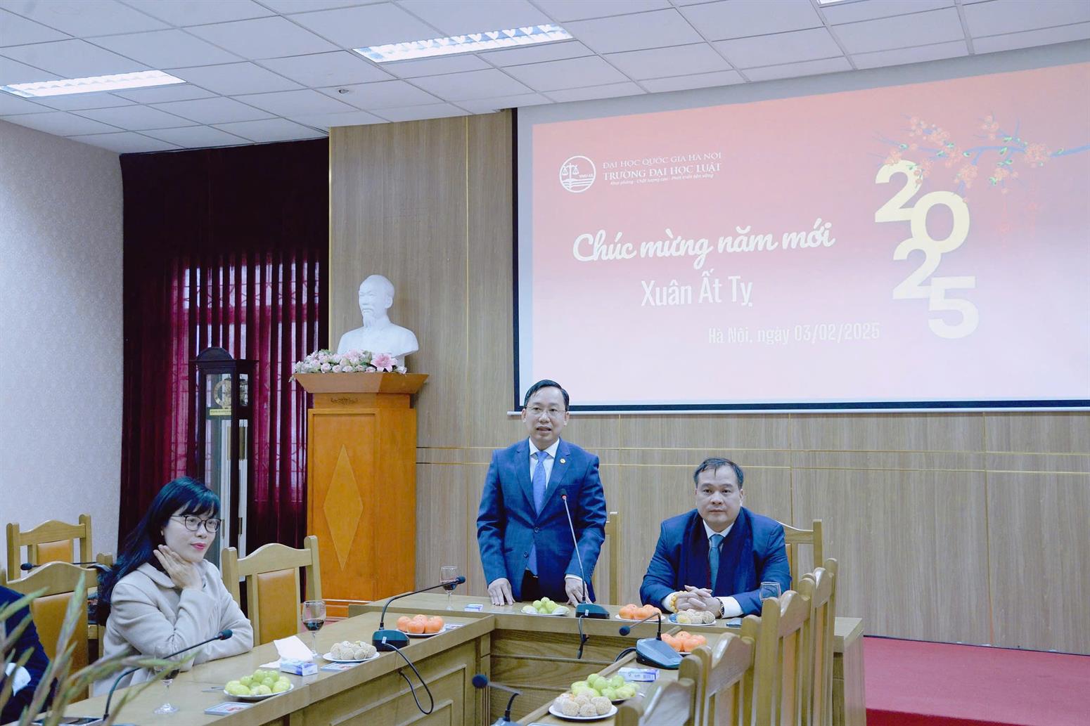 Sáng 03/02/2025 (tức mùng 6 tháng Giêng), ngày làm việc đầu tiên của năm mới Ất Tỵ, Trường Đại học Luật, ĐHQGHN đã tổ chức gặp mặt, chúc mừng năm mới tới toàn thể viên chức và người lao động của Trường.