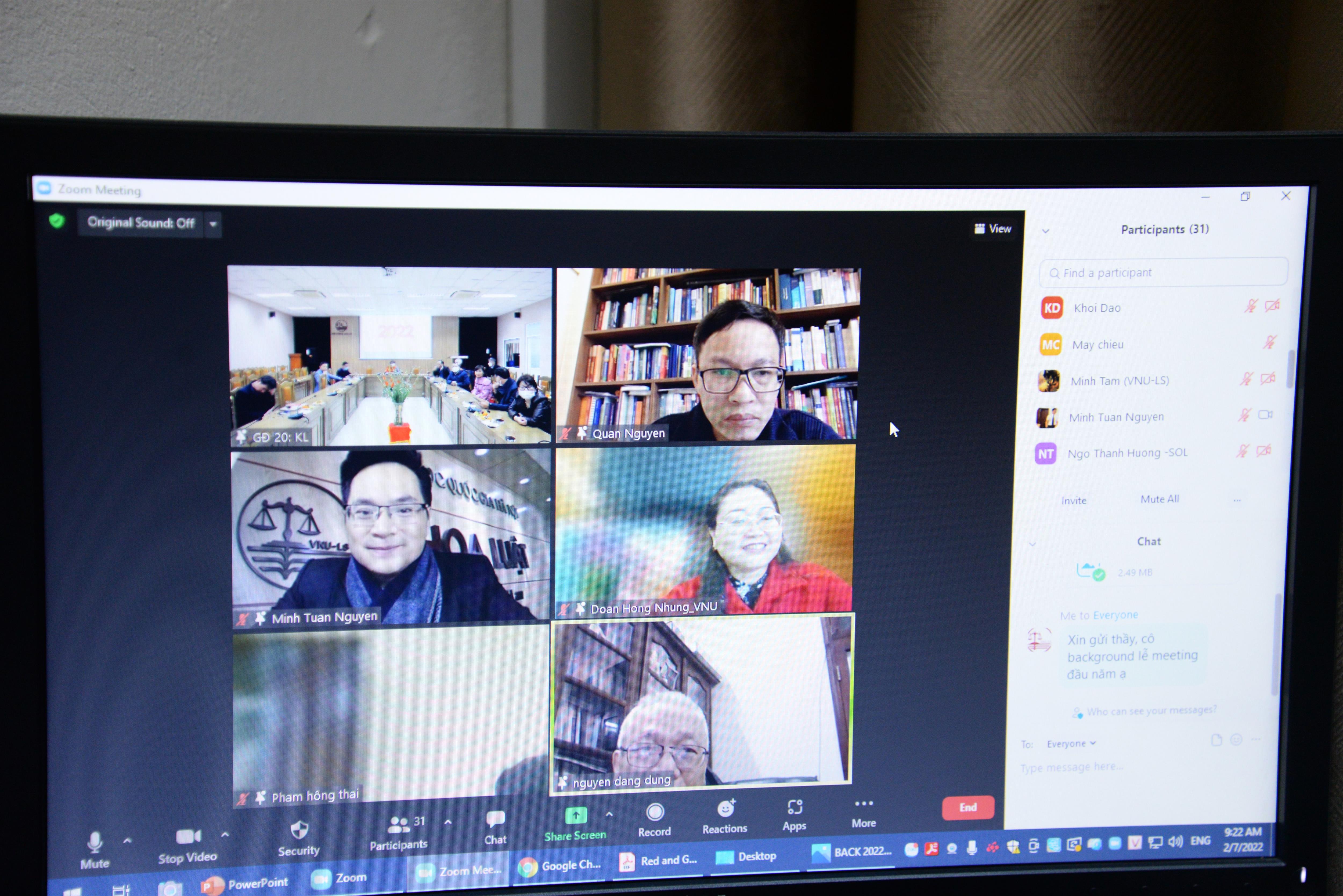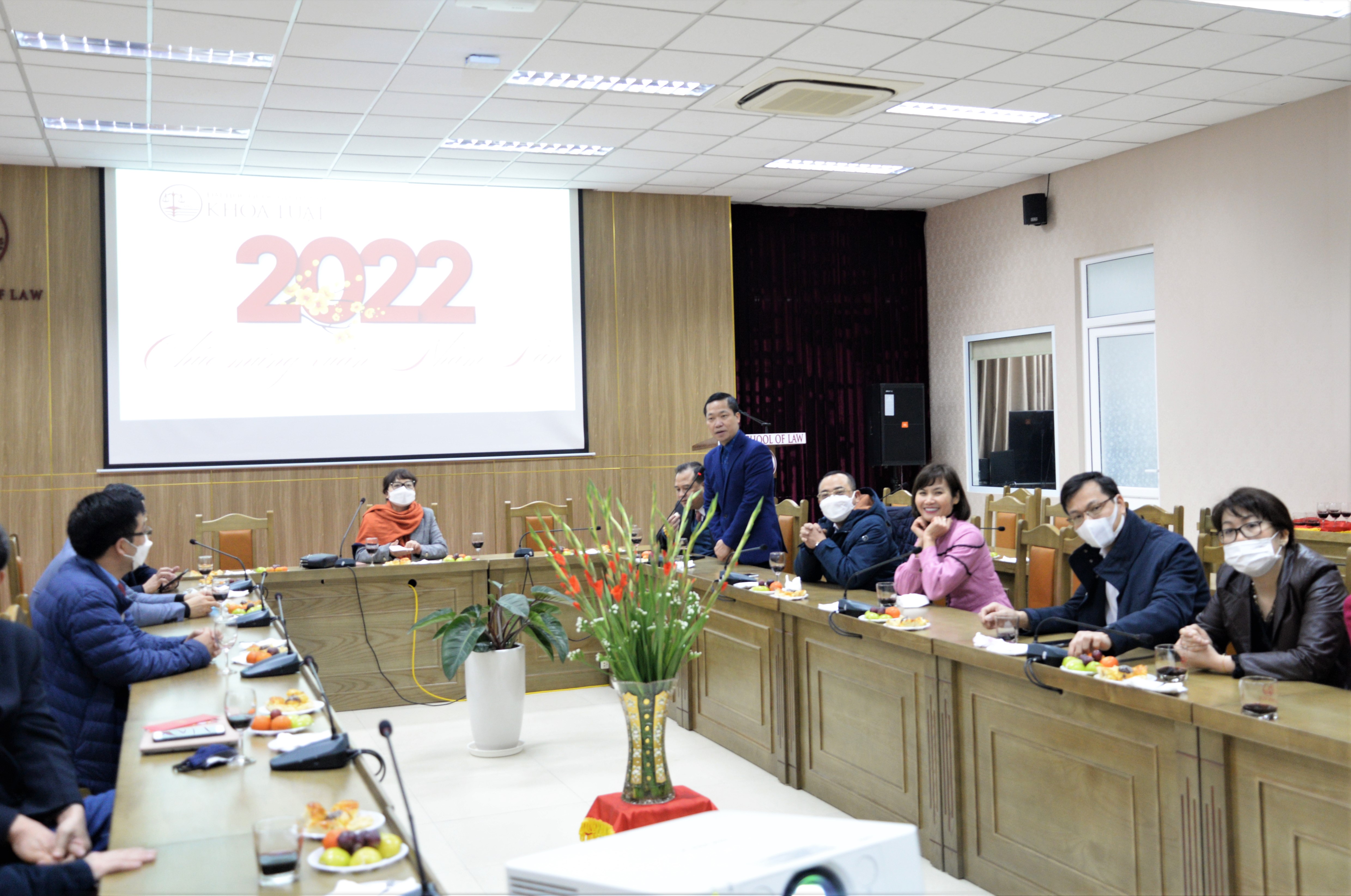 Nhân dịp ngày đầu năm mới – xuân Nhâm Dần 2022, sáng ngày 07/02/2022 (Mùng 7 tháng Giêng Âm Lịch), Khoa Luật – Đại học Quốc gia Hà Nội (ĐHQGHN) đã tổ chức buổi gặp mặt các cán bộ, viên chức, người lao động của Khoa. Để đảm bảo an toàn trong thời điểm dịch Covid – 19, Khoa đã triển khai Buổi gặp mặt bằng cả hình thức trực tuyến và trực tiếp.
