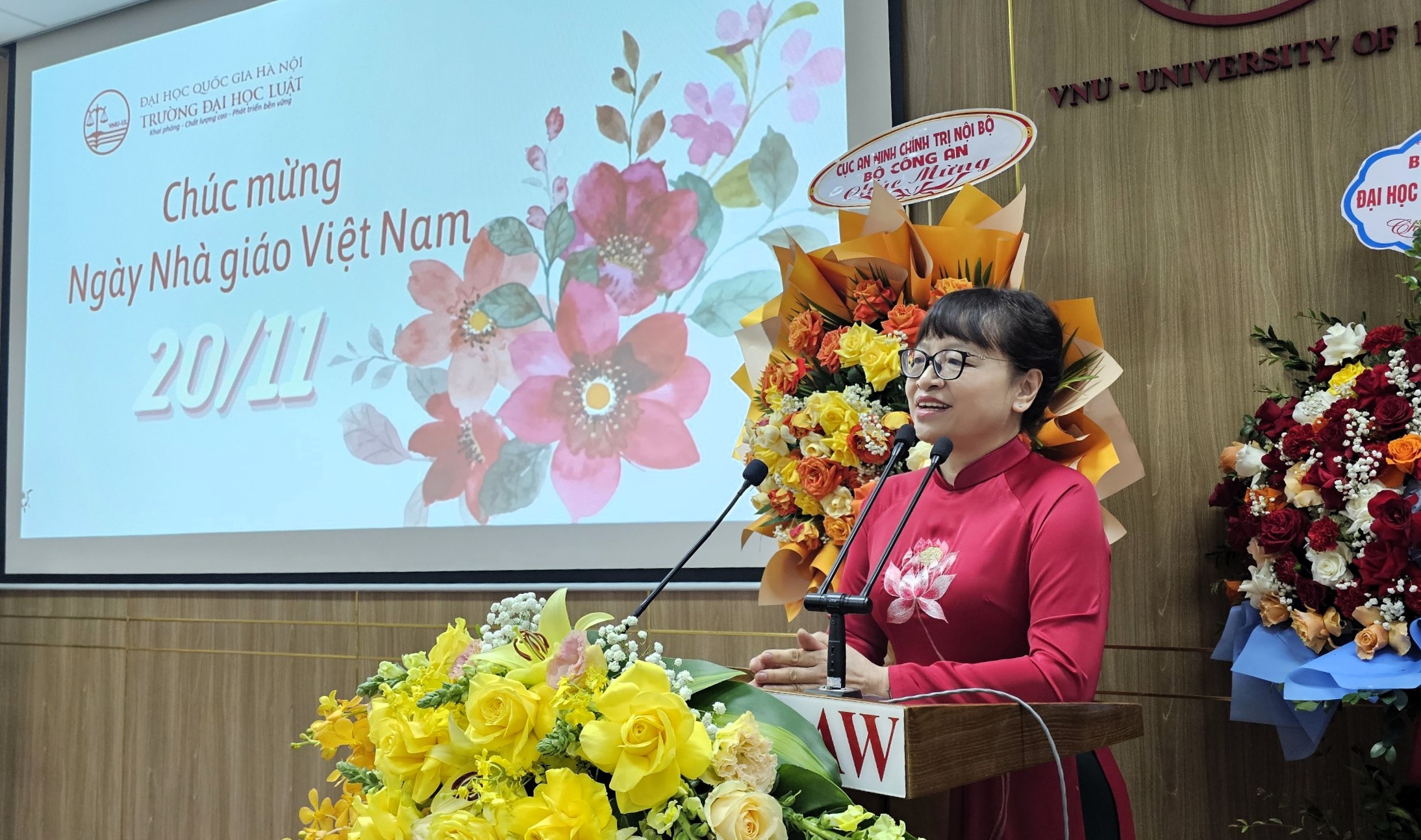 Sáng ngày 16 tháng 11 năm 2023, Trường Đại học Luật, Đại học Quốc gia Hà Nội (ĐHQGHN) đã long trọng tổ chức Buổi Gặp mặt kỷ niệm Ngày Nhà giáo Việt Nam 20/11 nhằm tôn vinh, ghi nhận, tri ân các thế hệ cán bộ, giảng viên, cộng tác viên, người lao động đã và đang cống hiến cho sự nghiệp giáo dục và đào tạo nói chung và cho sự phát triển không ngừng của Trường nói riêng.