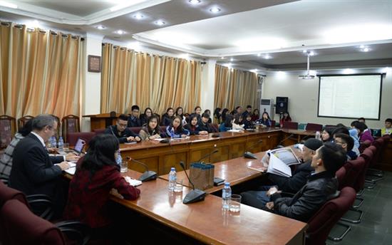 Nằm trong chương trình phát triển các chuyên đề bổ trợ kiến thức chuyên ngành dành cho sinh viên, học viên, ngày 24/02/2016 vừa qua, ông Gregory D.Alesandro viên chức chính trị – Đại sứ quán Hoa Kỳ tại Hà Nội đã có buổi thuyết trình về chủ đề: “Khái quát về hệ thống pháp luật Hoa Kỳ và vai trò của công tố viên trong hệ thống pháp luật Hoa Kỳ” tại Khoa Luật với sự tham gia của các giảng viên, học viên và sinh viên.
