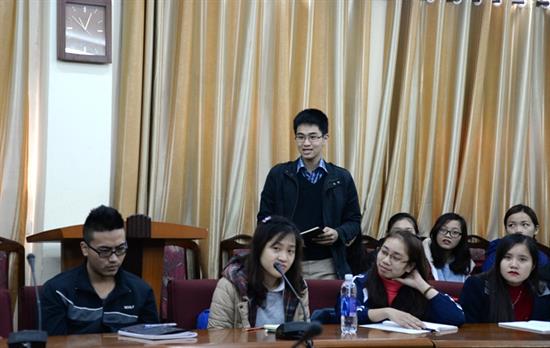 Là những kiến thức quan trọng nằm trong chương trình học tập, vì vậy, các bạn sinh viên, học viên đã rất quan tâm đến nội dung cũng như những thông tin ông Gregory đưa ra. Sinh viên Lê Ngọc Cẩm – K58LKD đã đưa ra câu hỏi liên quan yếu tố chính trị trong các phán quyết của tòa án – tính độc lập của thẩm phán và các yếu tố trong việc lựa chọn thẩm phán tòa án tối cao. Sinh viên Vũ Hoàng – K60CLC cũng mong muốn tìm hiểu thêm về hệ thống tư pháp giữa Anh và Hoa Kỳ, quy trình lựa chọn xét xử tại tòa án tối cao.