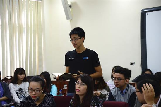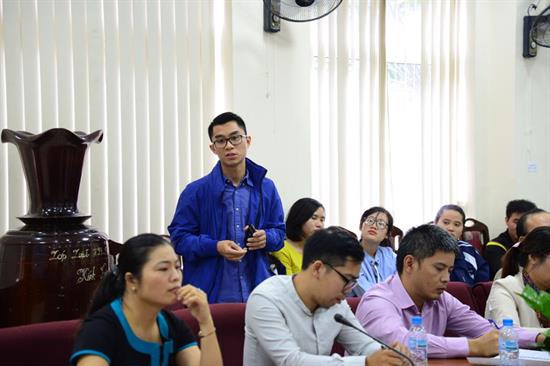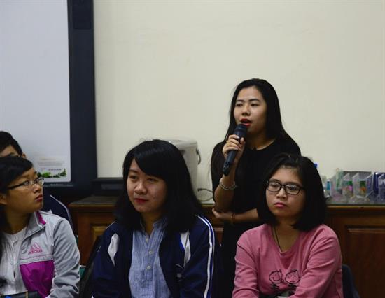Buổi đối thoại diễn ra trong không khí cởi mở, các thắc mắc của sinh viên đã được lãnh đạo Khoa giải đáp thỏa đáng