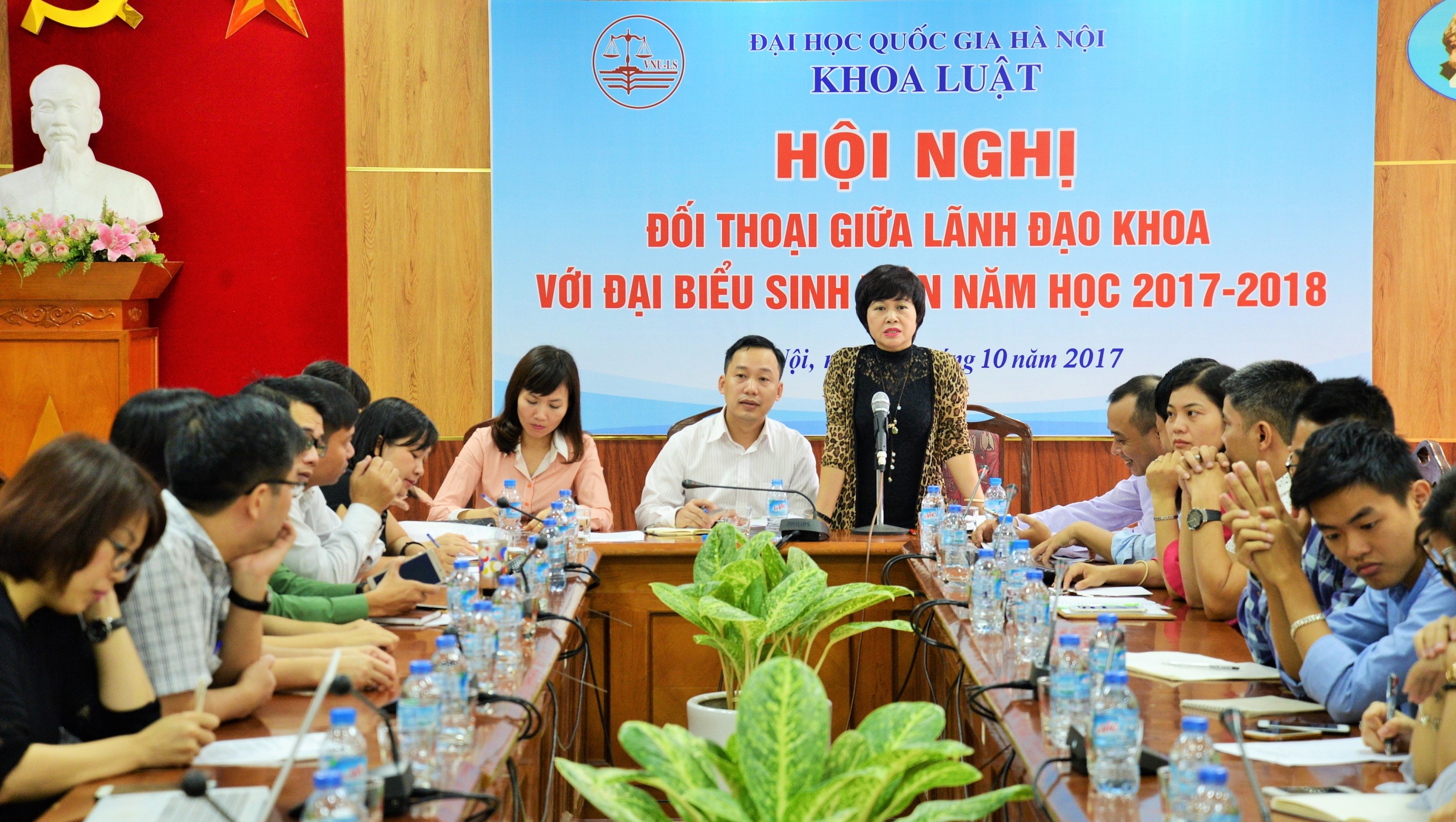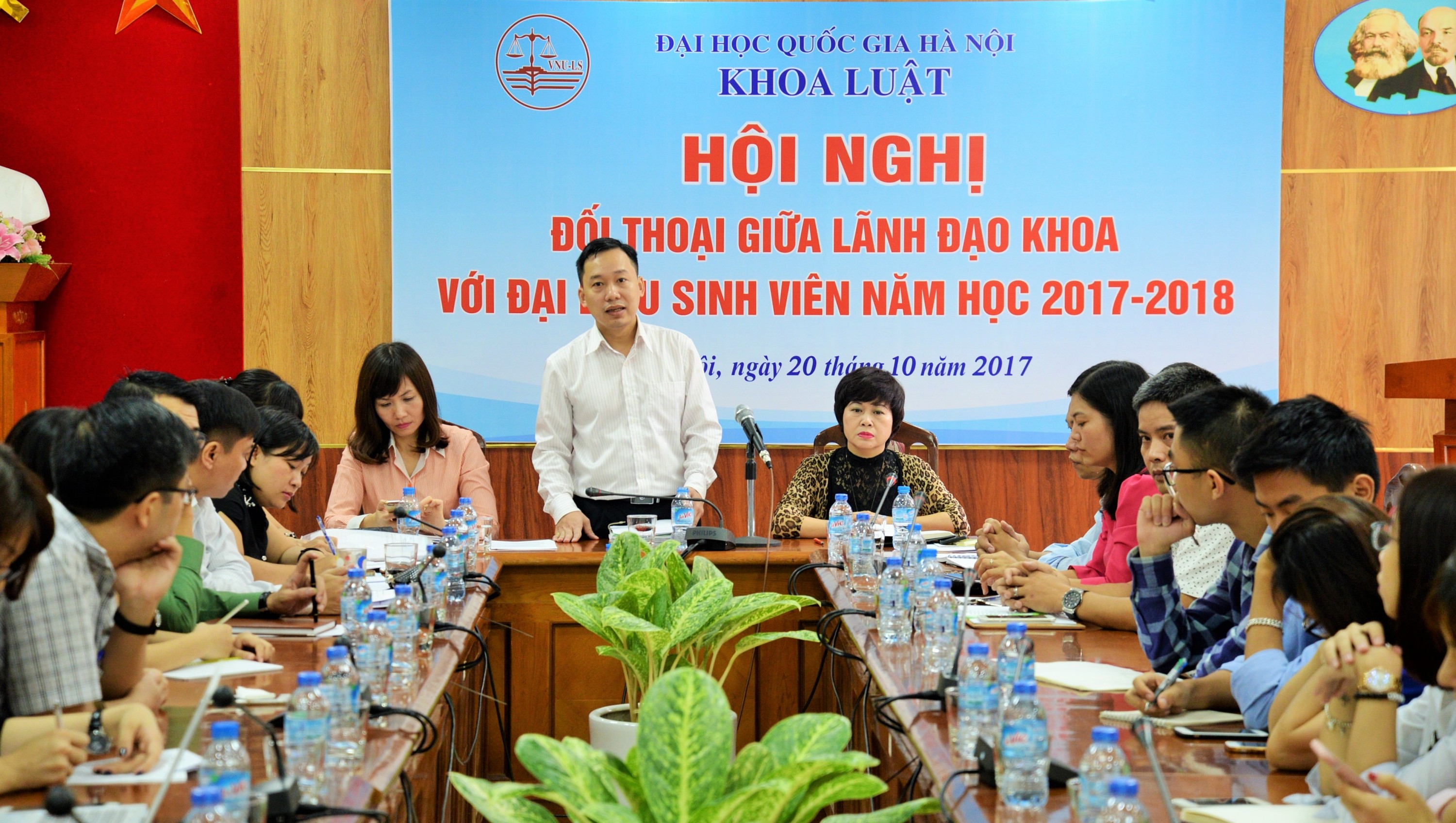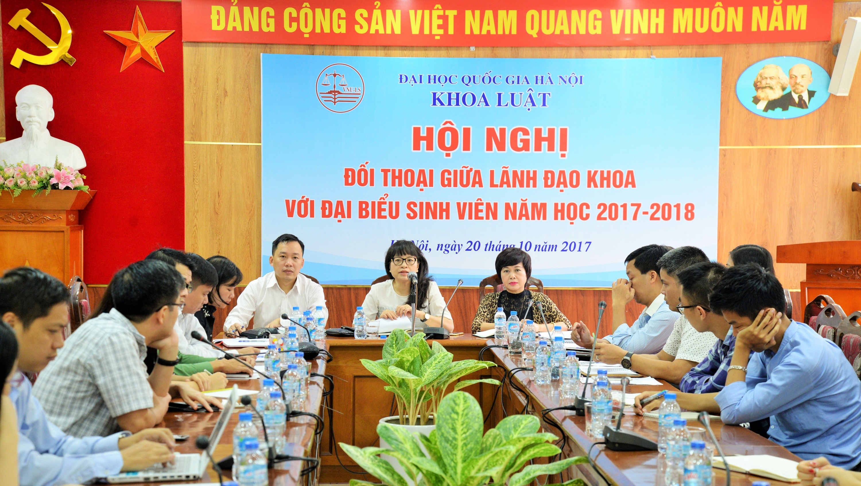 Sáng ngày 20/10/2017, Khoa Luật, Đại học Quốc gia Hà Nội (ĐHQGHN) đã tổ chức Hội nghị đối thoại giữa Ban Chủ nhiệm Khoa với sinh viên năm học 2017 – 2018.