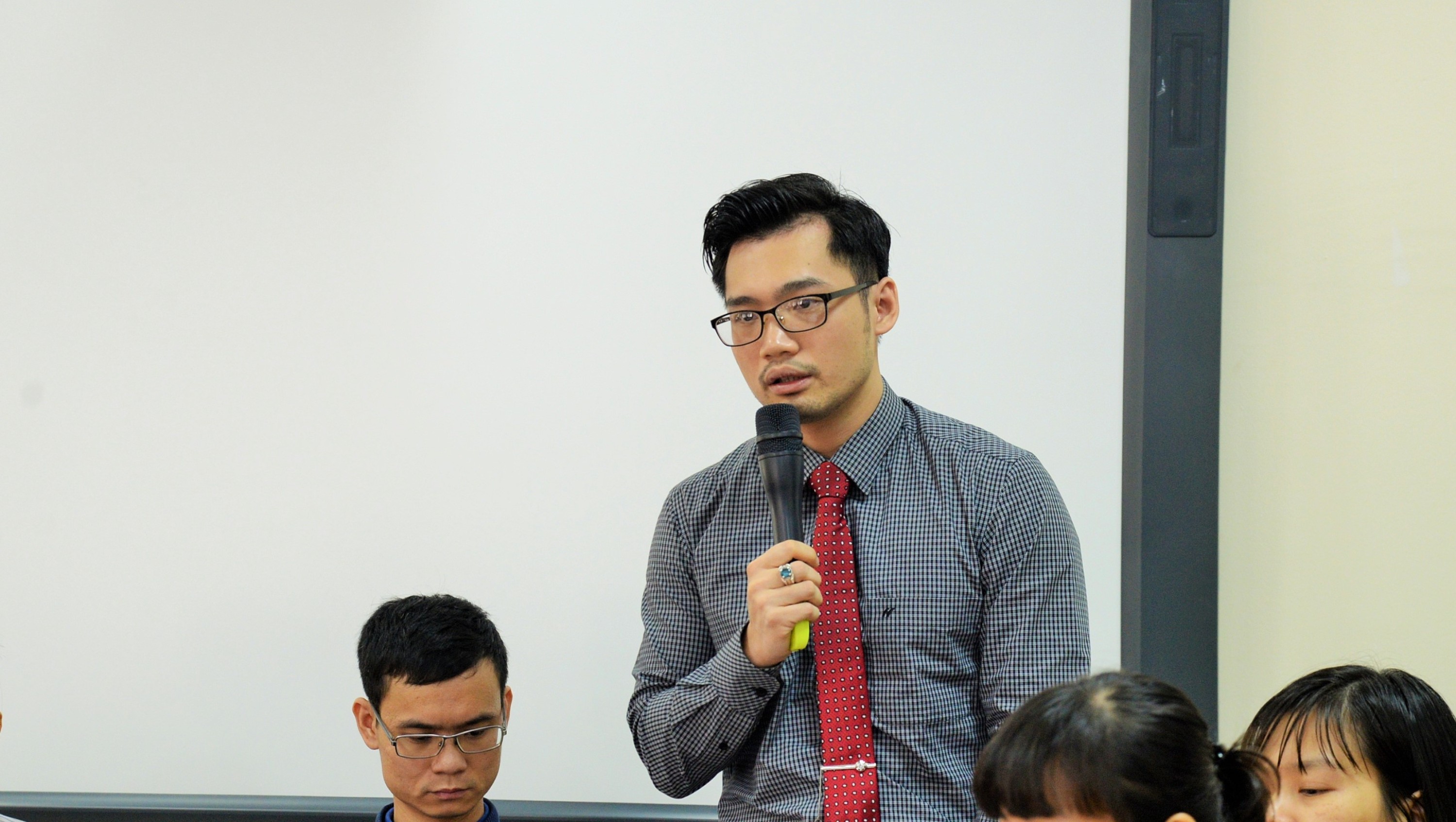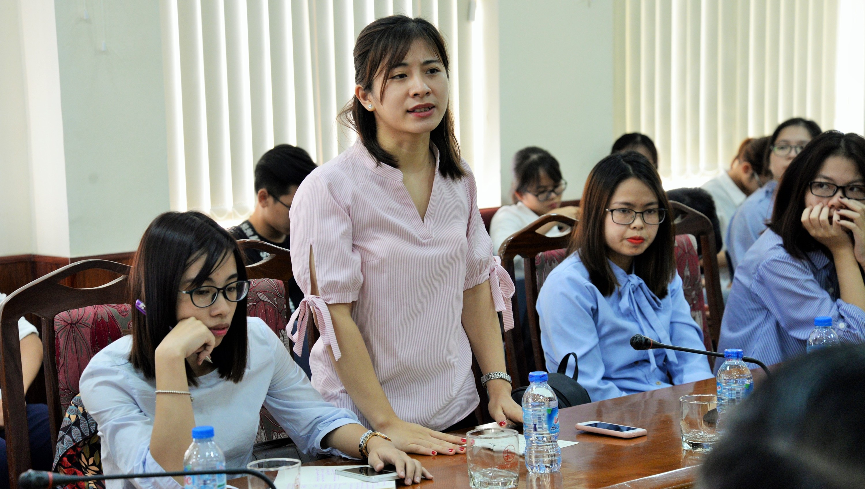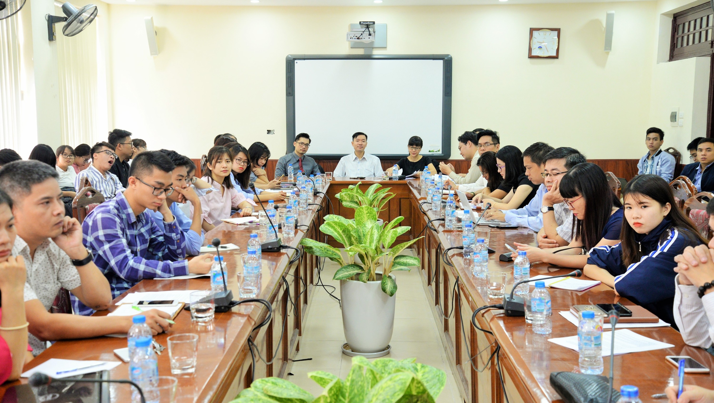 Buổi đối thoại diễn ra trong không khí cởi mở, các thắc mắc của sinh viên đã được lãnh đạo Khoa giải đáp thỏa đáng.