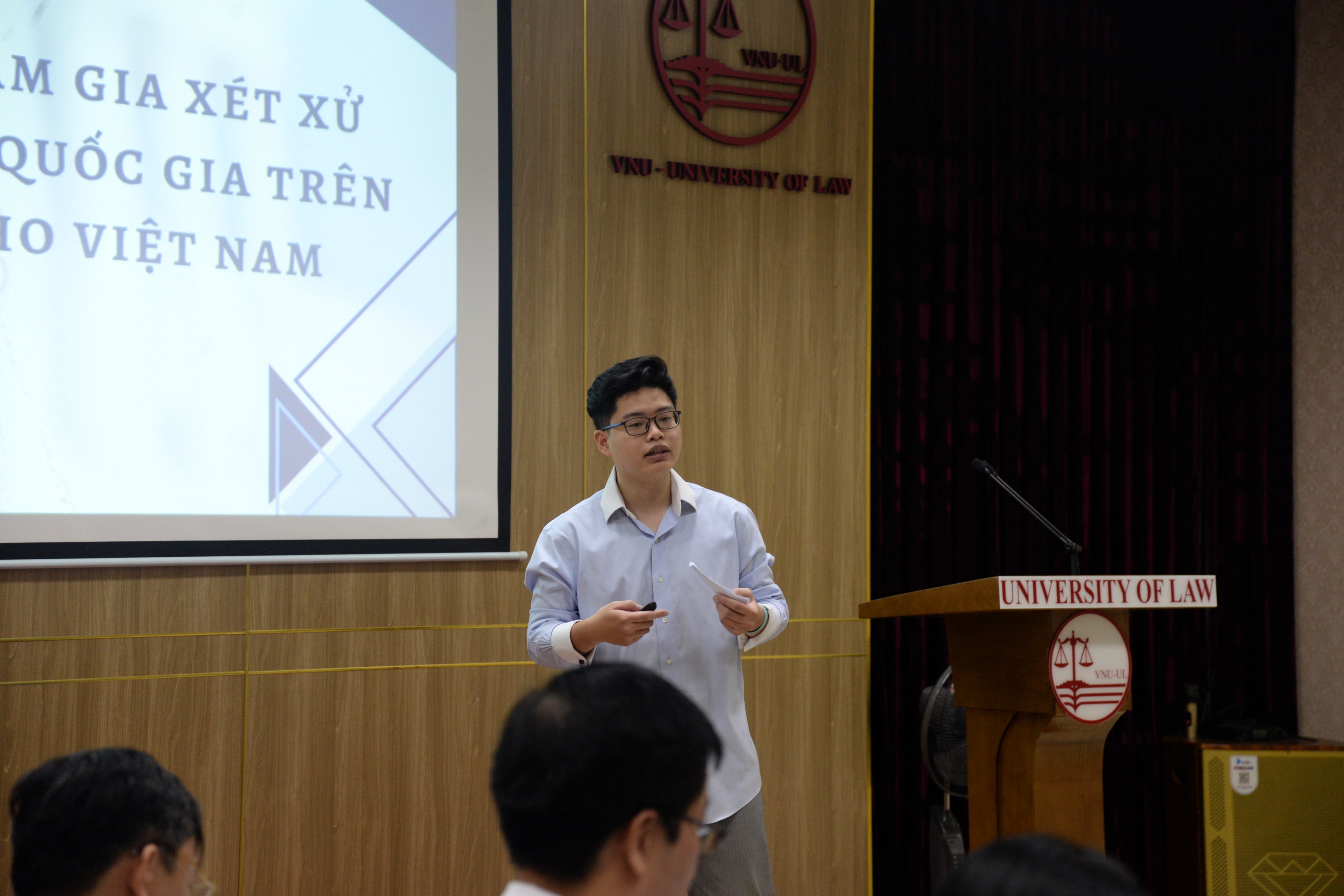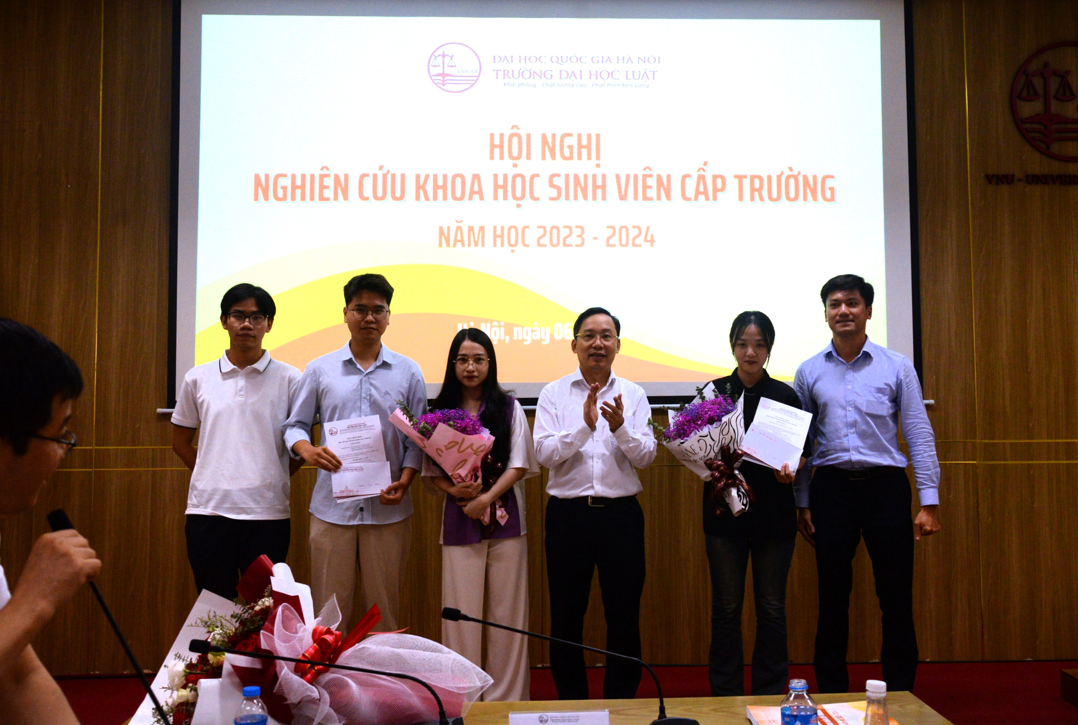 Ngày 06/5/2024, Trường Đại học Luật, ĐHQGHN đã tổ chức Hội nghị nghiên cứu khoa học (NCKH) sinh viên cấp Trường. Hội nghị là hoạt động thường xuyên Trường nhằm giúp sinh viên có cơ hội được học tập, trao đổi và chia sẻ kinh nghiệm. Hội nghị vinh dự có sự góp mặt của các thầy cô trong Hội đồng đánh giá gồm: PGS.TS. Trịnh Tiến Việt – Chủ tịch Hội đồng, PGS.TS. Nguyễn Hoàng Anh – Ủy viên, TS. Đỗ Giang Nam – Ủy viên, PGS.TS. Đặng Minh Tuấn – Ủy viên, PGS.TS. Nguyễn Thị Xuân Sơn – Ủy viên, TS. Trần Anh Tú – Ủy viên, PGS.TS. Trịnh Quốc Toản, TS. Mai Văn Thắng – Ủy viên thư ký.