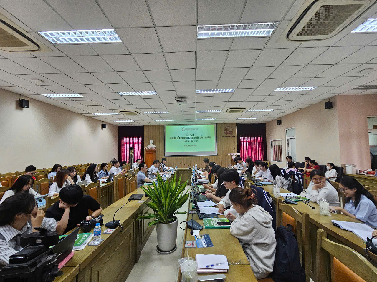 Hội nghị vinh dự đón tiếp sự tham dự của PGS.TS. Trịnh Tiến Việt, Phó Hiệu trưởng phụ trách Nhà trường và PGS.TS. Nguyễn Hoàng Anh, Phó Hiệu trưởng. Sự hiện diện của Ban Giám hiệu cùng đông đảo các nhà khoa học, giảng viên và sinh viên trong Trường đã thể hiện sự quan tâm sâu sắc của Lãnh đạo Nhà trường đối với hoạt động NCKHSV – một nhiệm vụ then chốt trong quá trình đào tạo, góp phần nâng cao tư duy phản biện, kỹ năng nghiên cứu và chất lượng nguồn nhân lực pháp luật tương lai.