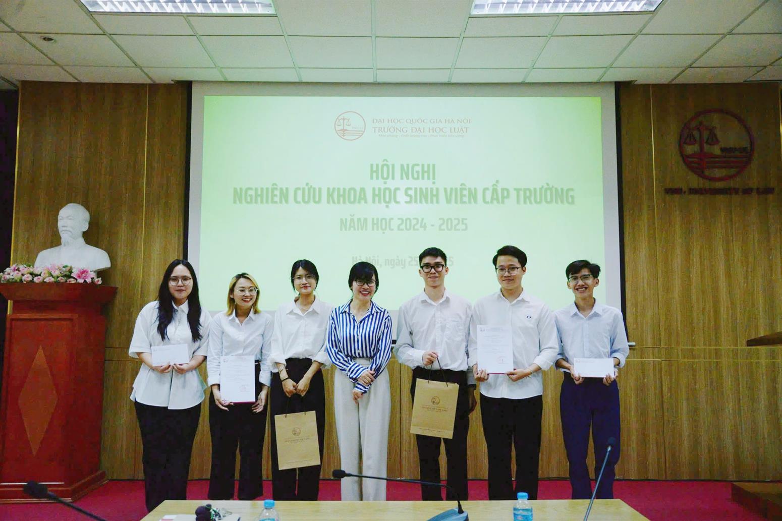Hội nghị Nghiên cứu khoa học sinh viên cấp Trường năm học 2024-2025 đã khép lại thành công tốt đẹp, để lại nhiều dấu ấn về tinh thần học hỏi, sáng tạo và sự trưởng thành trong nghiên cứu của các nhóm sinh viên. Đây không chỉ là dịp để tổng kết, đánh giá và vinh danh những nỗ lực của sinh viên mà còn là tiền đề quan trọng để Nhà trường lựa chọn những công trình xuất sắc nhất đại diện tham dự Hội nghị NCKH cấp ĐHQGHN, tiếp tục khẳng định vị thế và chất lượng đào tạo của Trường Đại học Luật, ĐHQGHN.