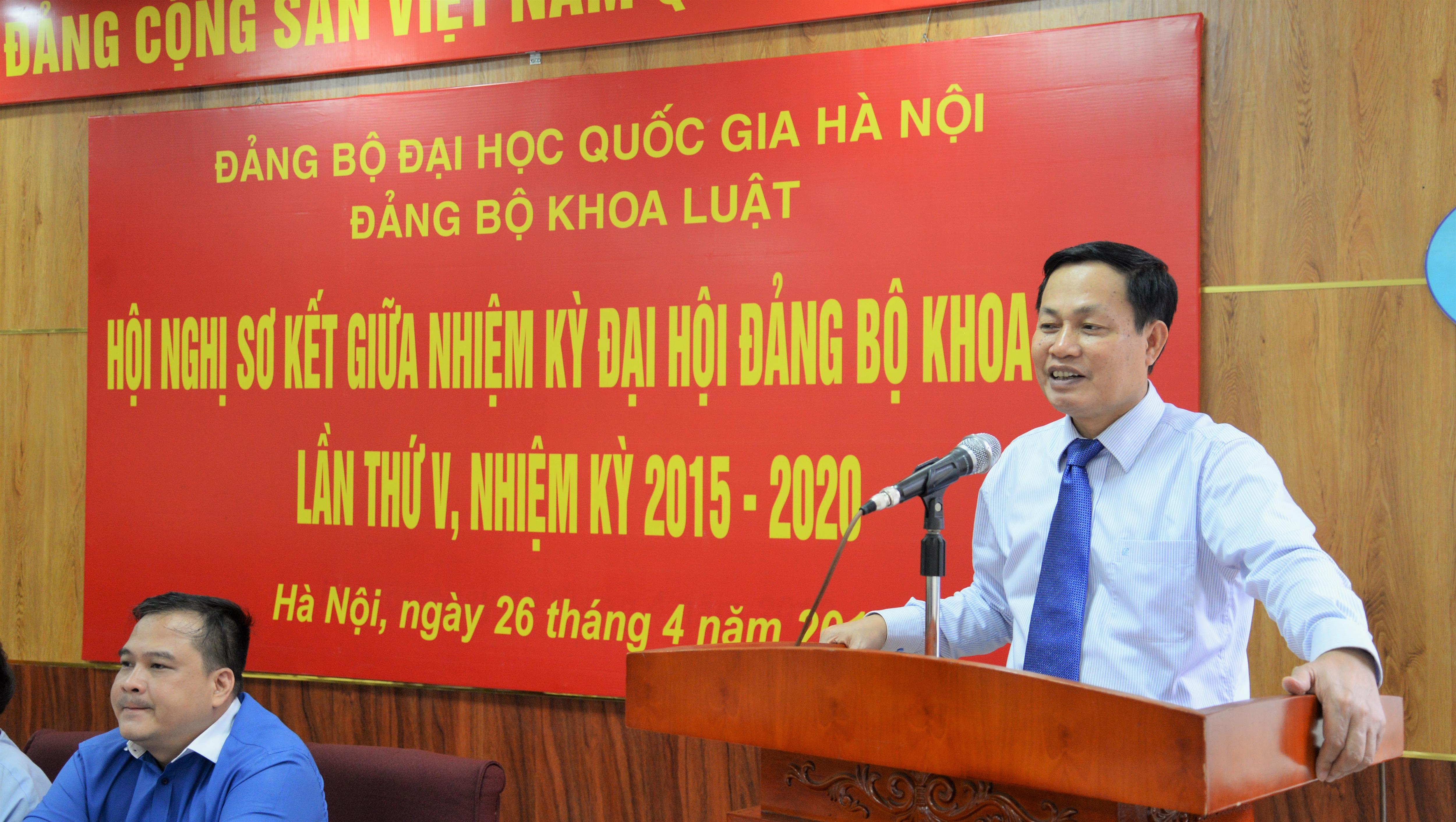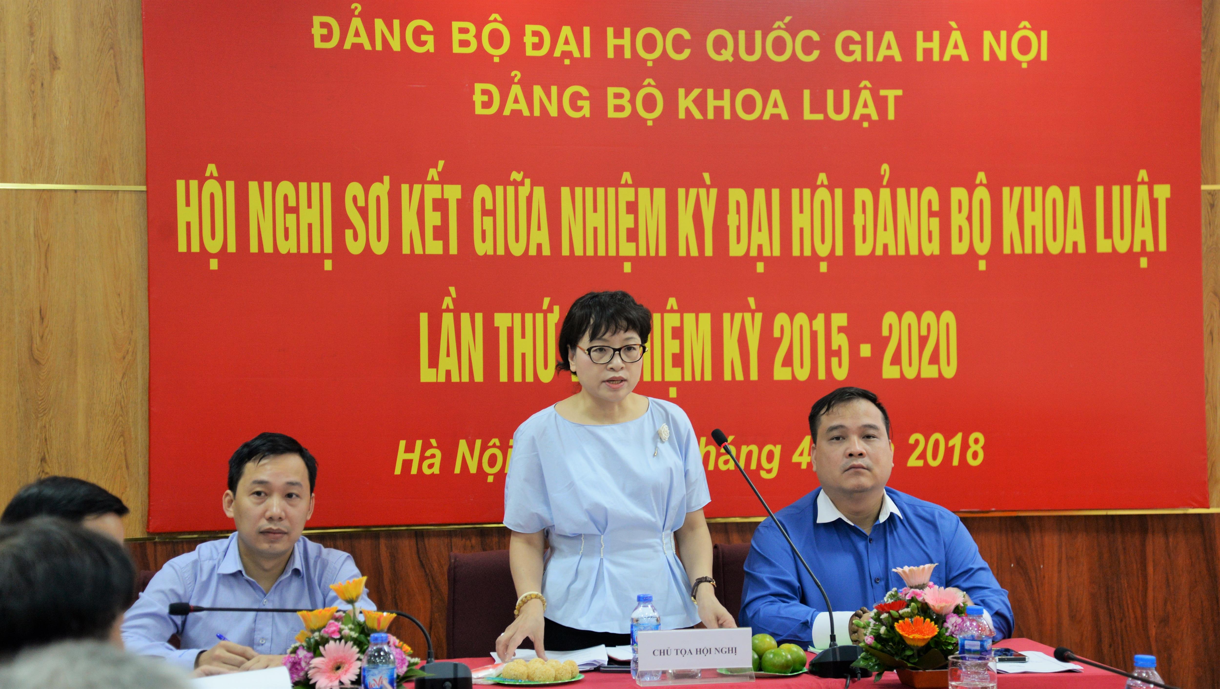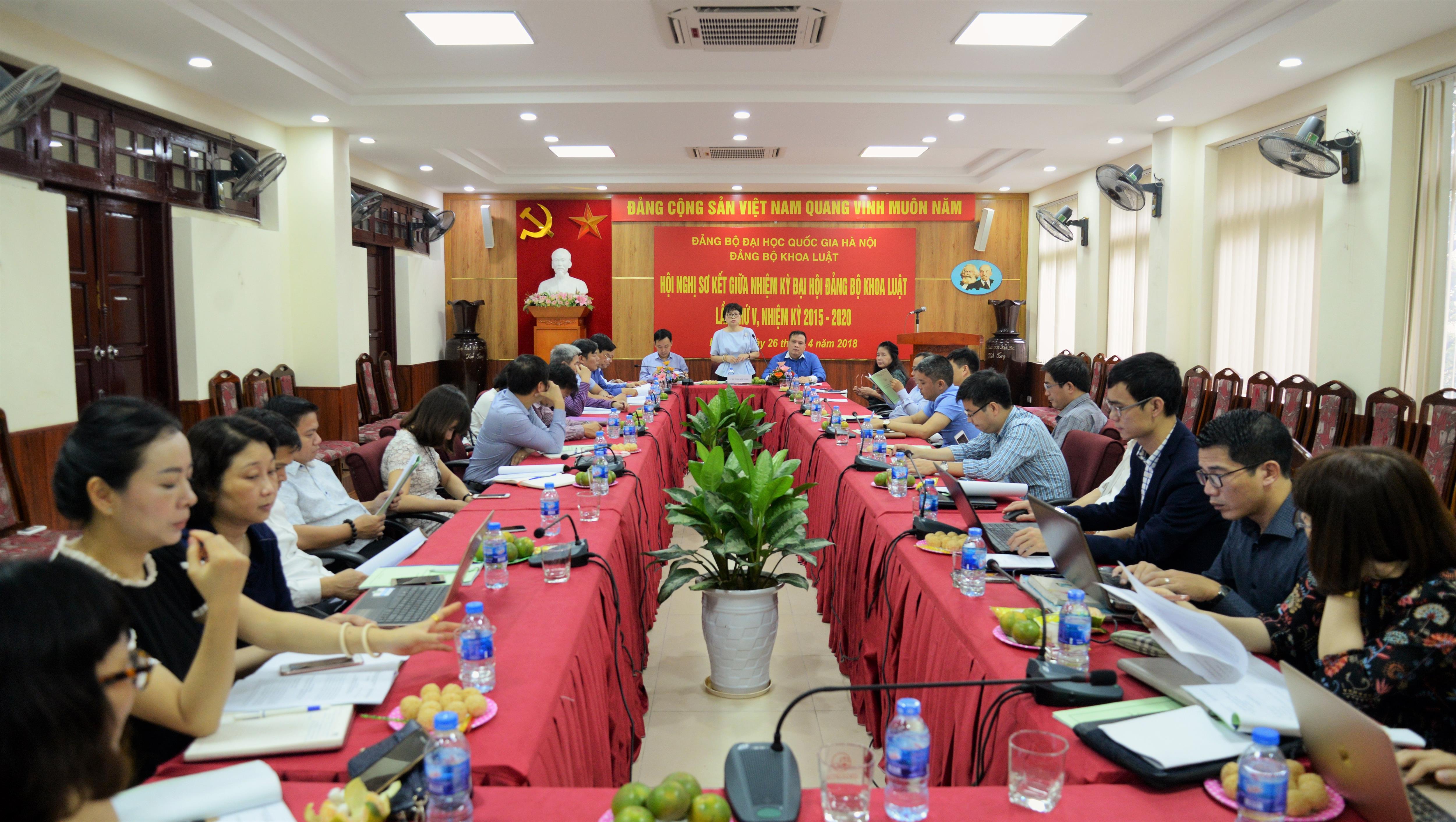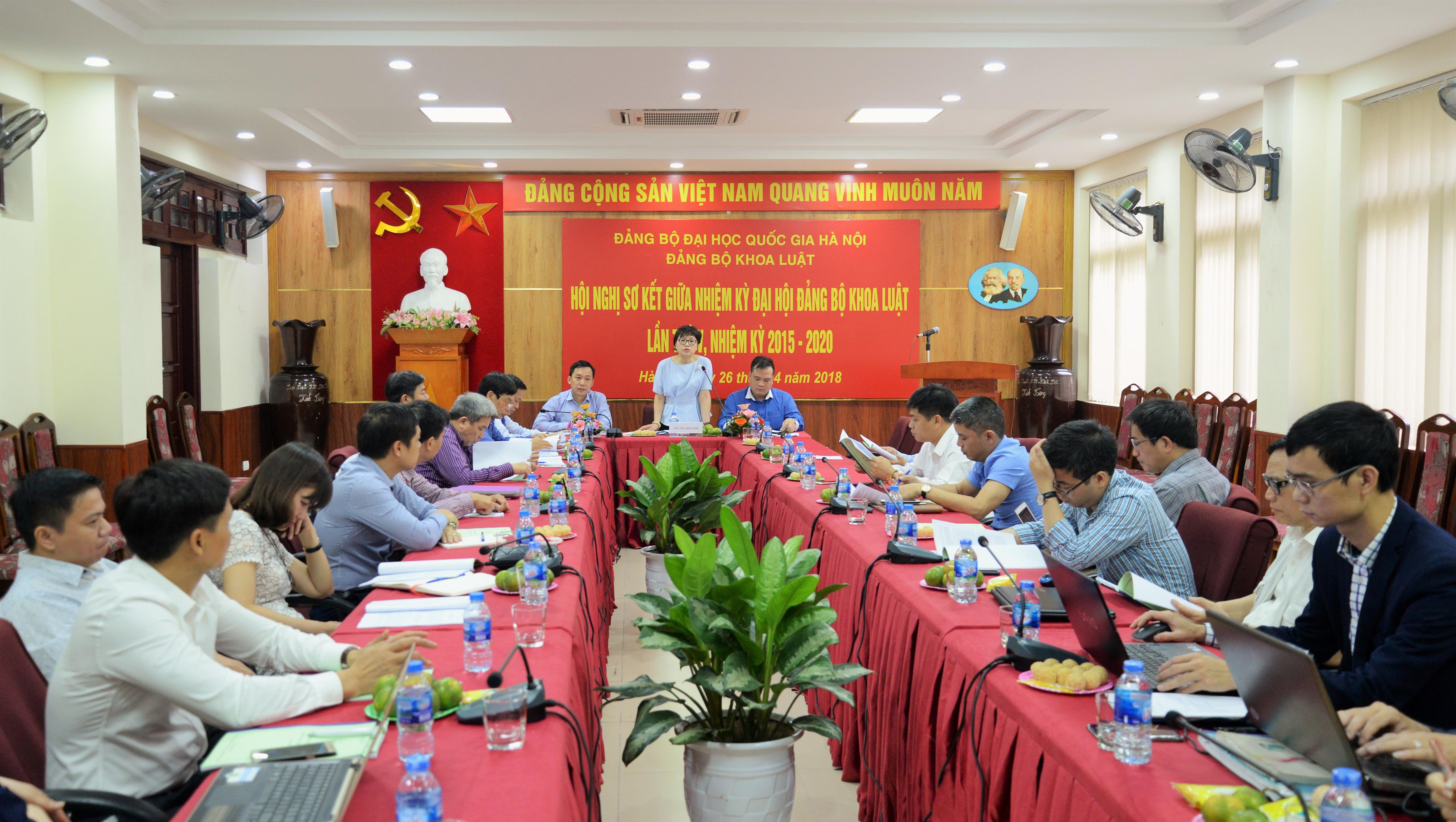 Ngày 26/4/2018, Đảng bộ Khoa Luật đã tổ chức Hội nghị sơ kết giữa nhiệm kỳ Đại hội Đảng bộ Khoa Luật lần thứ V, nhiệm kỳ 2015 – 2020. Tới dự Hội nghị có Đ/c Nguyễn Hữu Đức – Phó Bí thư Thường trực Đảng ủy, Phó Giám đốc Đại học Quốc gia Hà Nội (ĐHQGHN), Đ/c Vũ Văn Thắng – Chánh Văn phòng Đảng ủy ĐHQGHN, Đ/c Đoàn Văn Cường – Phó Trưởng Ban tổ chức Đảng ủy ĐHQGHN; Về phía Khoa Luật có Đ/c Nguyễn Thị Quế Anh – Bí thư Đảng ủy, Chủ nhiệm Khoa Luật, Đ/c Trịnh Tiến Việt – Phó Bí thư Đảng ủy, Phó Chủ nhiệm Khoa, Đ/c Nguyễn Trọng Điệp – Đảng ủy viên, Phó Chủ nhiệm Khoa cùng các đ/c trong Đảng ủy Khoa Luật, các đ/c là cán bộ chủ chốt của Khoa.
