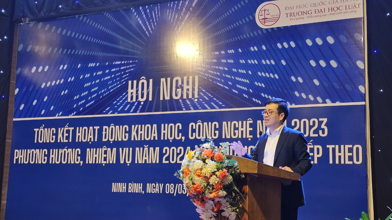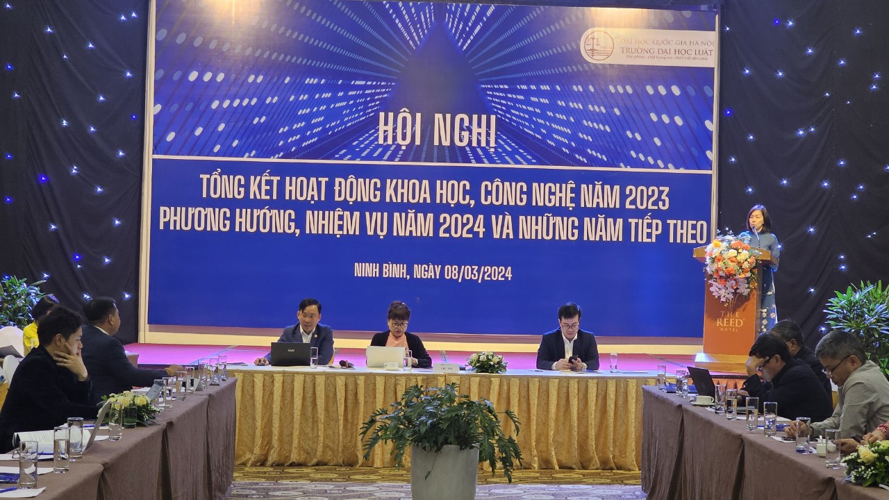 Nhằm tổng kết, đánh giá những kết quả đạt được của hoạt động Khoa học và Công nghệ năm 2023 và thảo luận phương hướng, nhiệm vụ trọng tâm năm 2024 và các năm tiếp theo, ngày 8/3/2024, Trường Đại học Luật, Đại học Quốc gia Hà Nội (ĐHQGHN) đã tổ chức Hội nghị tổng kết hoạt động khoa học, Công nghệ năm 2023, phương hướng, nhiệm vụ năm 2024 và những năm tiếp theo tại Ninh Bình.