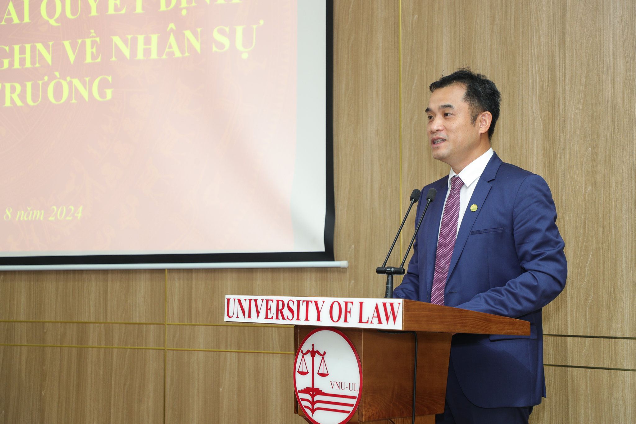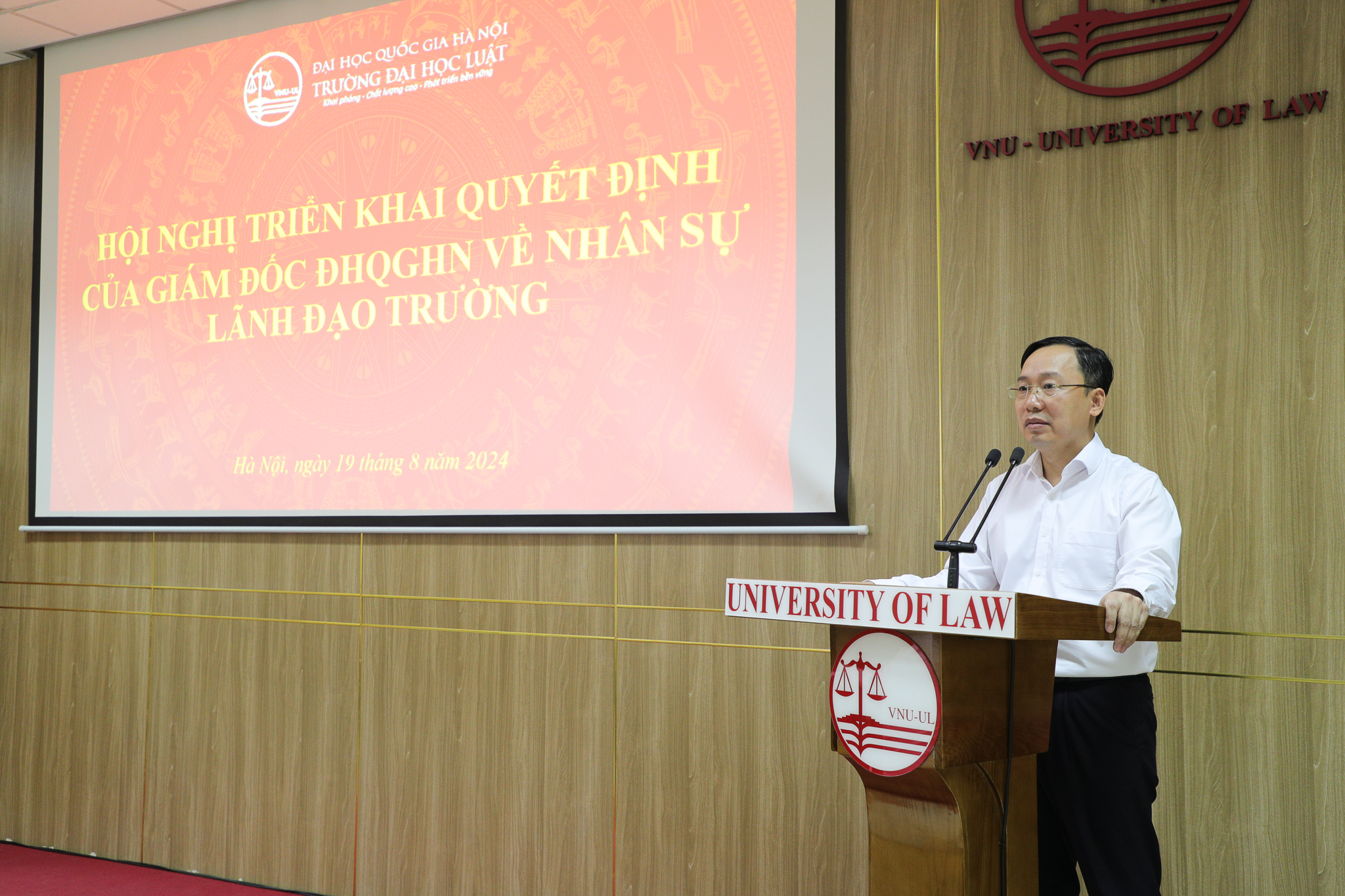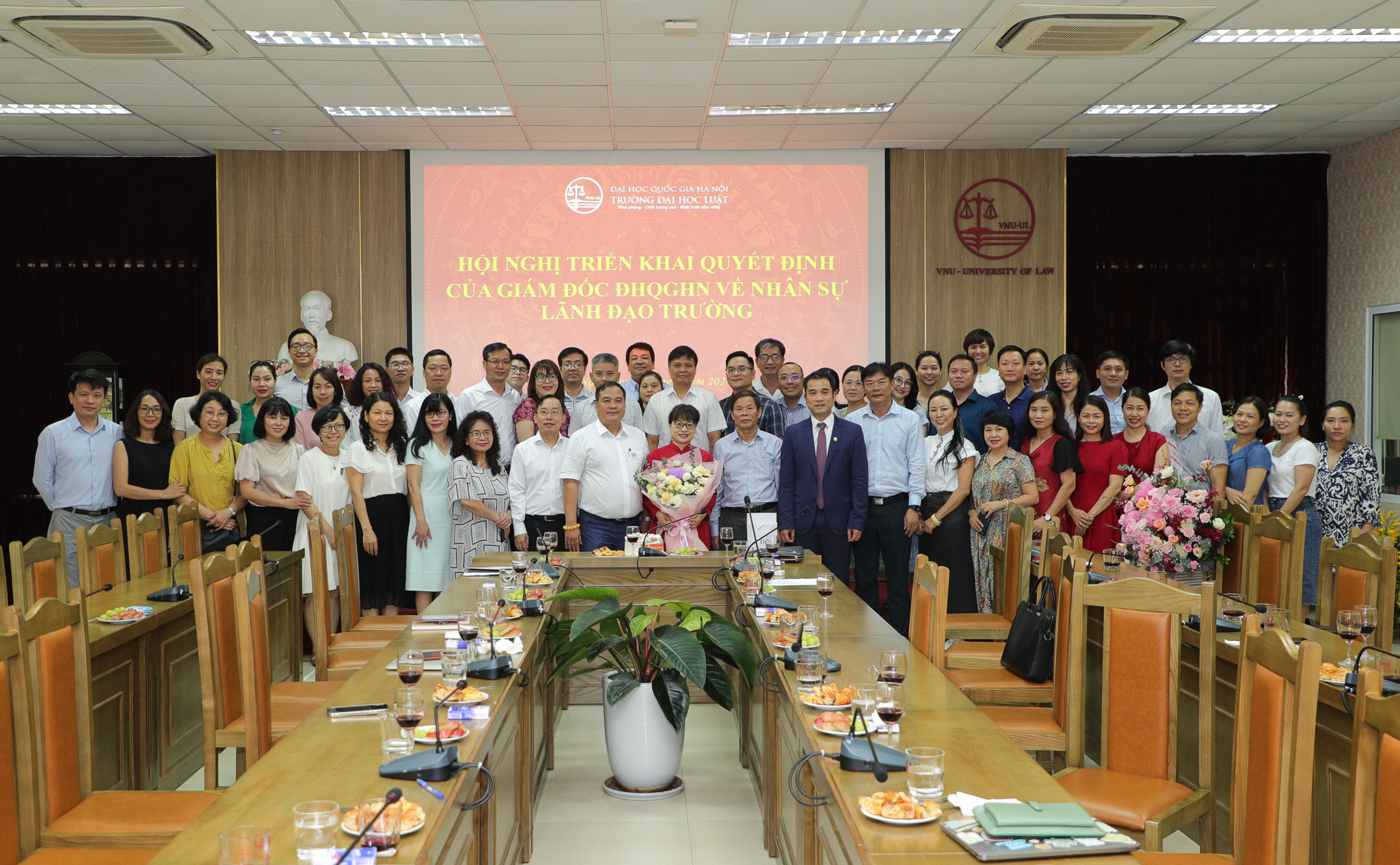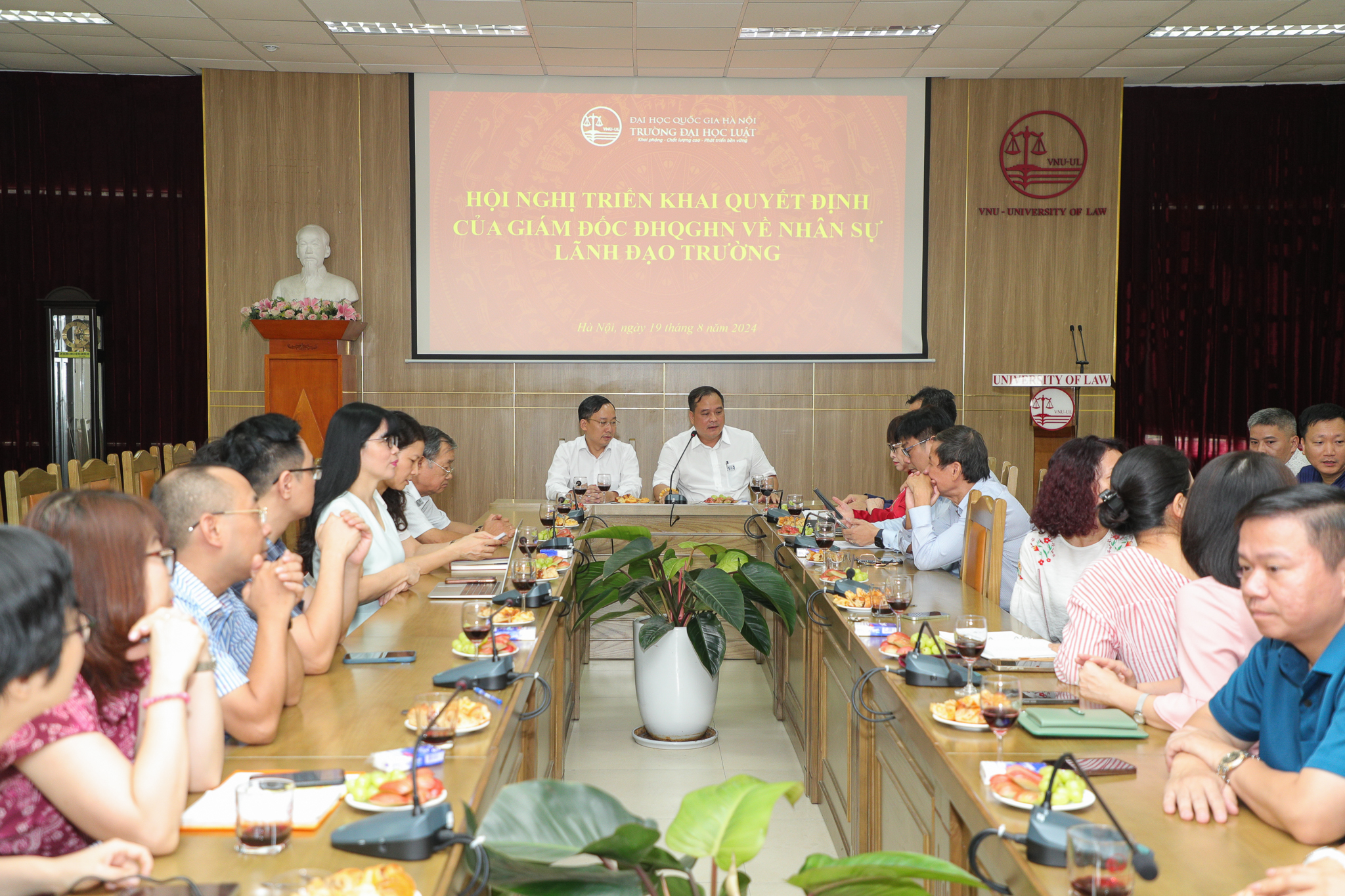 Sáng 19/8/2024, Trường Đại học Luật, ĐHQGHN tổ chức Hội nghị triển khai Quyết định của Giám đốc ĐHQGHN về nhân sự lãnh đạo Trường.