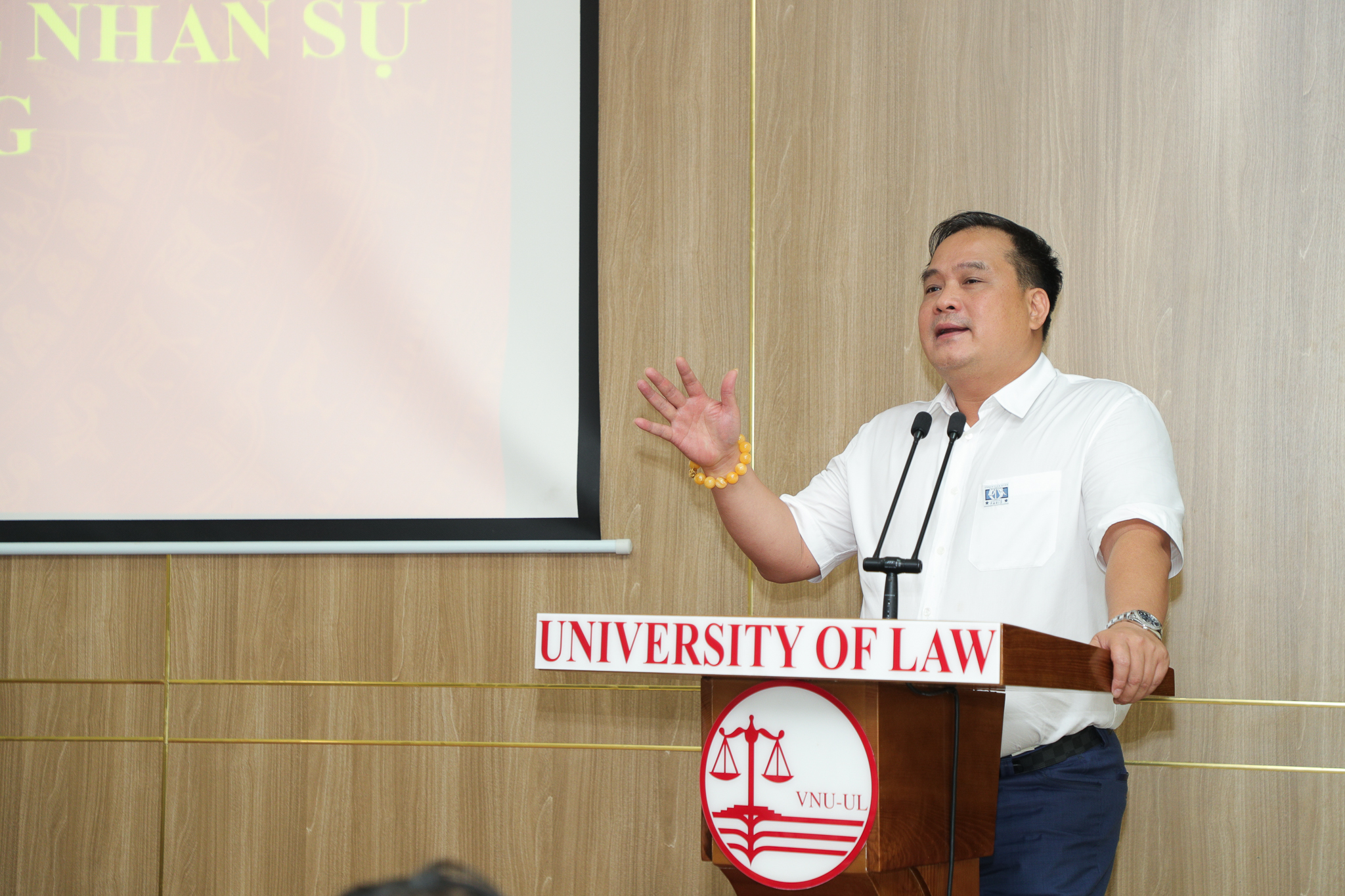 Cũng tại Hội nghị, Phó Giám đốc chúc mừng PGS.TS Trịnh Tiến Việt trên cương vị phụ trách Trường. Phó Giám đốc hi vọng đồng chí sẽ tiếp tục phát huy giá trị truyền thống của nhà trường và lấy yếu tố đoàn kết làm hạt nhân thúc đẩy phát triển mọi mặt; quan tâm phát triển đội ngũ cán bộ, thu hút nguồn nhân lực chất lượng cao, đặc biệt đội ngũ nhà khoa học trẻ xuất sắc về công tác; nâng cao đổi mới chất lượng đào tạo nghiên cứu lĩnh vực luật, nhằm phục vụ hội nhập quốc tế, góp phần xây dựng nền kinh tế đất nước phát triển giàu mạnh; thúc đẩy phát triển lĩnh vực khoa học, công nghệ, đổi mới sáng tạo, các sản phẩm gắn với thực tiễn nhu cầu của xã hội, xây dựng nhà nước pháp quyền trong thời đại mới; đẩy mạnh hợp tác trao đổi học thuật với các đối tác doanh nghiệp, trường đại học trong và ngoài nước.