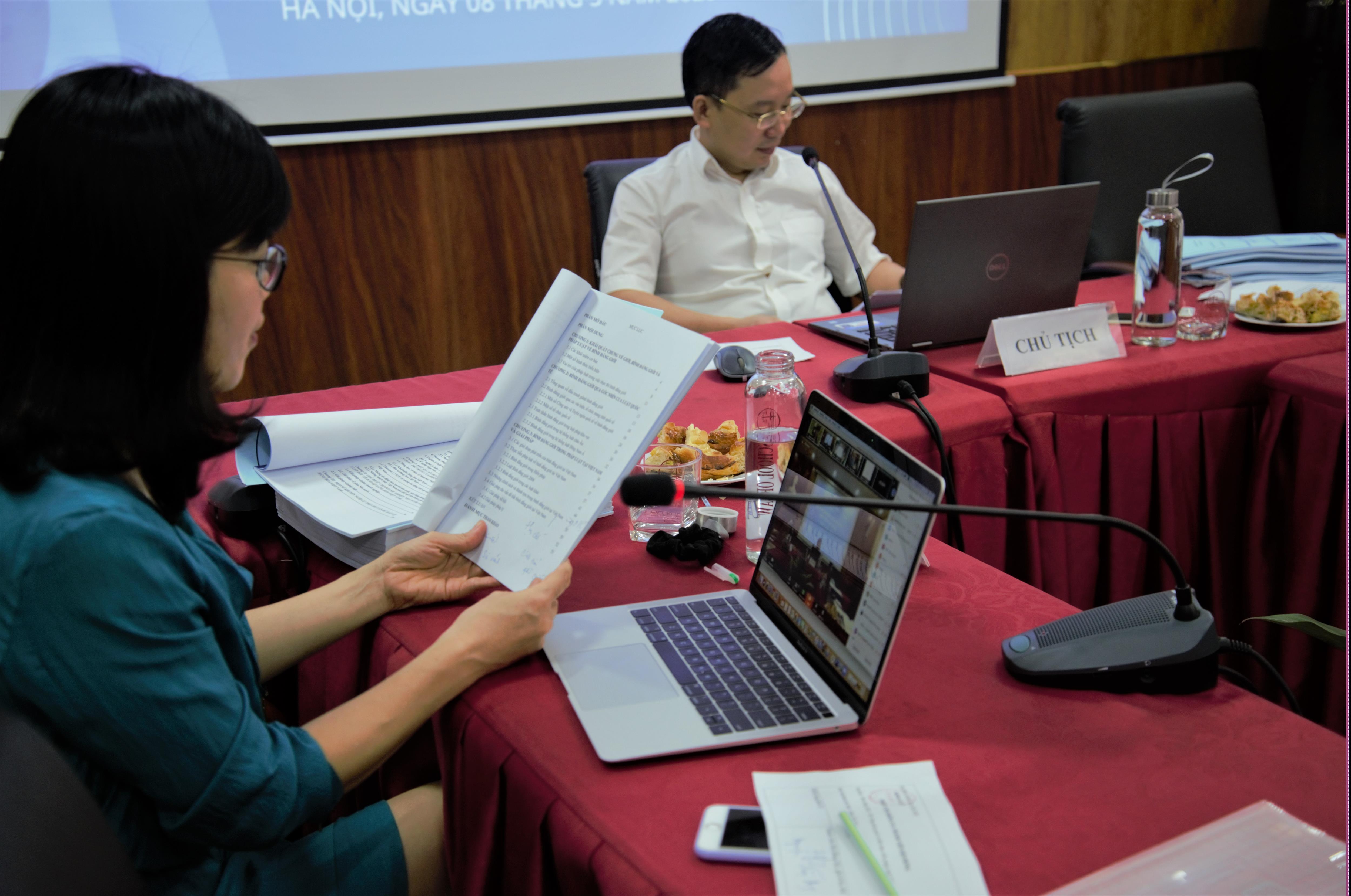 Tham gia Hội đồng chấm báo cáo NCKH sinh viên năm học 2019 – 2020 có PGS.TS. Trịnh Tiến Việt – Chủ tịch Hội đồng và 06 ủy viên là PGS.TS. Nguyễn Hoàng Anh, PGS.TS. Lê Thị Hoài Thu, PGS.TS. Đặng Minh Tuấn, PGS.TS. Nguyễn Lan Nguyên, TS. Nguyễn Bích Thảo, TS. Lê Lan Chi và TS. Mai Văn Thắng.