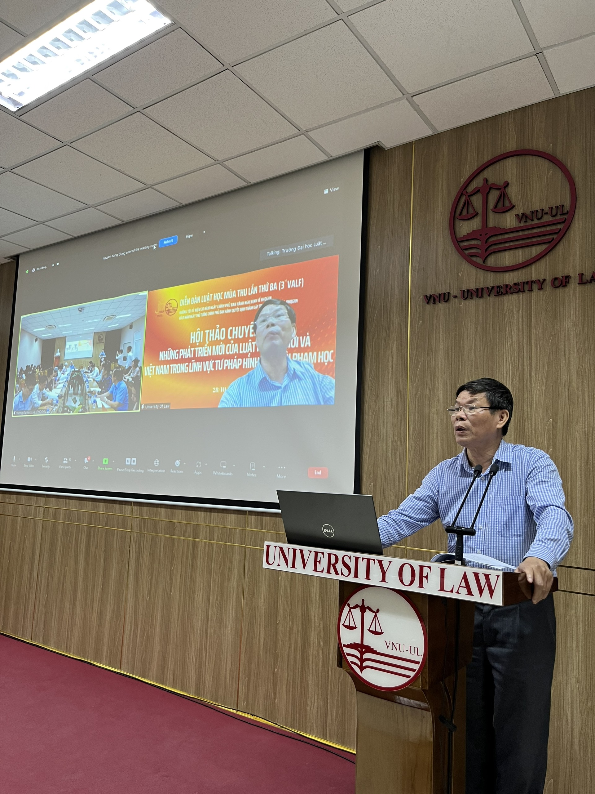 Sáng ngày 28/10/2023, Trường ĐH Luật, ĐHQGHN tổ chức Hội thảo chuyên đề số 4 “Những phát triển mới của luật học thế giới và Việt Nam trong lĩnh vực tư pháp hình sự và tội phạm học” trong khuôn khổ Diễn đàn Luật học mùa thu lần thứ III tại Hội trường 703-E1.