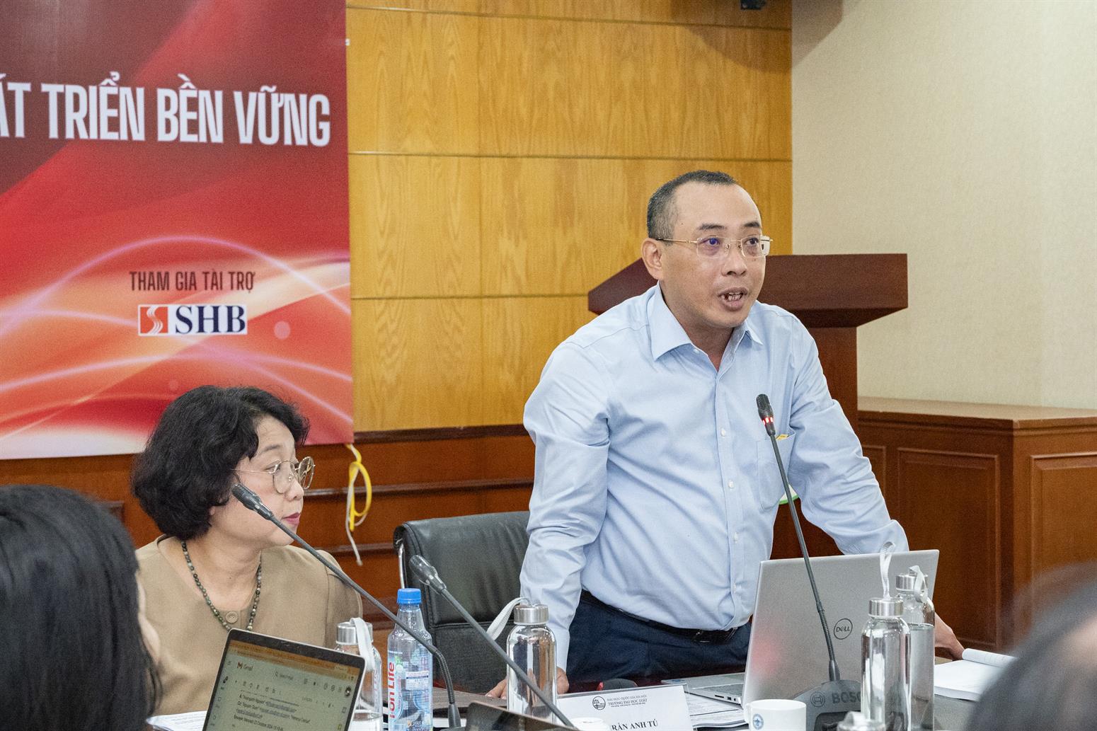 Hội thảo có sự tham gia và chủ trì của PGS.TS. Phan Thị Thanh Thuỷ (Chủ nhiệm Khoa Luật Kinh doanh) & TS. Trần Anh Tú (Phó Chủ nhiệm Khoa Luật Kinh doanh)
