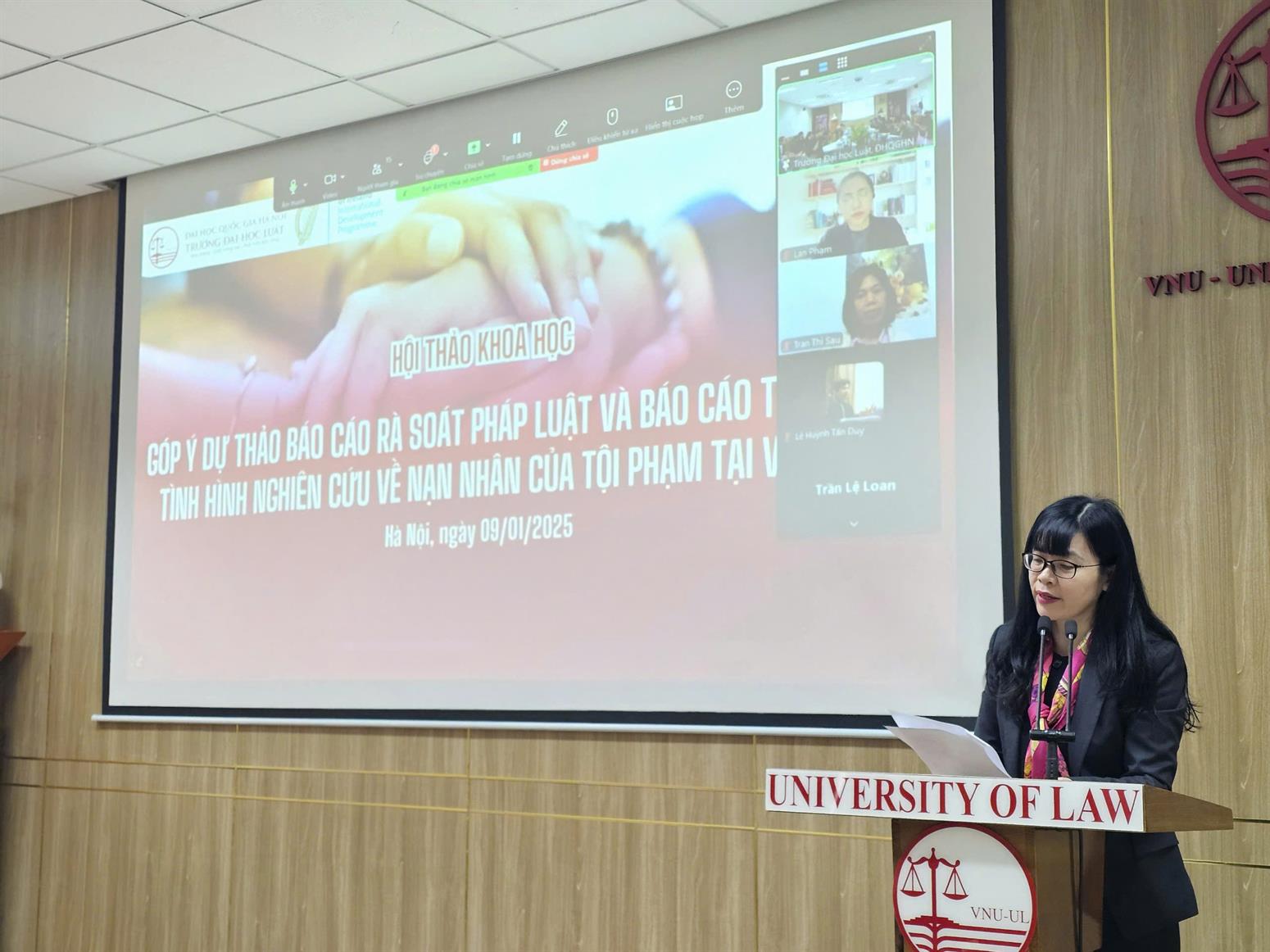Trong khuôn khổ Dự án “Nâng cao năng lực nghiên cứu, giảng dạy Nạn nhân học trong chương trình đào tạo của Trường Đại học Luật, Đại học Quốc gia Hà Nội” do Sứ quán Cộng hoà Ireland tại Việt Nam tài trợ, ngày 9/1/2025, Trường Đại học Luật, Đại học Quốc gia Hà Nội đã tổ chức Hội thảo khoa học: “Góp ý dự thảo Báo cáo đánh giá pháp luật và Báo cáo tổng quan tình hình nghiên cứu về nạn nhân của tội phạm tại Việt Nam”.