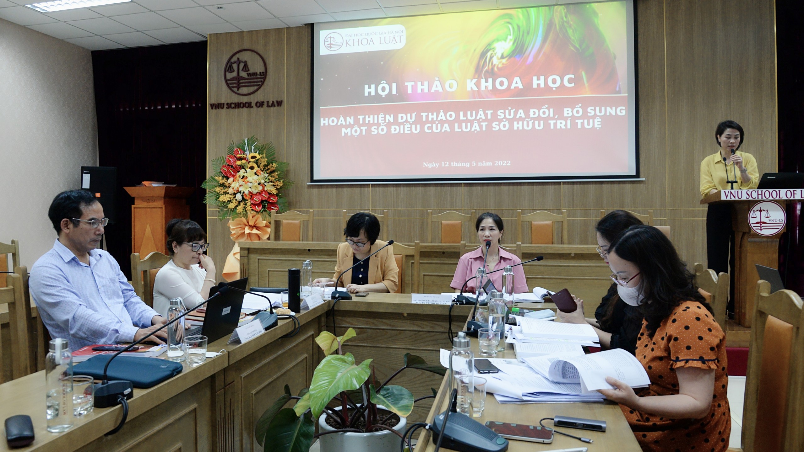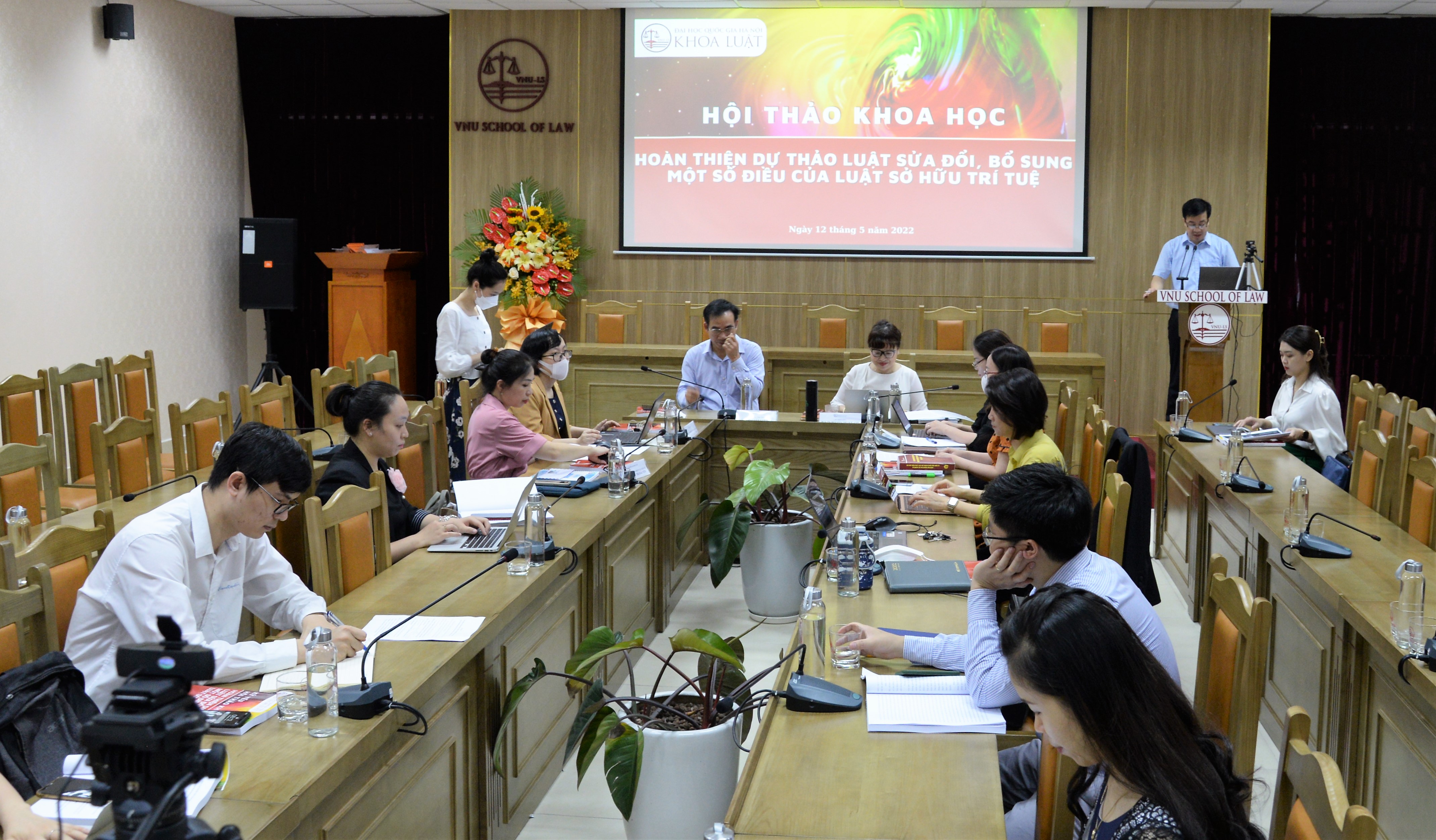 Với tinh thần và trách nhiệm xã hội của một trung tâm đào tạo, nghiên cứu luật uy tín, bề dày truyền thống và với mong muốn đóng góp tích cực hơn nữa cho Đảng, Nhà nước trong việc hoàn thiện pháp luật về sở hữu trí tuệ, ngày 12/5/2022, Khoa Luật, Đại học Quốc gia Hà Nội (ĐHQGHN) đã tổ chức Hội thảo khoa học với chủ đề “Hoàn thiện Dự thảo Luật sửa đổi, bổ sung một số điều của Luật Sở hữu trí tuệ”. Hội thảo được tổ chức bằng cả hai hình thức trực tiếp tại Hội trường và trực tuyến qua nền tảng Zoom.