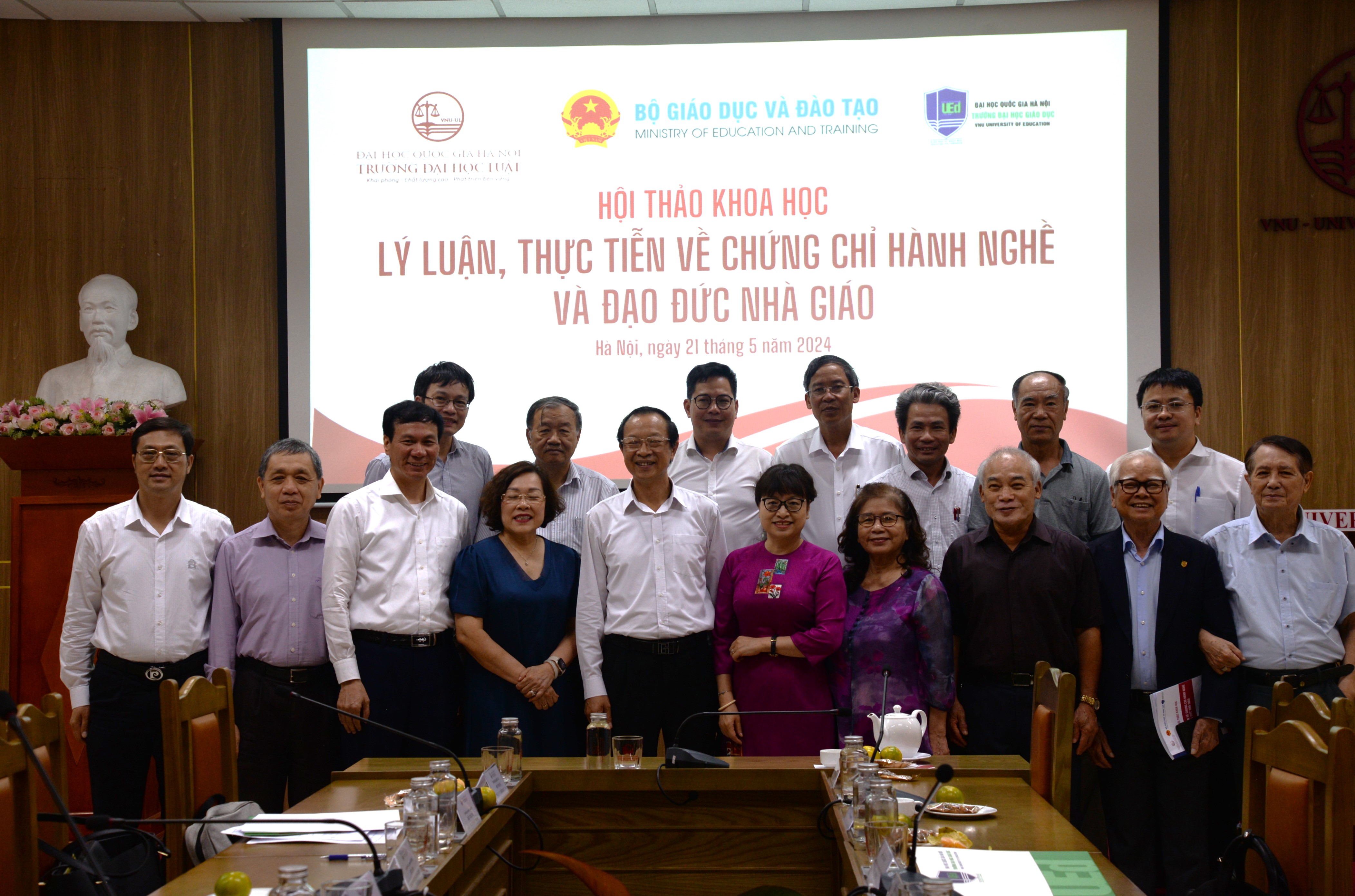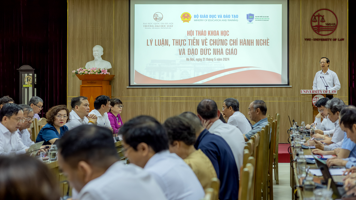 Ngày 21/5/2024, Trường Đại học Luật, ĐHQGHN, Cục Nhà giáo và Cán bộ quản lý giáo dục, Bộ Giáo dục và Đào tạo (GD&ĐT) và Trường Đại học Giáo dục, ĐHQGHN đã phối hợp tổ chức Hội thảo khoa học “Lý luận, thực tiễn về chứng chỉ hành nghề và đạo đức nhà giáo”.