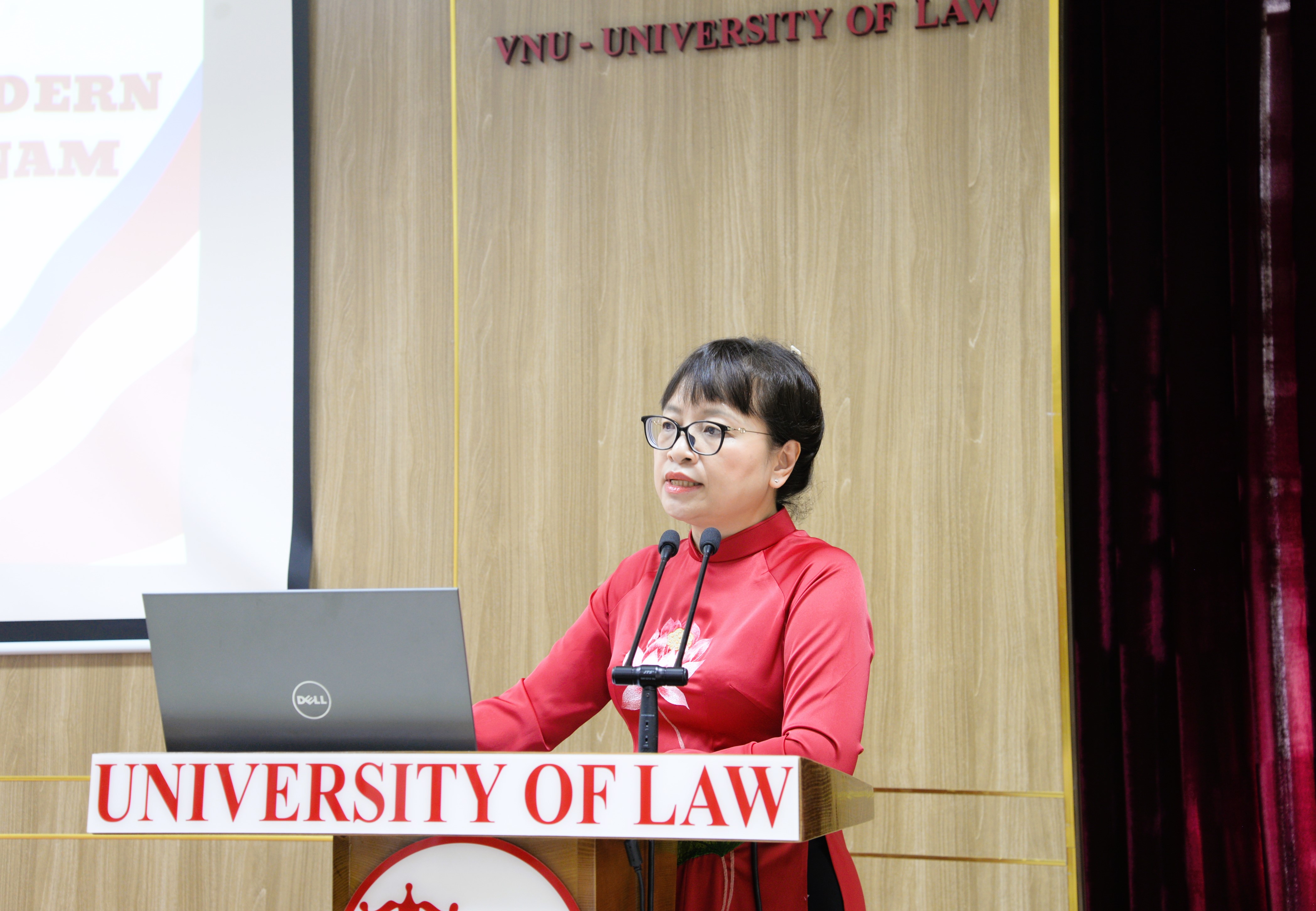 Phát biểu chào mừng Hội thảo, lời đầu tiên, PGS.TS Nguyễn Thị Quế Anh bày tỏ lòng cảm ơn và chào mừng tới các học giả trên thế giới và Việt Nam đã có mặt tại Trường Đại học Luật, ĐHQGHN tham dự Hội thảo khoa học quốc tế “Ảnh hưởng của mô hình pháp luật Xô Viết tới hệ thống pháp luật hiện đại của Nga, Trung Quốc và Việt Nam”. Nhận định về chủ đề Hội thảo, Hiệu trưởng cho biết “Mô hình pháp luật Xô viết ra đời và phát triển ở Liên Xô cũ, sau đó du nhập và có ảnh hưởng lớn trong hệ thống các nhà nước xã hội chủ nghĩa lúc bấy giờ. Cho tới tận ngày nay, mô hình pháp luật Xô viết vẫn tiếp tục có ảnh hưởng đến hệ thống pháp luật hiện đại của Việt Nam, Nga và Trung Quốc. Nó đã tác động đến xu thế phát triển của pháp luật trong bối cảnh toàn cầu hóa, hội nhập và đổi mới ở các quốc gia này. Việc so sánh và nghiên cứu các hệ thống pháp luật đã tiếp nhận hoặc ảnh hưởng từ pháp luật Xô Viết có ý nghĩa rút ra bài học kinh nghiệm cho Nga, Trung Quốc và Việt Nam, đồng thời đóng góp cho nghiên cứu về du nhập pháp luật và cải cách pháp luật nói chung”.