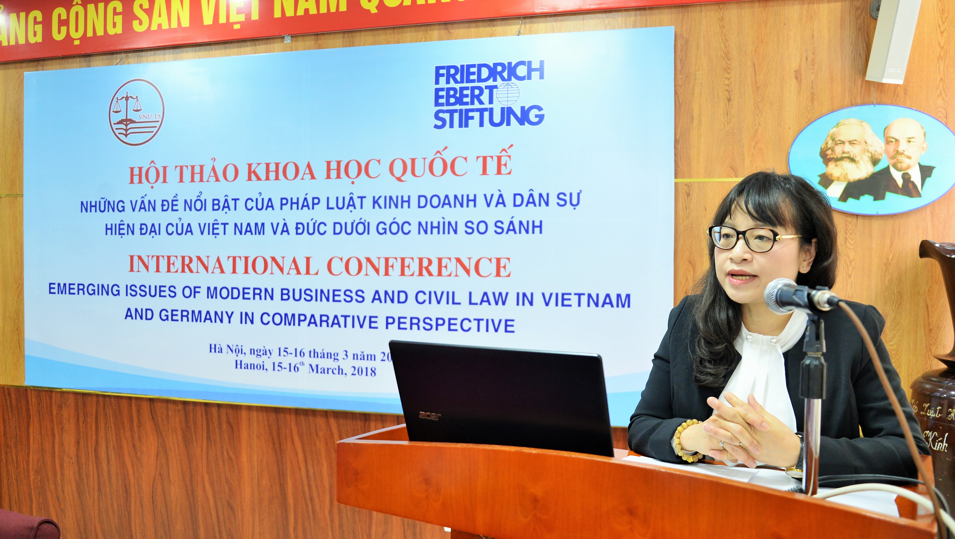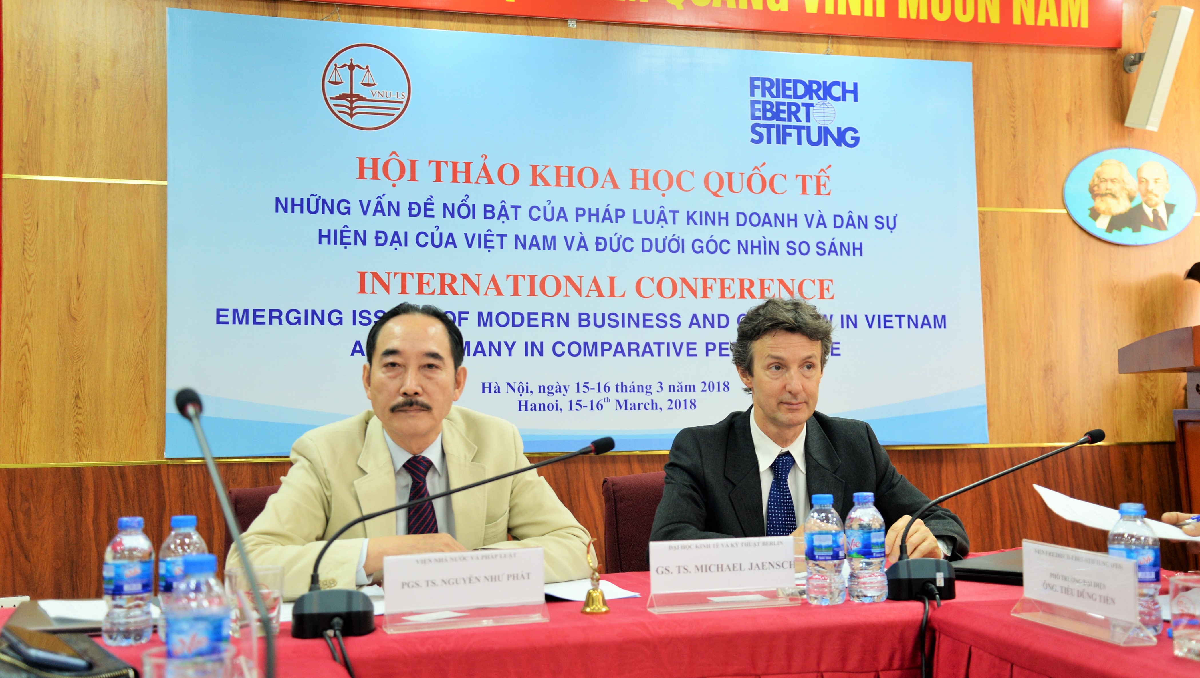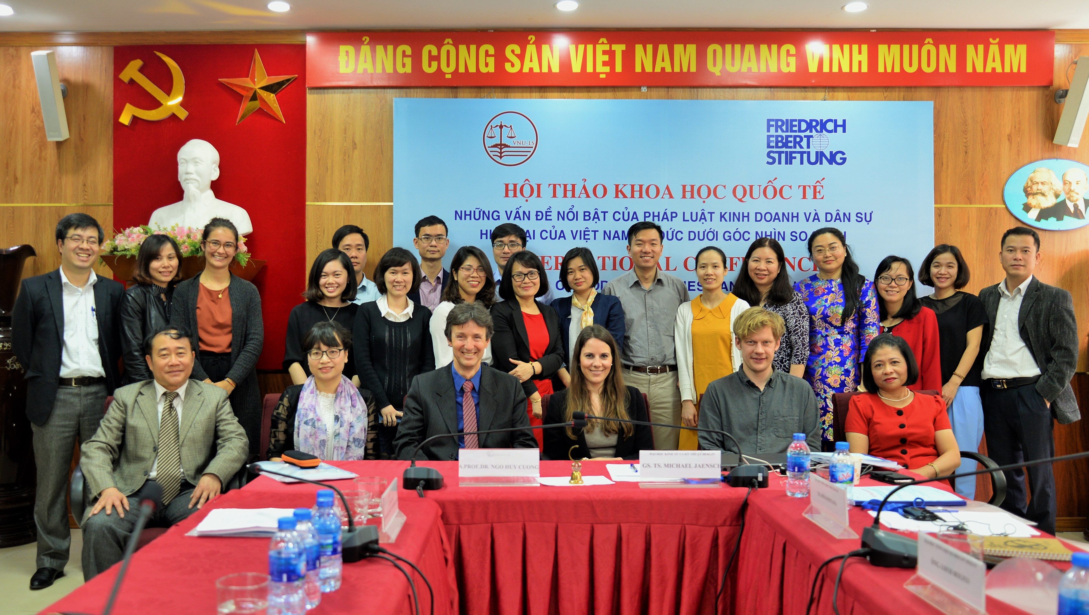 Thực hiện chủ trương tăng cường hợp tác quốc tế về học thuật để nâng cao chất lượng giảng dạy và nghiên cứu khoa học, ngày 15,16/3/2018 Khoa Luật đã phối hợp với Viện Friedrich Ebert Stiftung (FES) CHLB Đức tổ chức Hội thảo khoa học quốc tế “Những vấn đề nổi bật của pháp luật kinh doanh và dân sự hiện đại của Việt Nam và Đức dưới góc nhìn so sánh”.