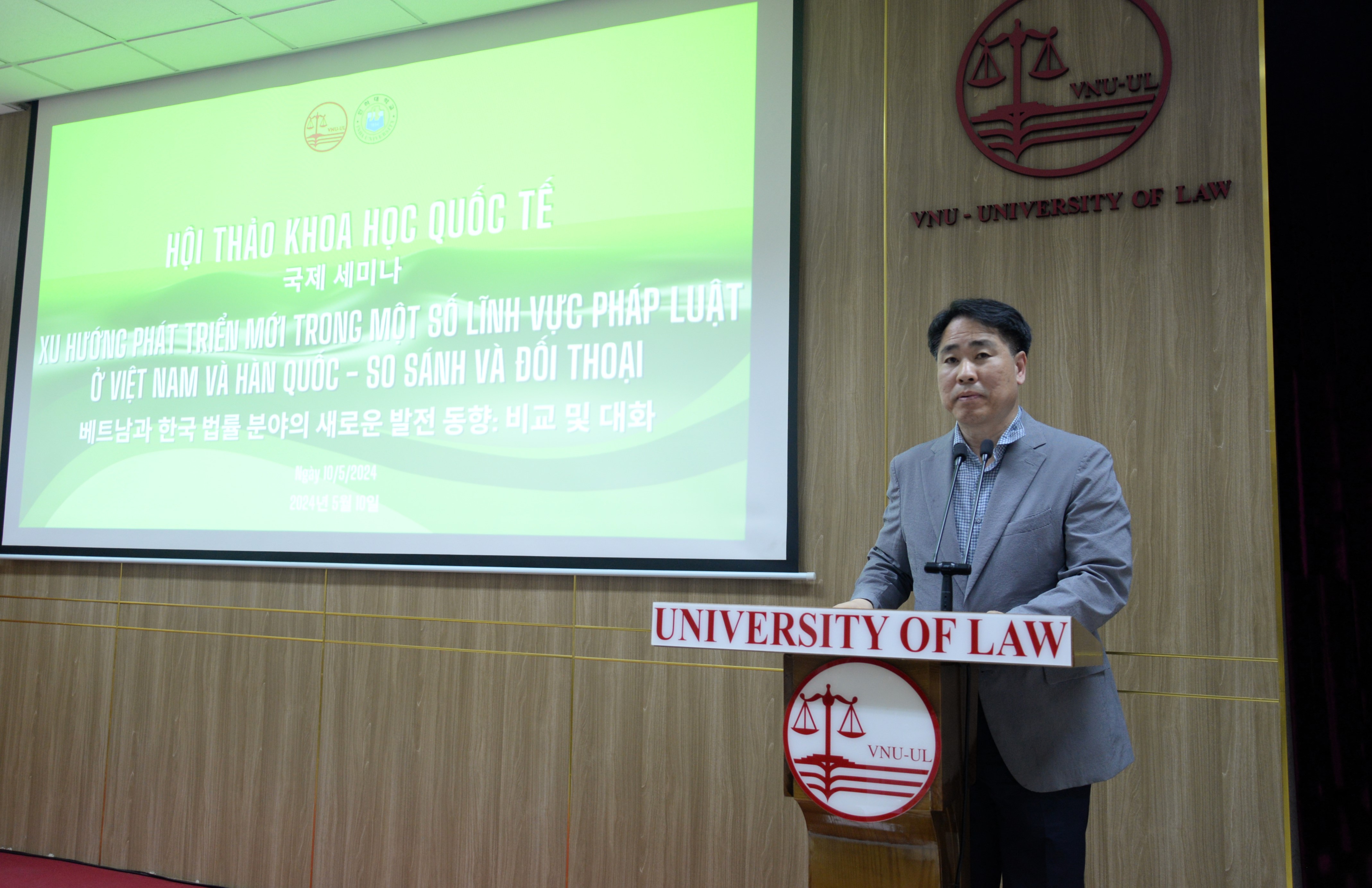 Đại diện Trường Luật, Đại học Inha, GS. Jung Young Jin cho biết: “Ông ấn tượng với sự phát triển mạnh mẽ của Việt Nam trong những năm vừa qua, và tin tưởng rẳng Việt Nam sẽ sớm đạt được những mục tiêu phát triển vào năm 2045. Về Hội thảo khoa học quốc tế lần này, ông cho biết nhiều công ty Hàn Quốc đầu tư tại Việt Nam vẫn chưa có sự hiểu biết cần thiết về pháp luật, hệ thống pháp luật Việt Nam, do đó, ông kỳ vọng Hội thảo lần này sẽ tạo cơ hội cho các chuyên gia 02 nước trao đổi học thuật, từ đó học hỏi kinh nghiệm xây dựng pháp luật cũng như truyền tải kiến thức pháp luật cần thiết đến doanh nghiệp, người dân trong bối cảnh Việt Nam và Hàn Quốc đang hợp tác mạnh mẽ trên nhiều lĩnh vực.