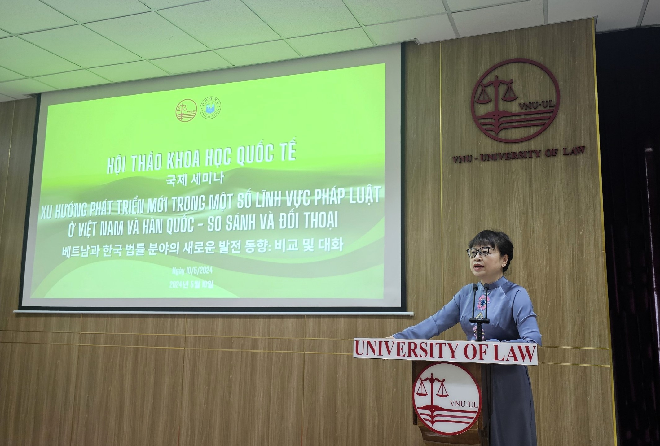 Phát biểu mở đầu Hội thảo, PGS.TS. Nguyễn Thị Quế Anh cho biết Trường Đại học Luật, ĐHQGHN, trước kia là Khoa Luật ĐHQGHN, đã có dịp hợp tác với Trường Luật, Đại học Inha trong một số sự kiện. Lần này, hai bên phối hợp tổ chức hội thảo khoa học quốc tế về xu hướng phát triển của một số lĩnh vực pháp luật. Bà cho biết thêm, Đại học Inha có nhiều thế mạnh về nghiên cứu công nghệ, trong khi đó, Trường ĐH Luật đang có những định hướng nghiên cứu về các lĩnh vực pháp luật trong thời đại mới, do đó sự hợp tác giữa hai bên sẽ mang lại tiền đề cho sự phát triển bền vững, hiệu quả trong bối cảnh mới.