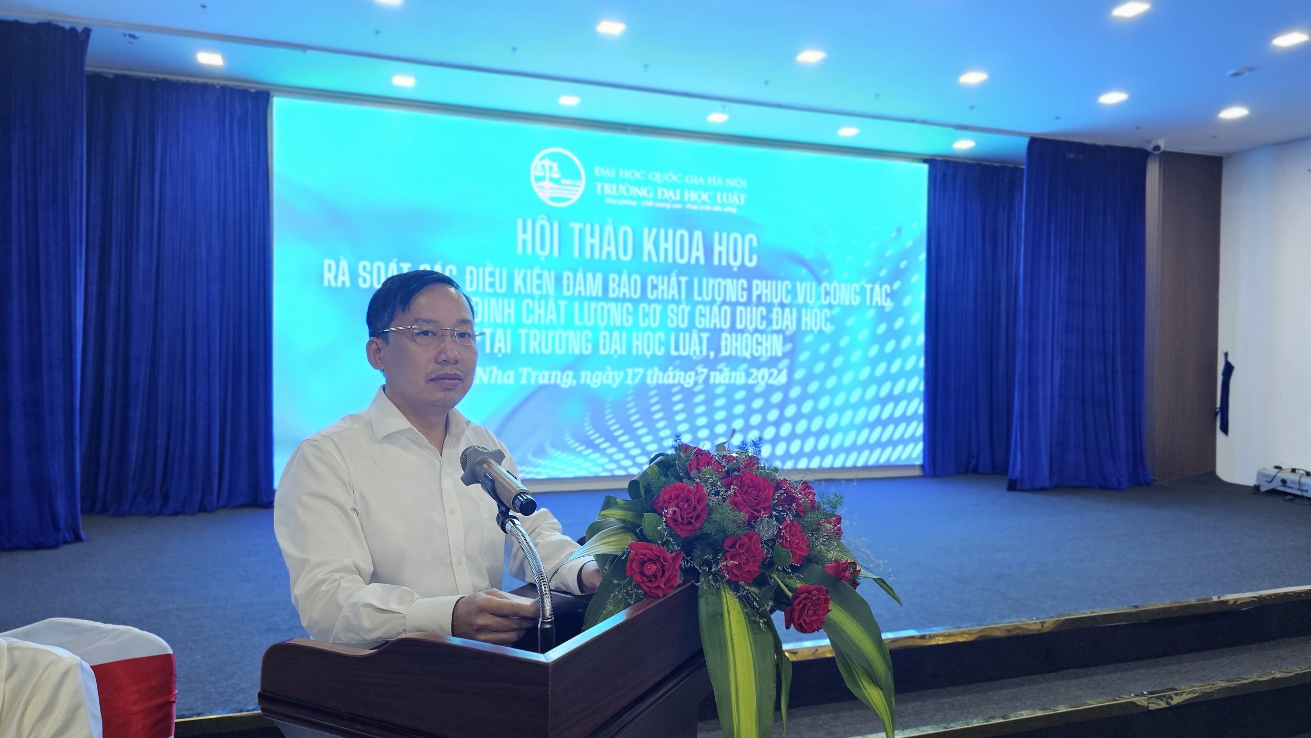 Phát biểu tại Hội thảo, PGS.TS. Trịnh Tiến Việt – Phó Hiệu trưởng nhà trường cho biết việc kiểm định chất lượng cơ sở giáo dục đại học đối với Trường Đại học Luật, ĐHQGHN ở thời điểm hiện nay là rất cần thiết nhằm đáp ứng yêu cầu của Luật giáo dục đại học, và được xem là một nhiện vụ trong tâm của Đơn vị.