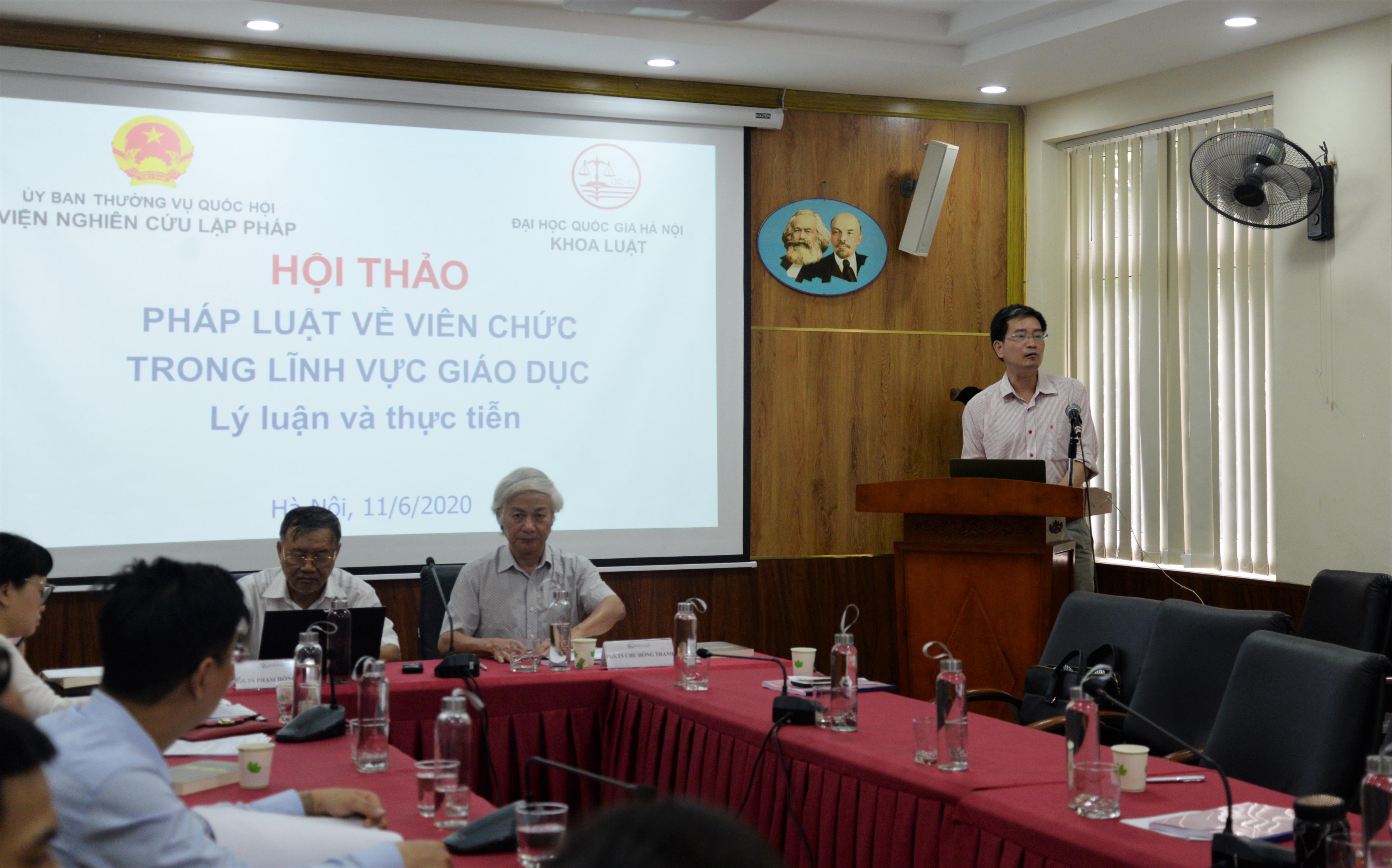 Trong bối cảnh giáo dục và đào tạo nhận được sự quan tâm, tạo điều kiện của Đảng và Nhà nước cho việc xây dựng, hoàn thiện hệ thống văn bản quy phạm pháp luật về quản lý viên chức giáo dục. Đồng thời việc đổi mới công tác quản lý và nâng cao chất lượng đội ngũ viên chức giáo dục đang là đòi hỏi bức thiết của xã hội trong giai đoạn hiện nay. Ngày 11/6/2020, Khoa Luật, Đại học Quốc gia Hà Nội tổ chức Hội thảo “Pháp luật về viên chức trong lĩnh vực giáo dục: Thực trạng và giải pháp”.