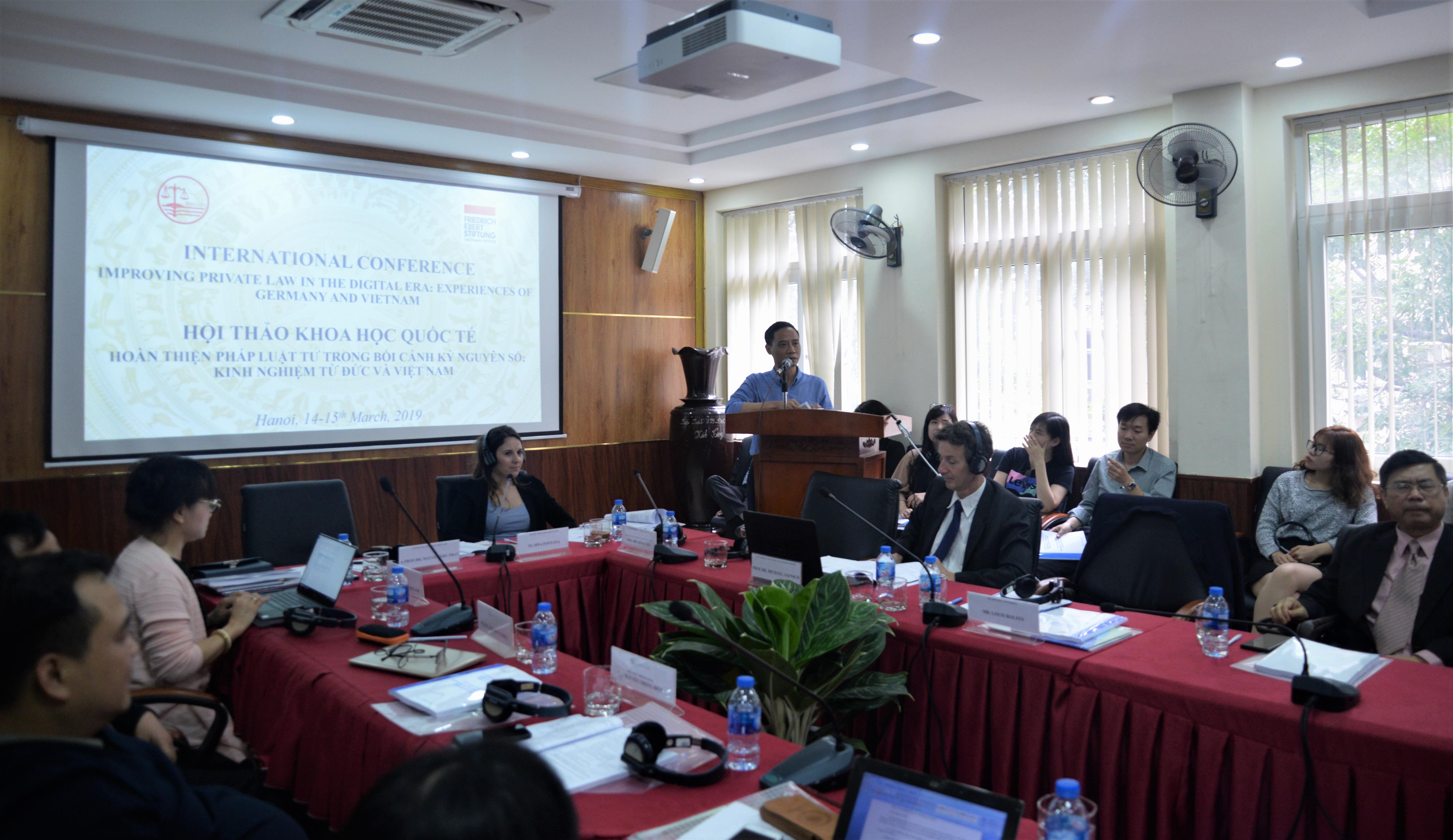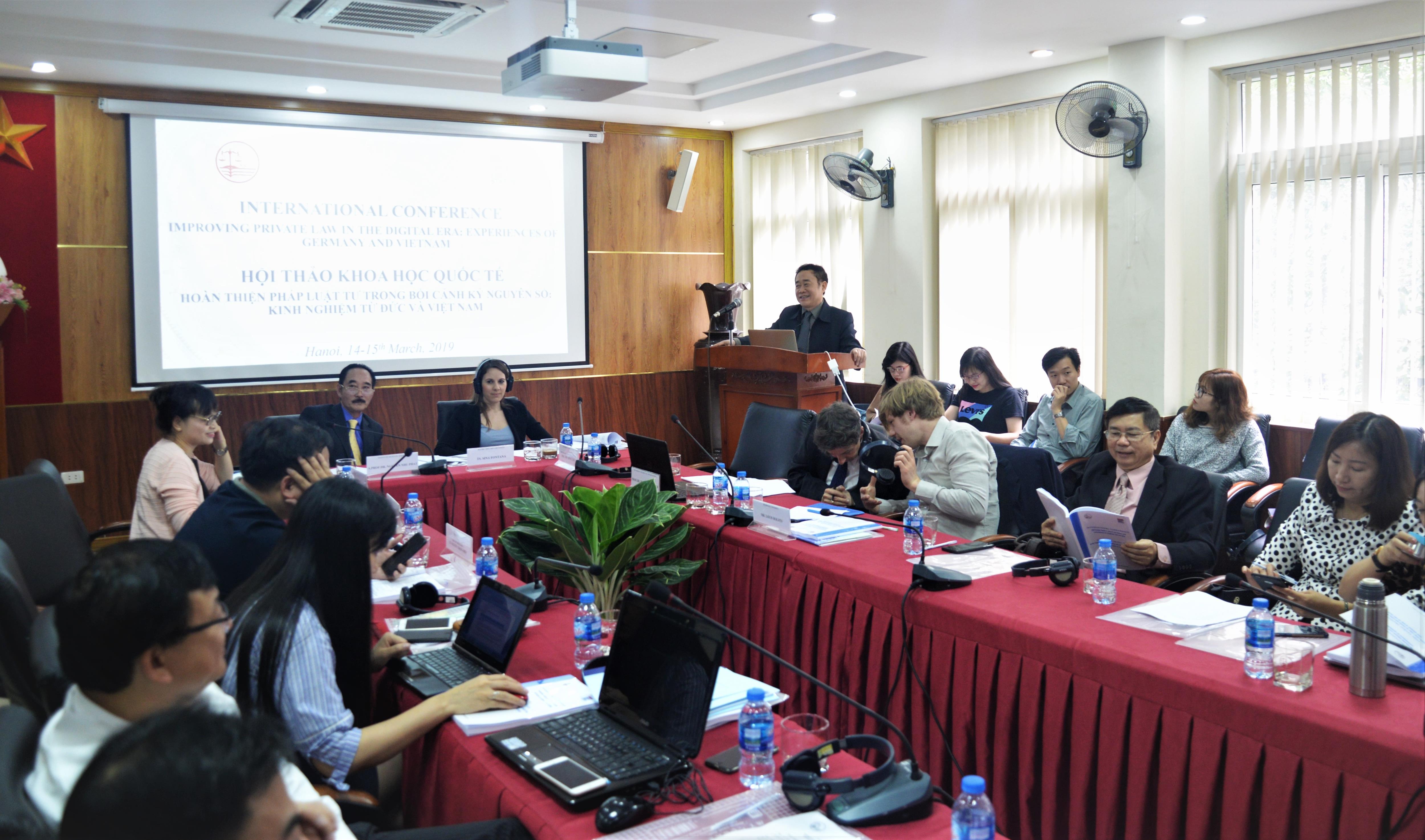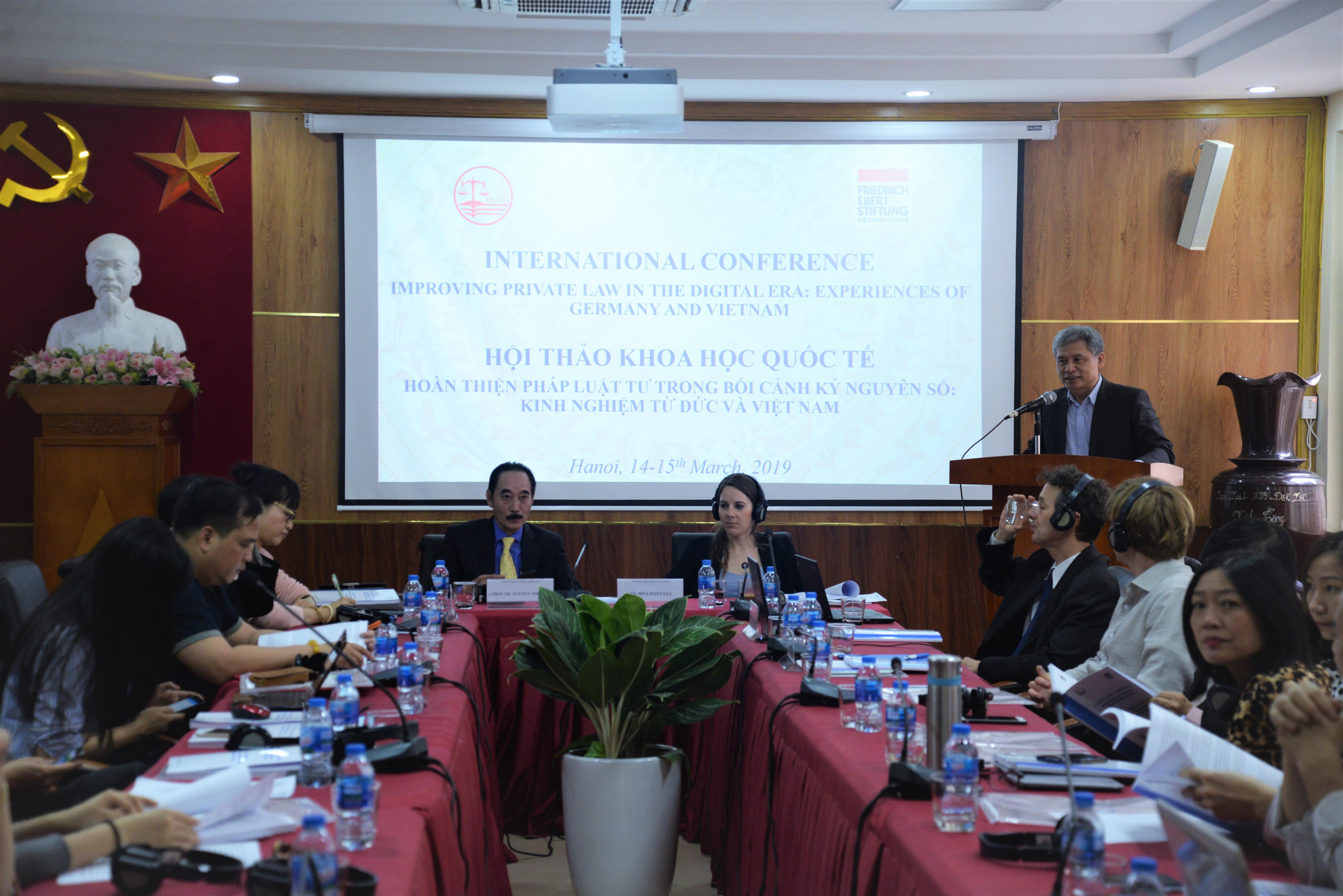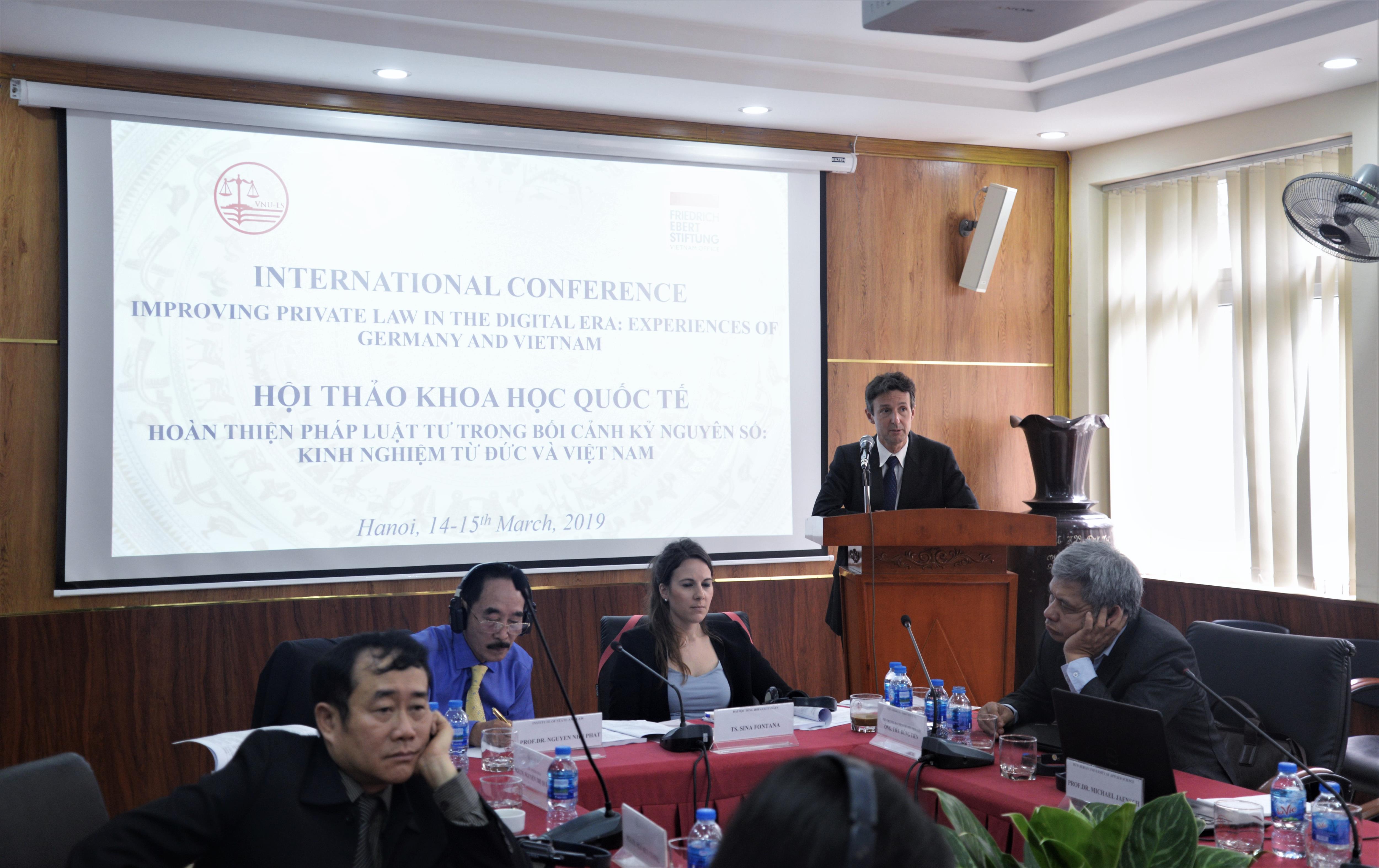 Ngày 14,15/3/2019, tại Khoa Luật, Đại học Quốc gia Hà Nội (ĐHQGHN) đã diễn ra Hội thảo quốc tế “Hoàn thiện pháp luật tư trong bối cảnh kỷ nguyên số: kinh nghiệm của Đức và Việt Nam”. Hội thảo được phối hợp tổ chức bởi Khoa Luật,ĐHQGHN với Viện Fiedrich Ebert Stiftung (FES).