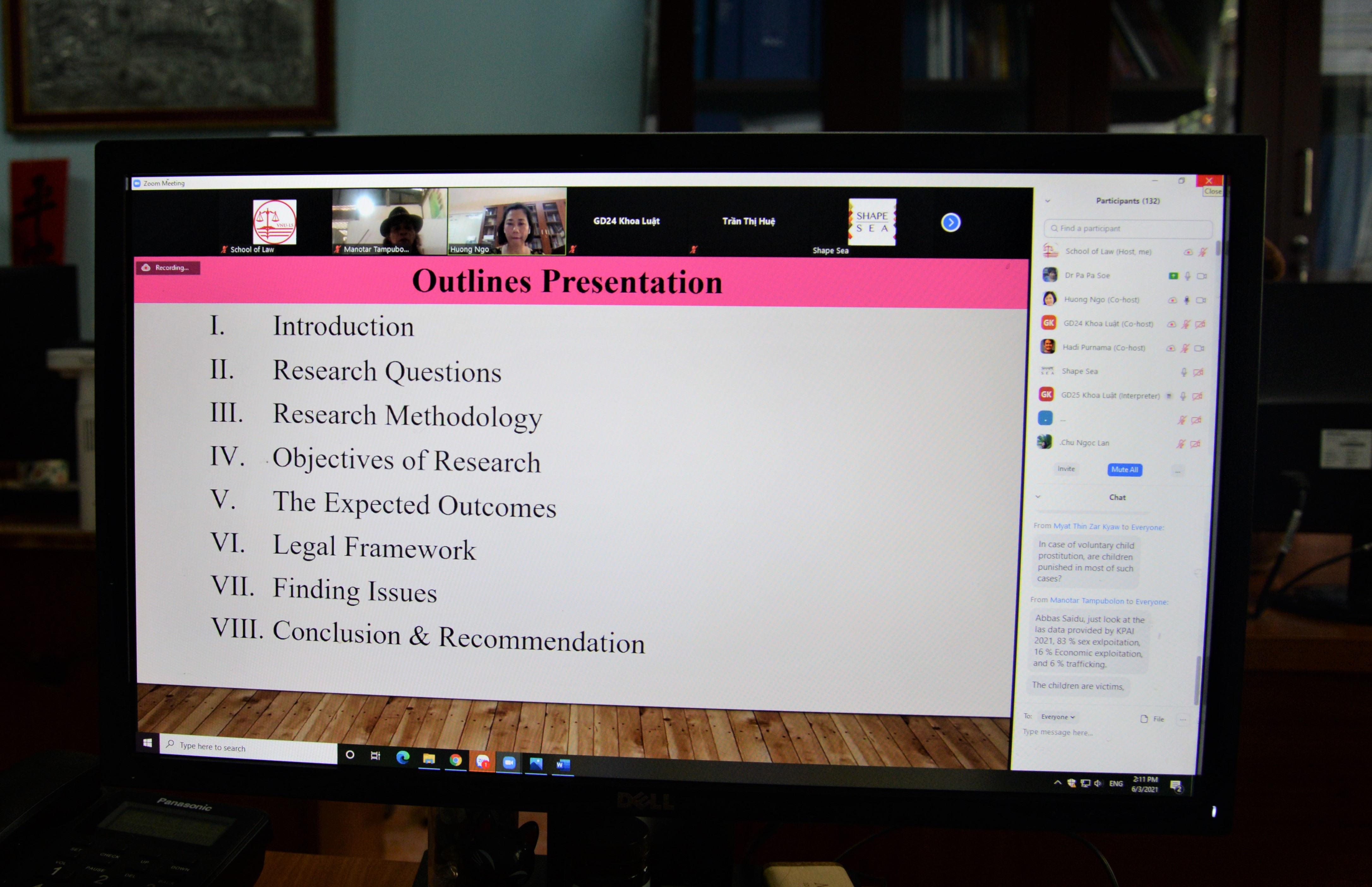 Trong hai ngày 3 – 4/6/2021, Khoa Luật, Đại học Quốc gia Hà Nội (ĐHQGHN) phối hợp cùng phối hợp với Tổ chức Lao động Quốc tế tại Hà Nội (ILO Hà Nội), Chương trình thúc đẩy nghiên cứu và giáo dục về nhân quyền và hòa bình tại ASEAN/Đông Nam Á (SHAPE-SEA) và Mạng lưới nghiên cứu nhân quyền Đông Nam Á (SEARHN) tổ chức Hội thảo quốc tế trực tuyến “Phòng chống lao động trẻ em ở Đông Nam Á”.