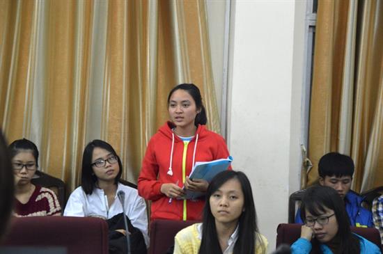 Một trong số các sinh viên ngành luật học tham gia đặt câu hỏi thảo luận