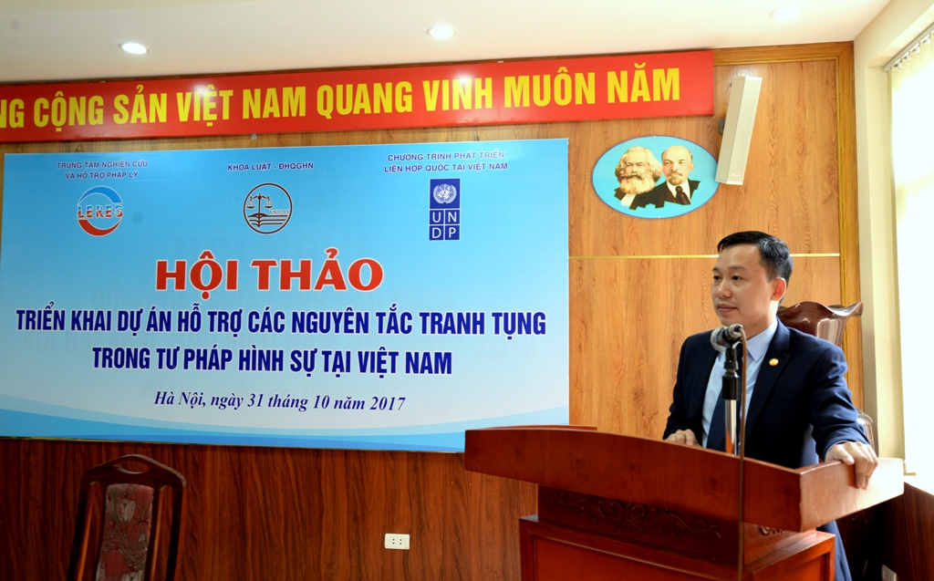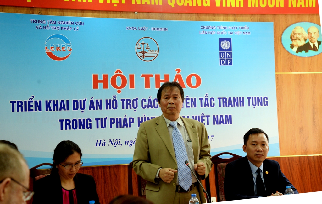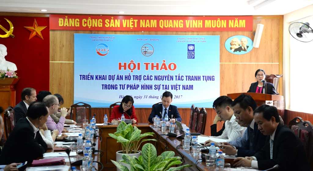 Ngày 31/10/2017, Trên cơ sở thỏa thuận với Chương trình phát triển của Liên hợp quốc tại Việt Nam (UNDP), Trung tâm Nghiên cứu và Hỗ trợ pháp lý (LERES) thuộc Khoa Luật, Đại học Quốc gia Hà Nội (ĐHQGHN) đã tổ chức Hội thảo “Triển khai dự án Hỗ trợ các nguyên tắc tranh tụng trong Tư pháp hình sự ở Việt Nam” nhằm tăng cường kỹ năng thực hành tranh tụng cho sinh viên và hướng tới thúc đẩy quyền con người trong tư pháp hình sự ở Việt Nam.
