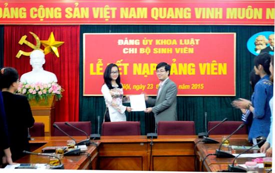Thực hiện công tác phát triển Đảng năm 2015, căn cứ vào Quyết định của Ban thường vụ Đảng ủy ĐHQGHN và được sự đồng ý của Đảng ủy Khoa Luật, ĐHQGHN, Chi bộ Sinh viên đã tổ chức Lễ kết nạp Đảng viên mới cho 6 quần chúng ưu tú là các đồng chí :